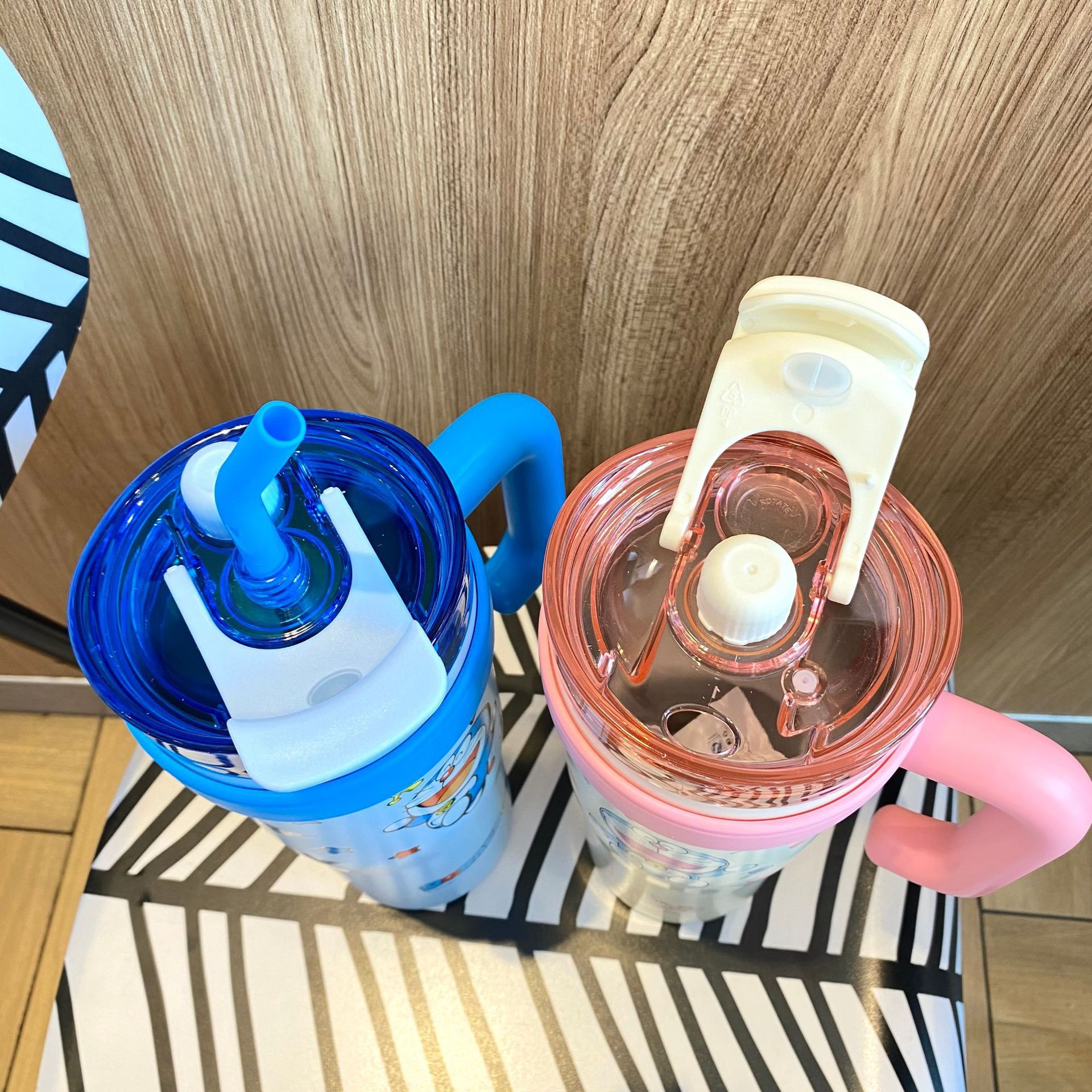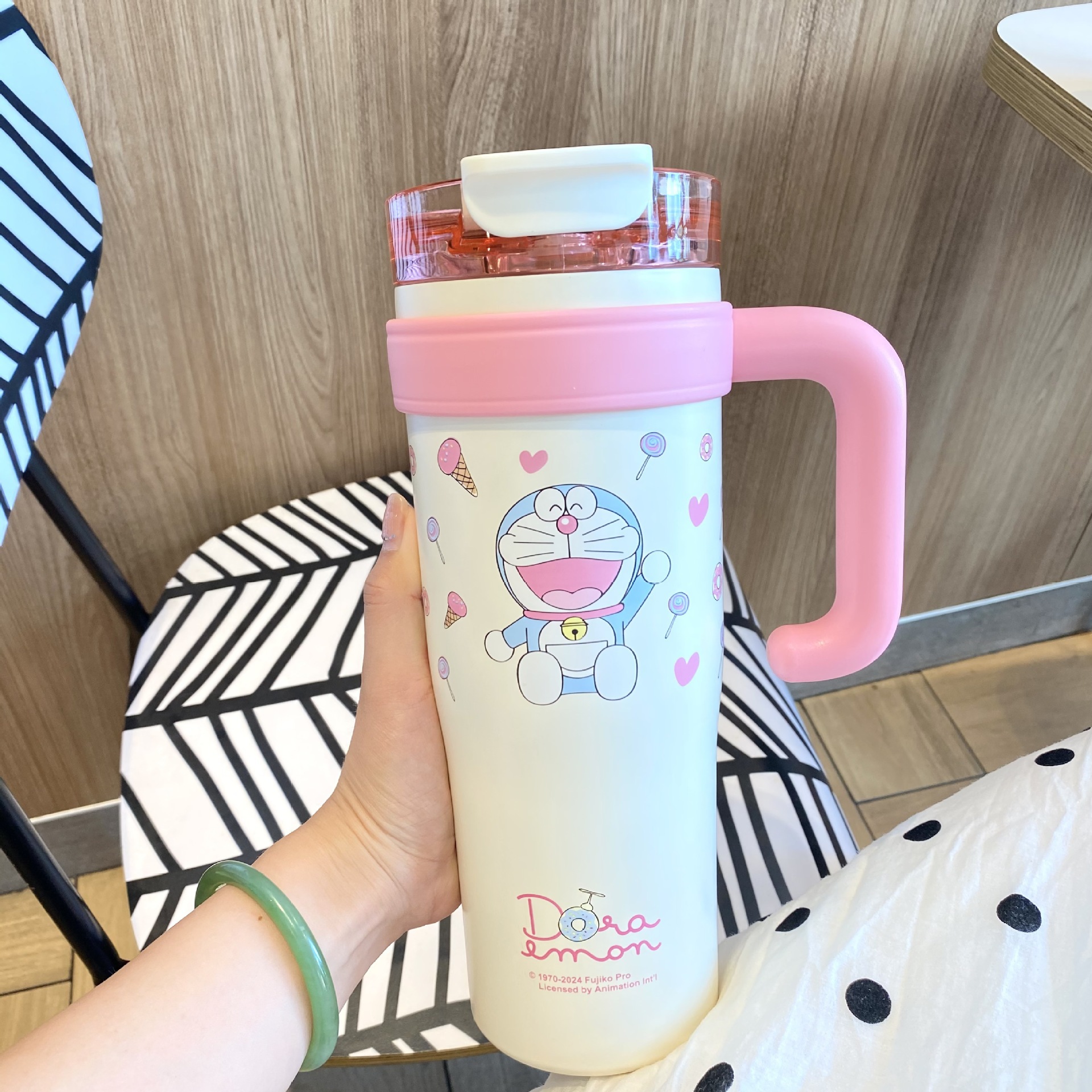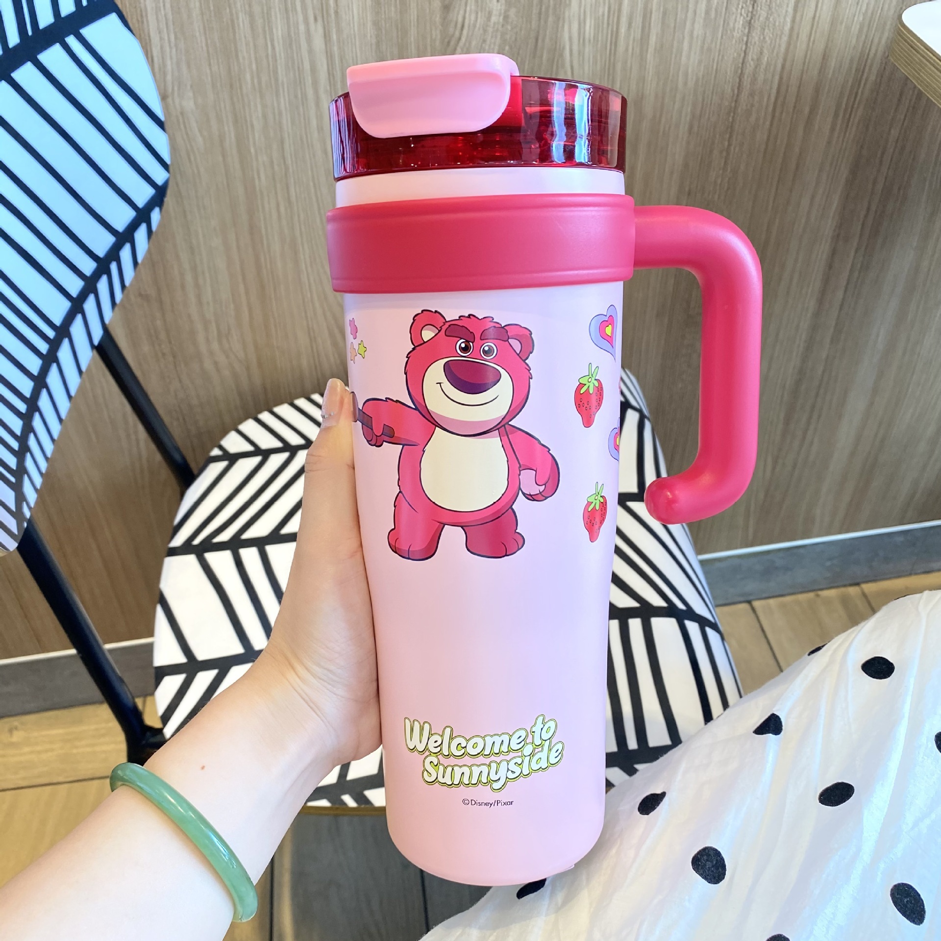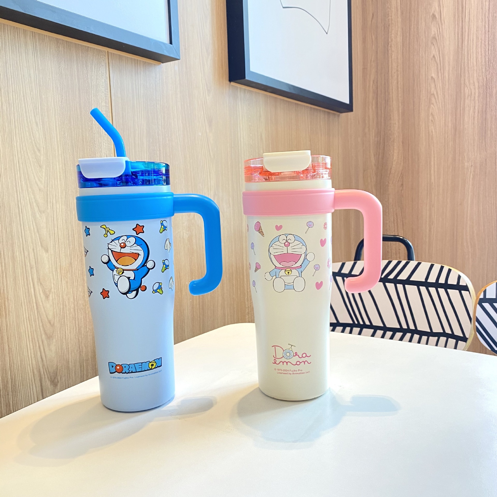 跨境爆款巨无霸保温杯大容量草莓熊叮当吸管杯女生水杯保冷冰霸杯