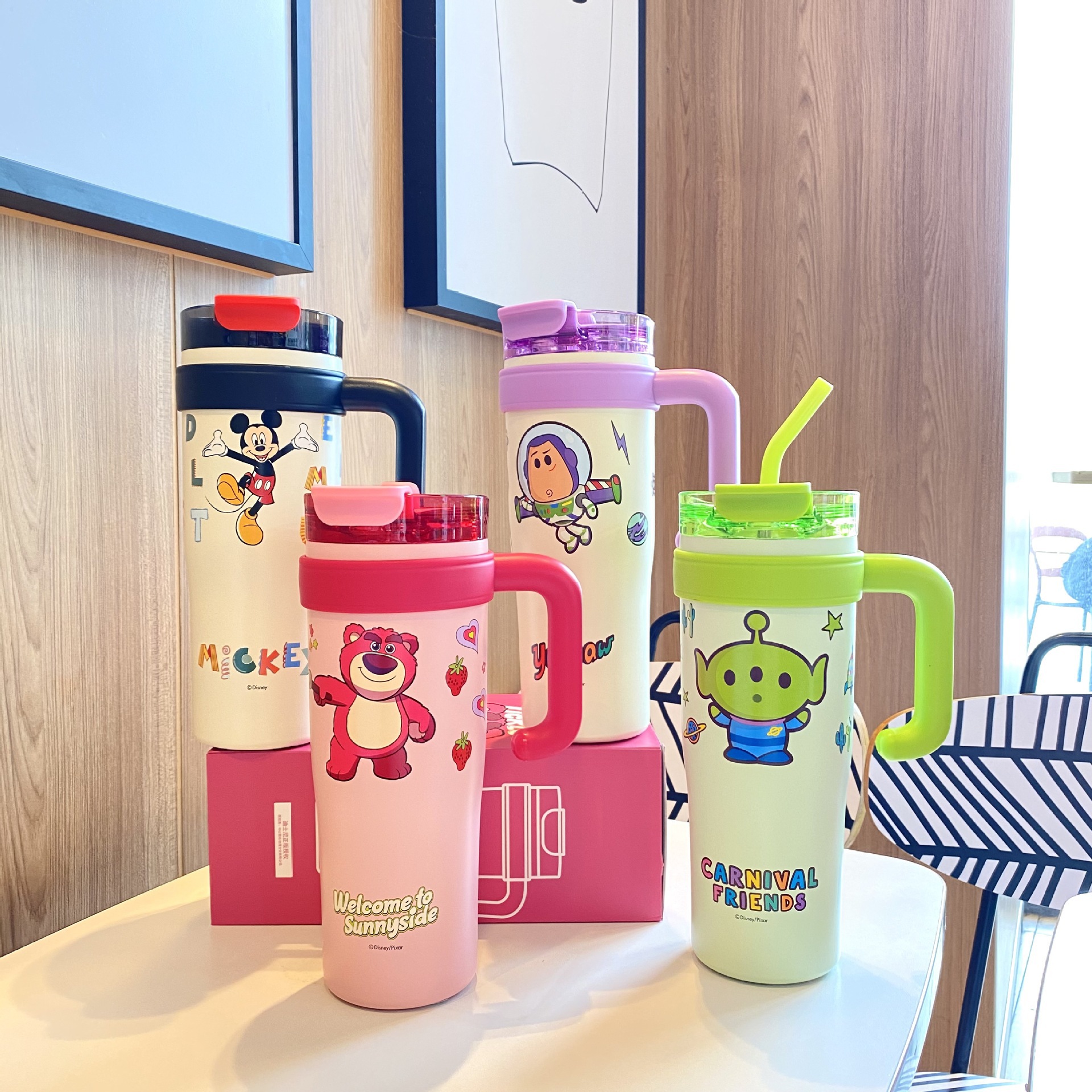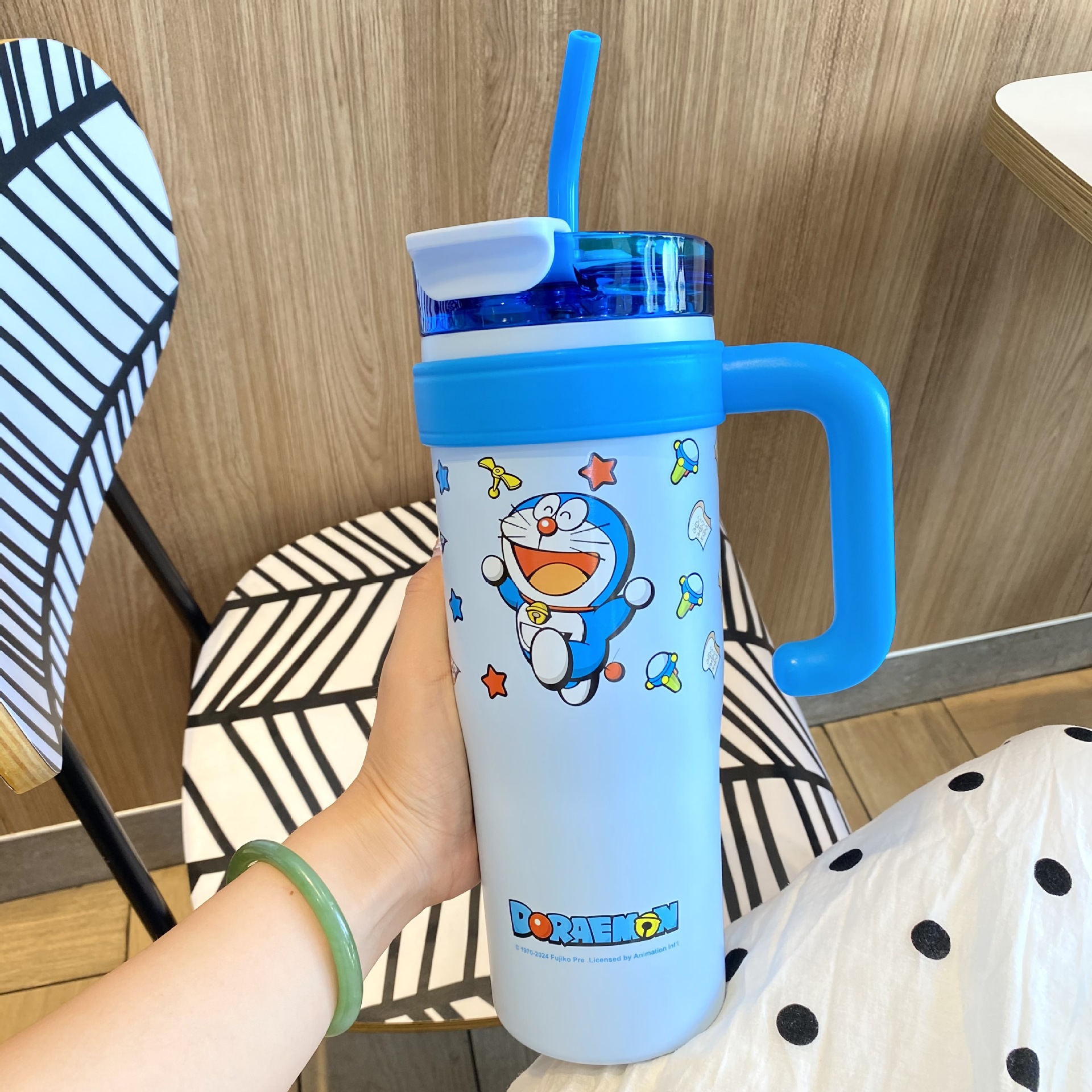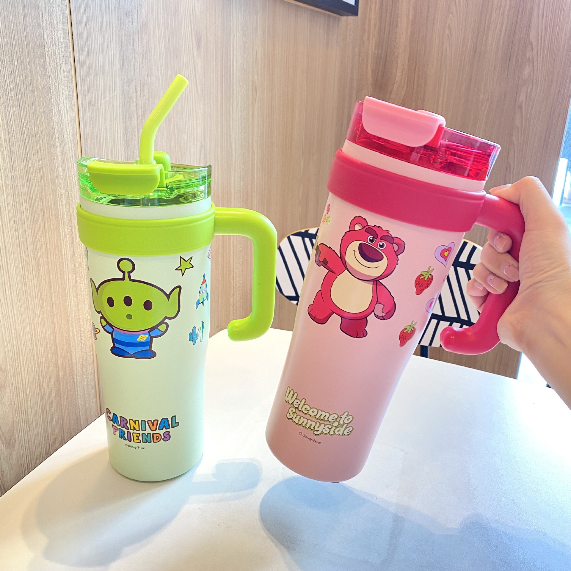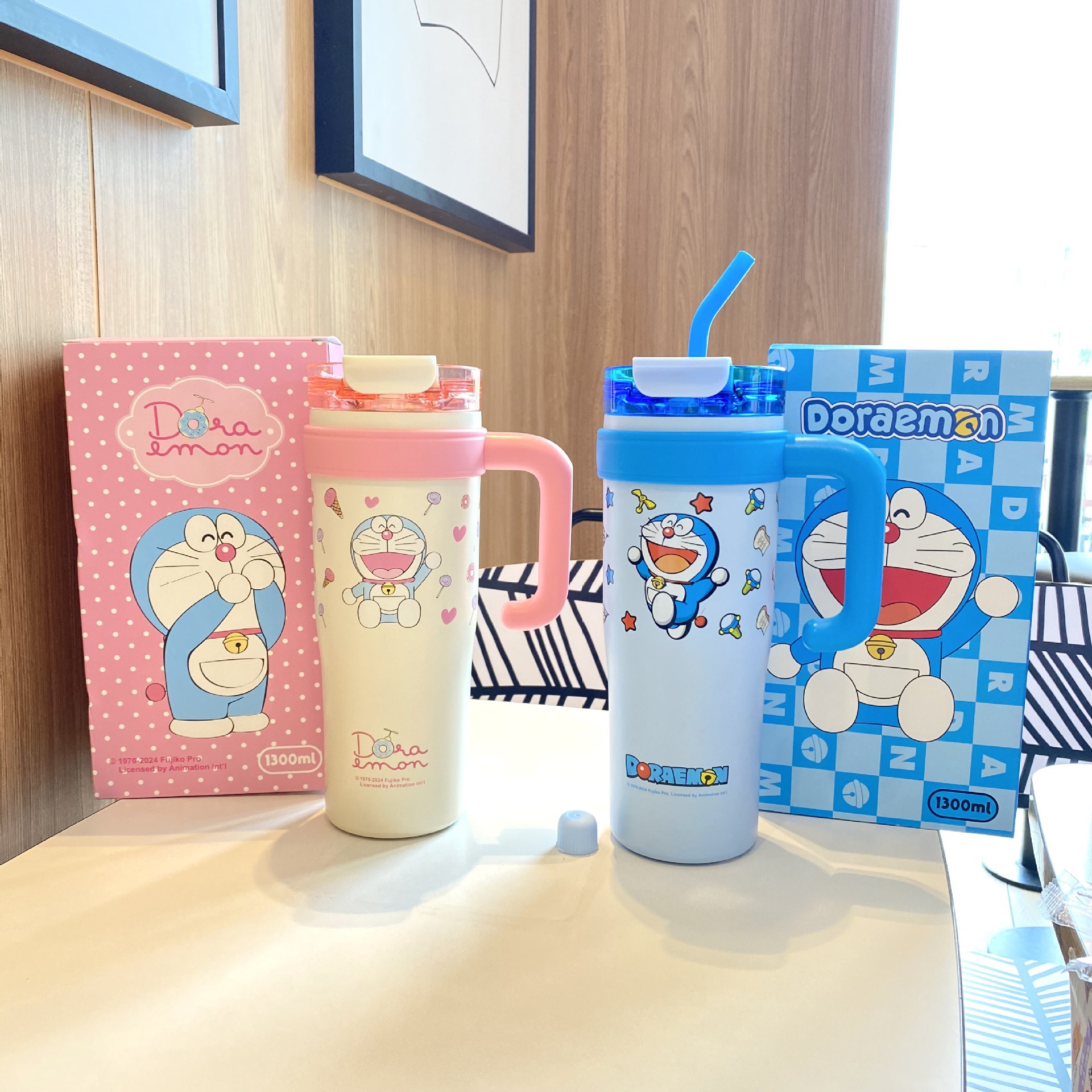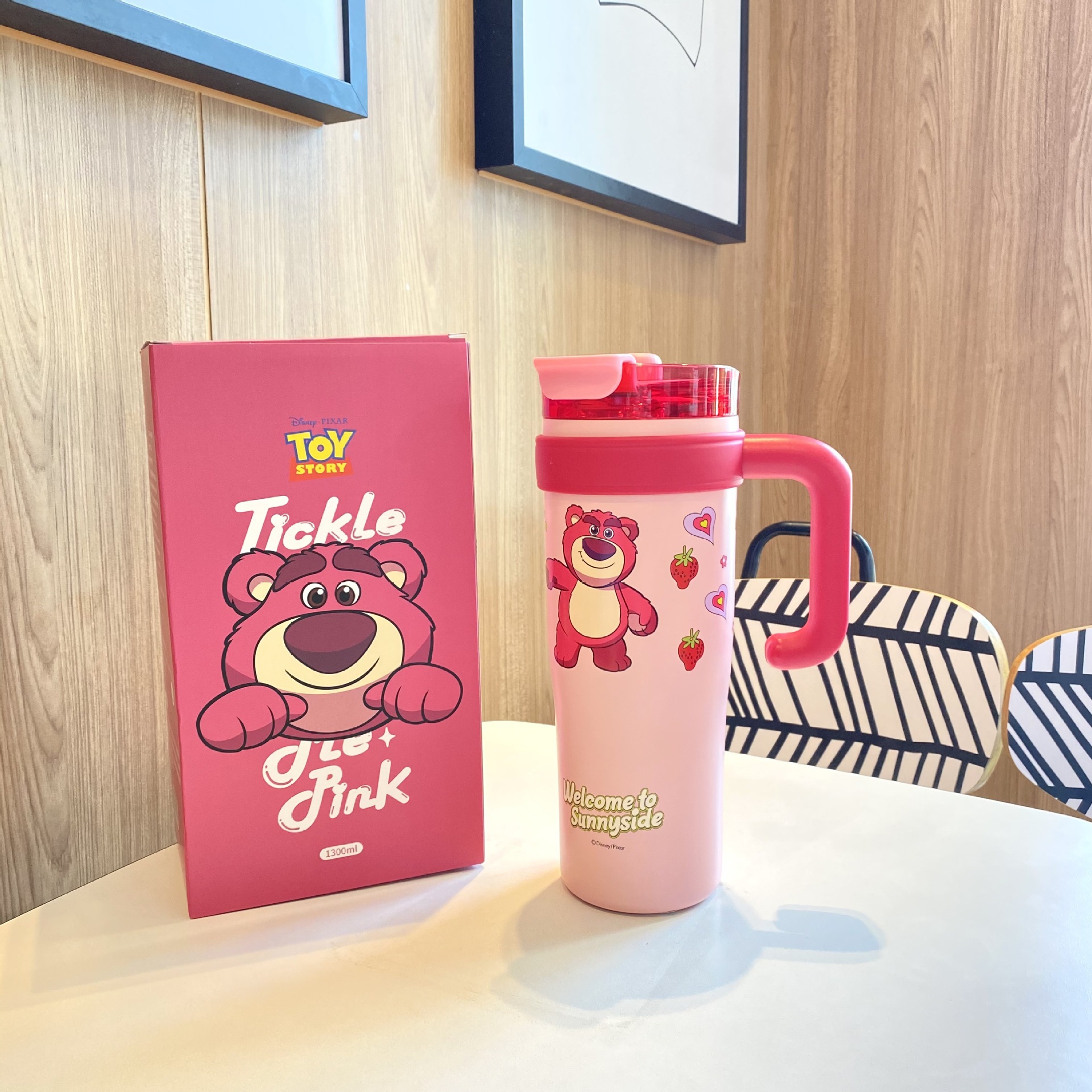 跨境爆款巨无霸保温杯大容量草莓熊叮当吸管杯女生水杯保冷冰霸杯