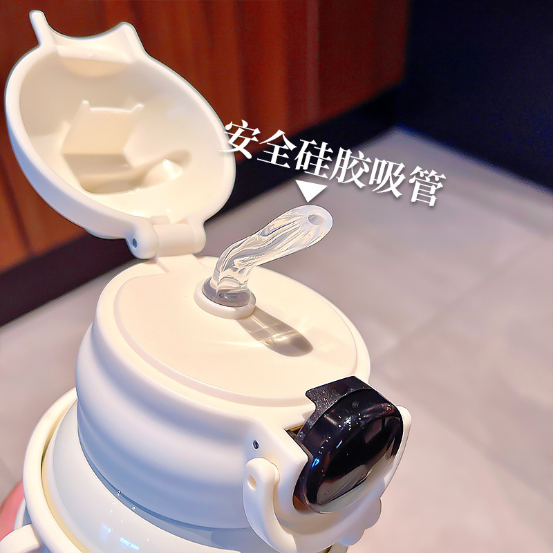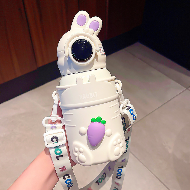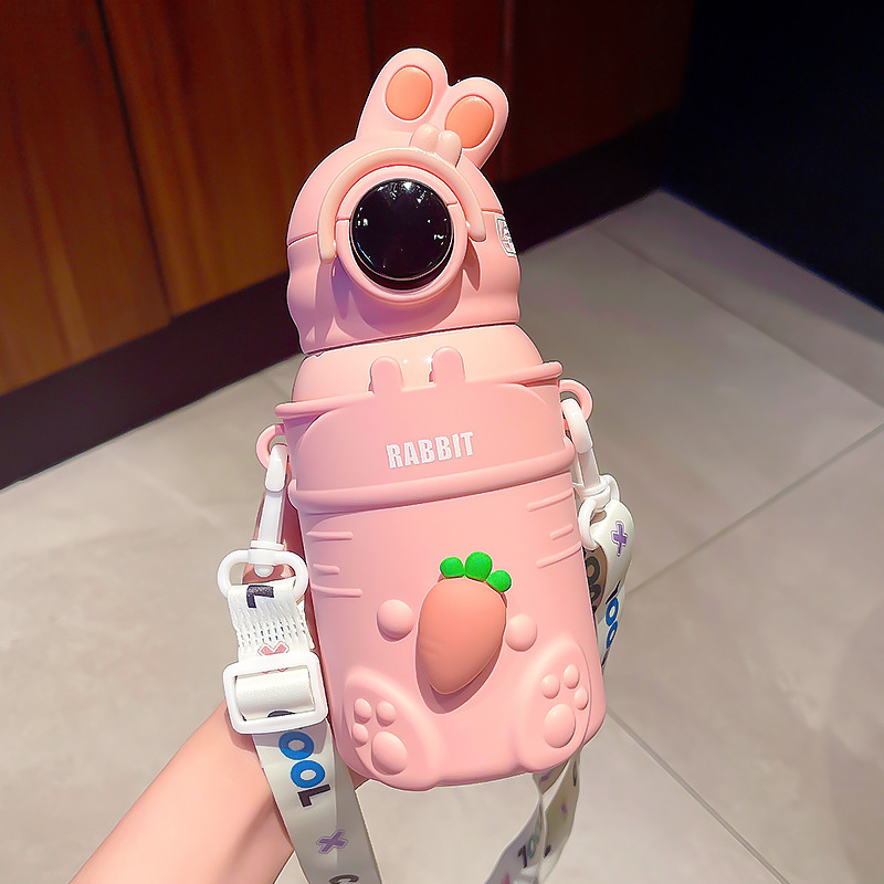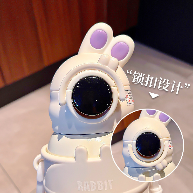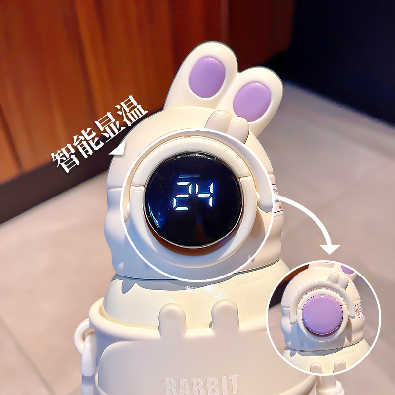 夏季高颜值兔耳朵保温杯智能显温杯学生运动便捷吸管杯可斜跨水杯