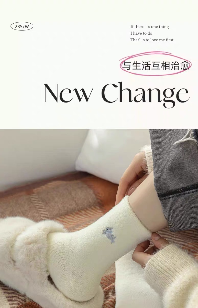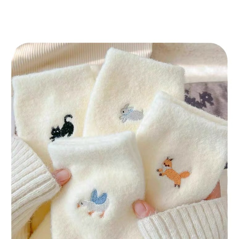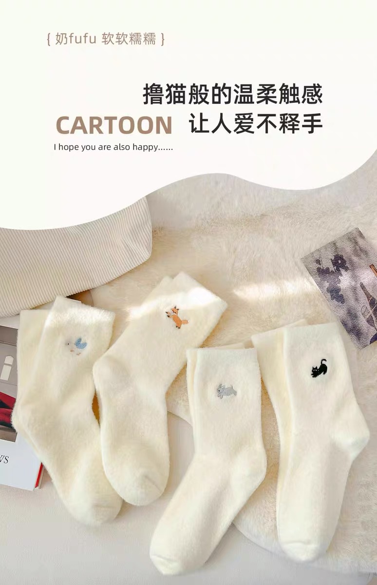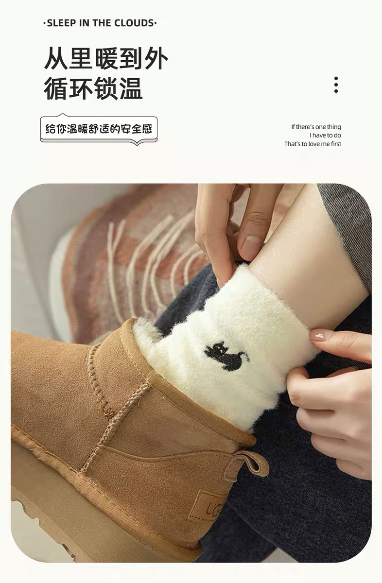 秋冬保暖蓄热加绒厚刺绣澳绒女生中筒袜卡通少女可爱月子袜睡眠袜