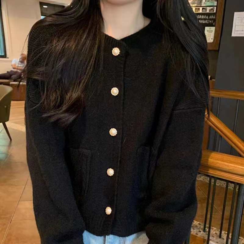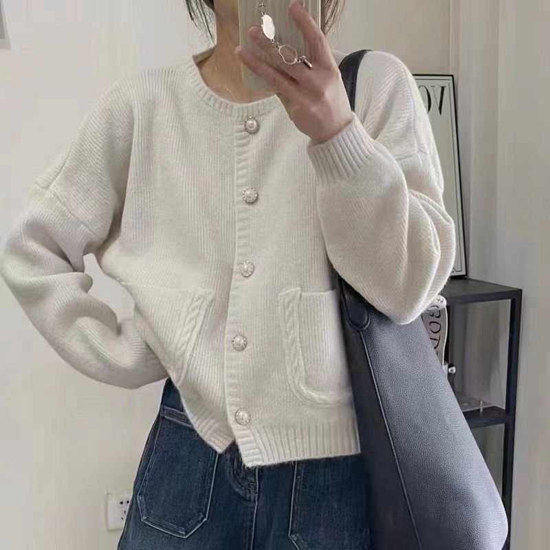 春秋新款韩系小香风毛衣外套女软糯甜美单排扣短款圆领针织开衫潮