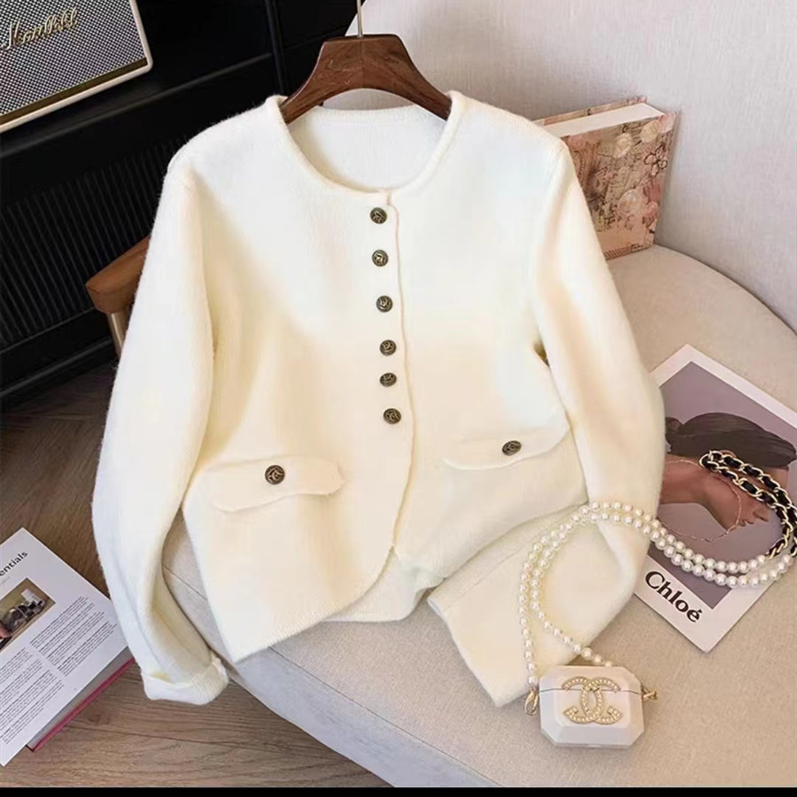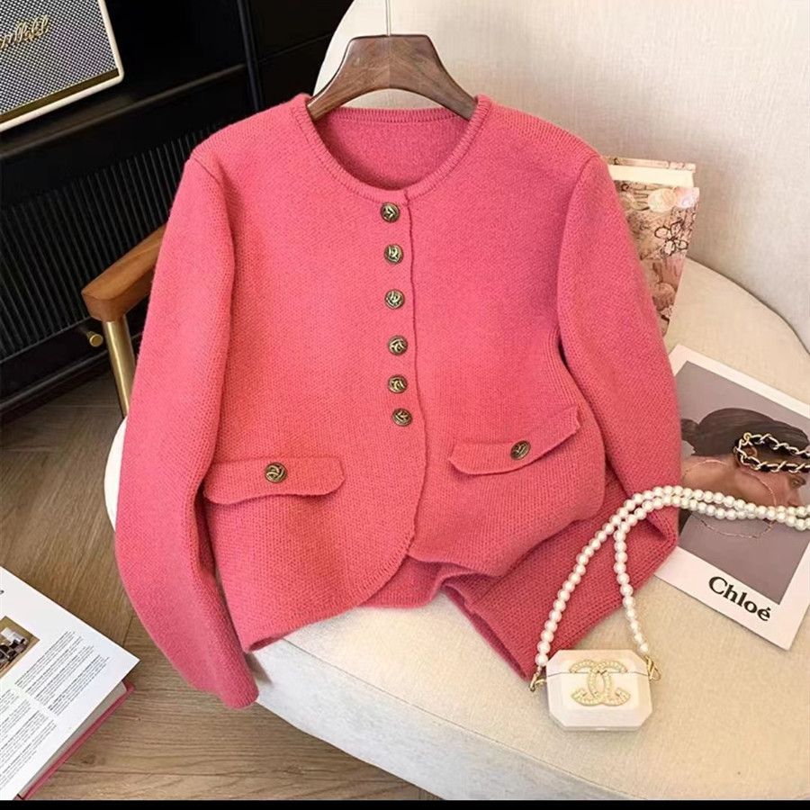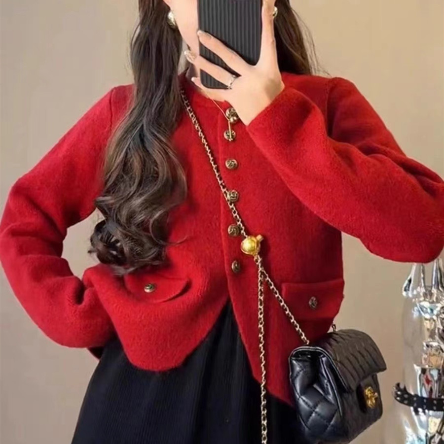 秋冬新年红色小香风外套女针织衫软糯毛衣女宽松高级感开衫上衣女