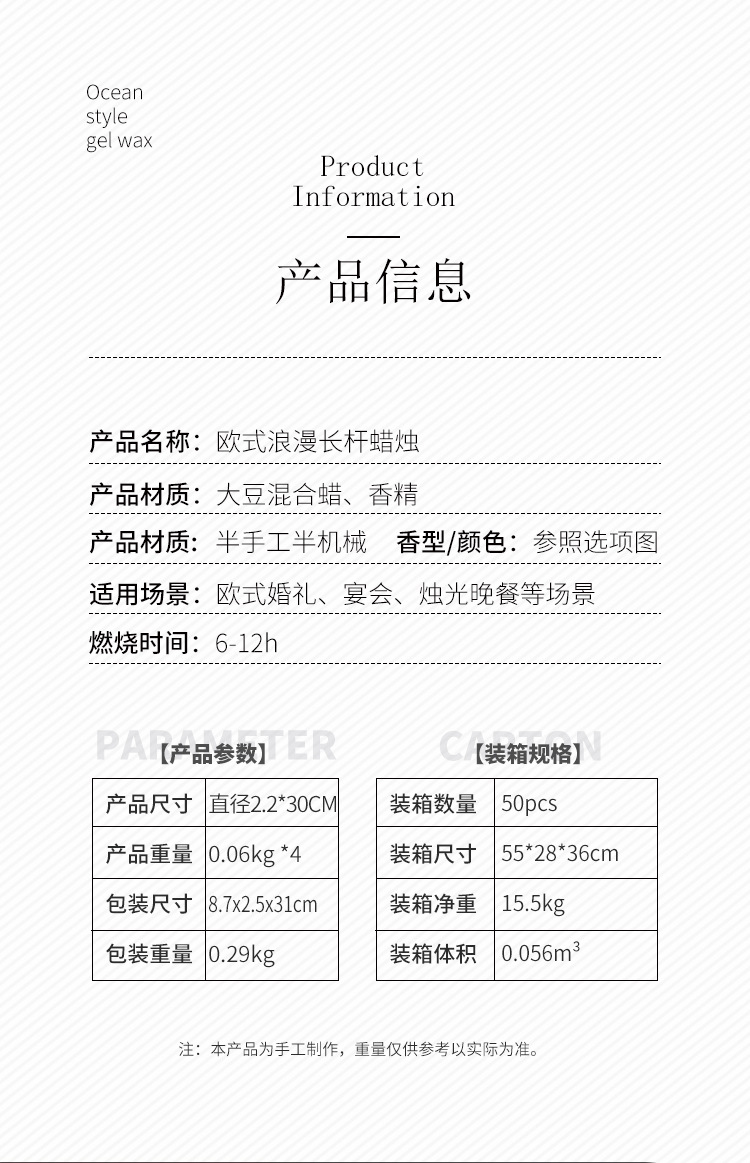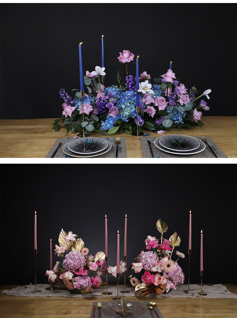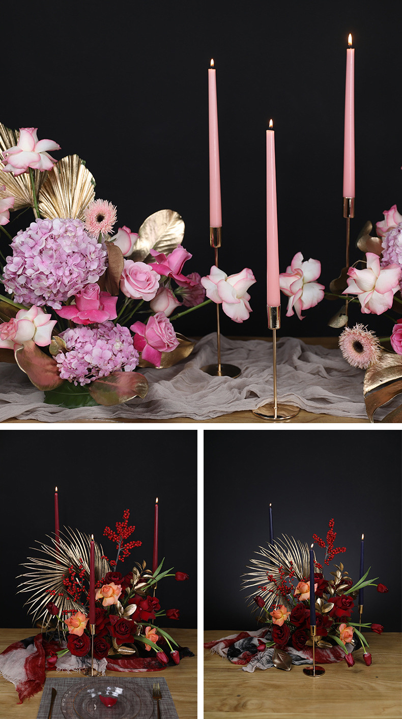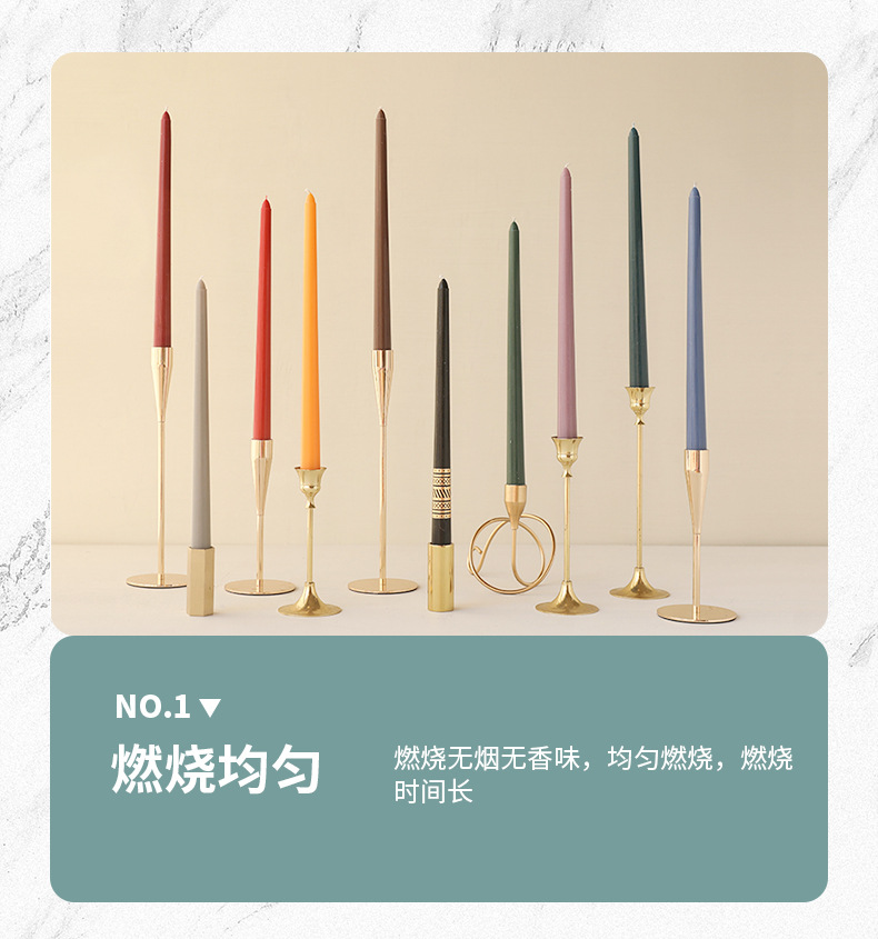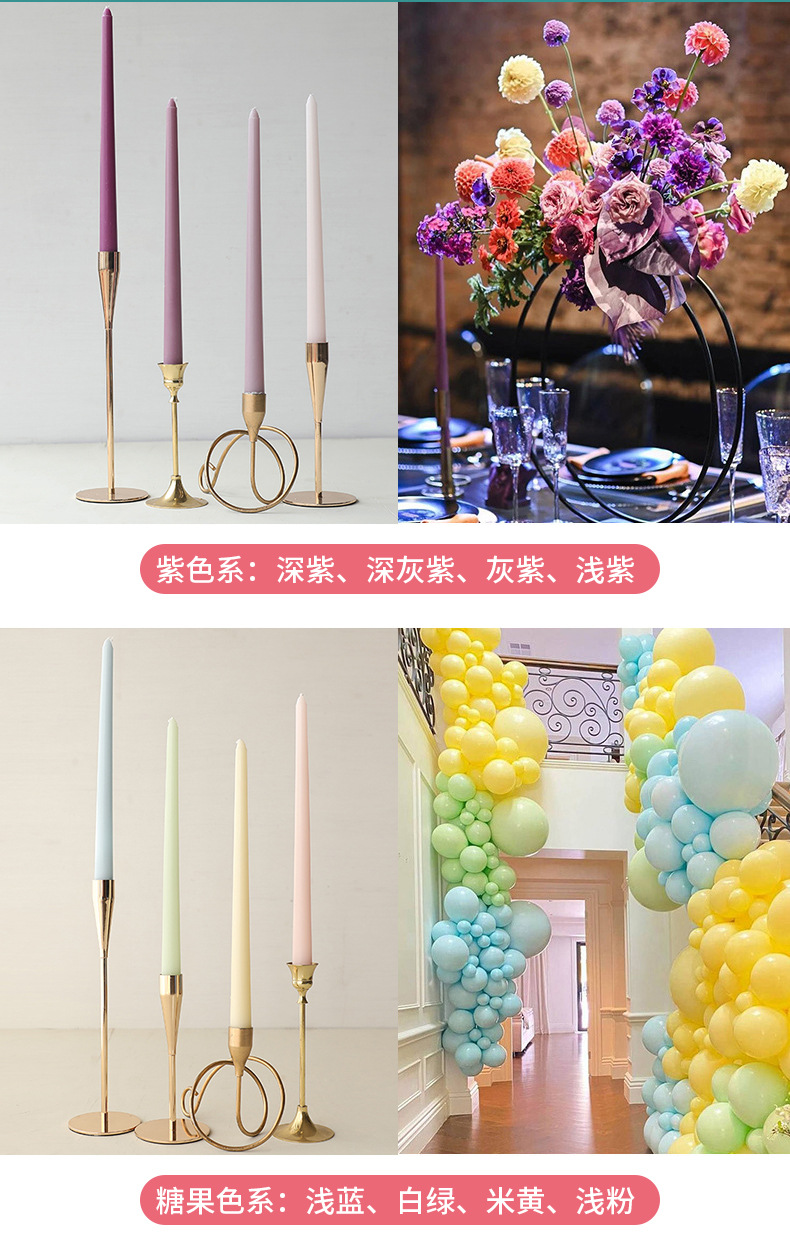 批发40种颜色30CM枝形婚礼宴会欧式彩色长杆蜡烛无香味无烟四支装