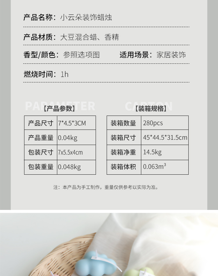 小白云香薰蜡烛可爱云朵形状植物大豆蜡家居摆件北欧道具伴手礼物