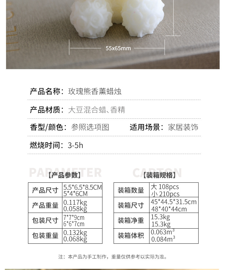 情人节创意玫瑰熊家居摆件香氛高级氛围感送女神生日礼物香薰蜡烛