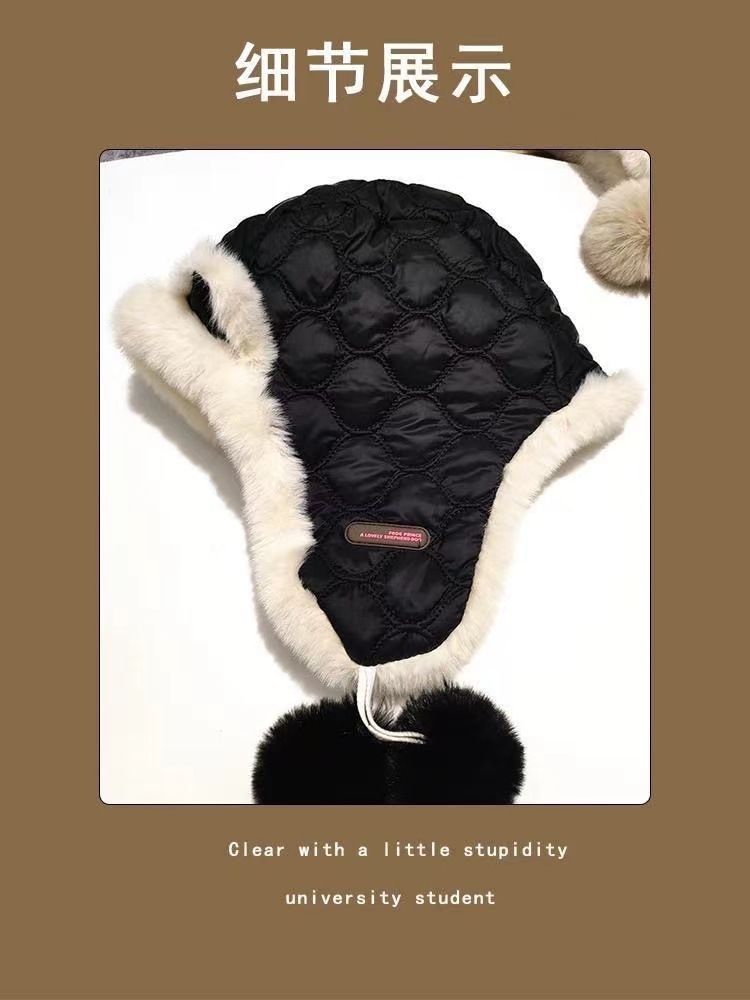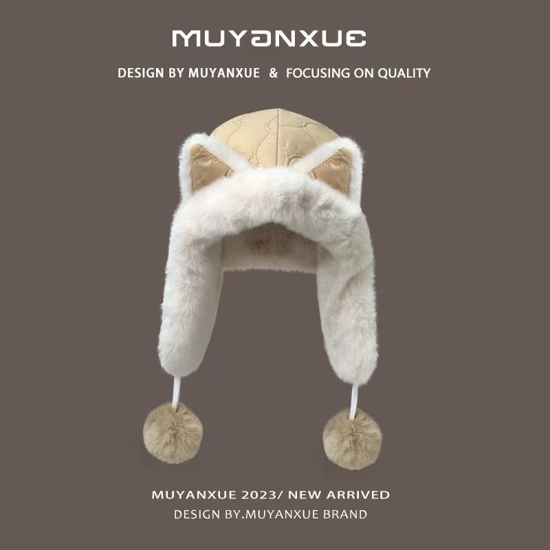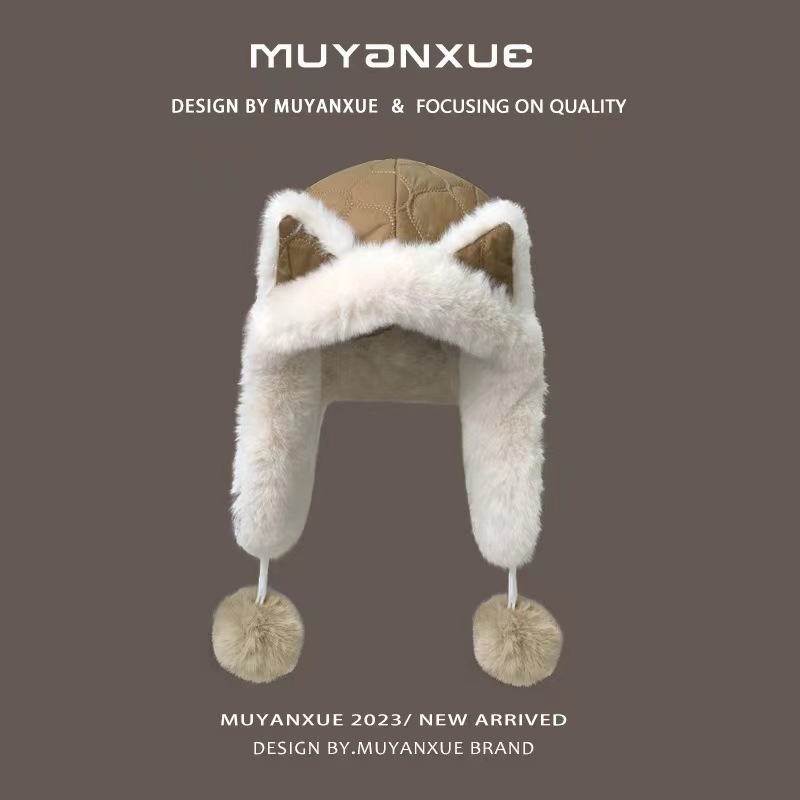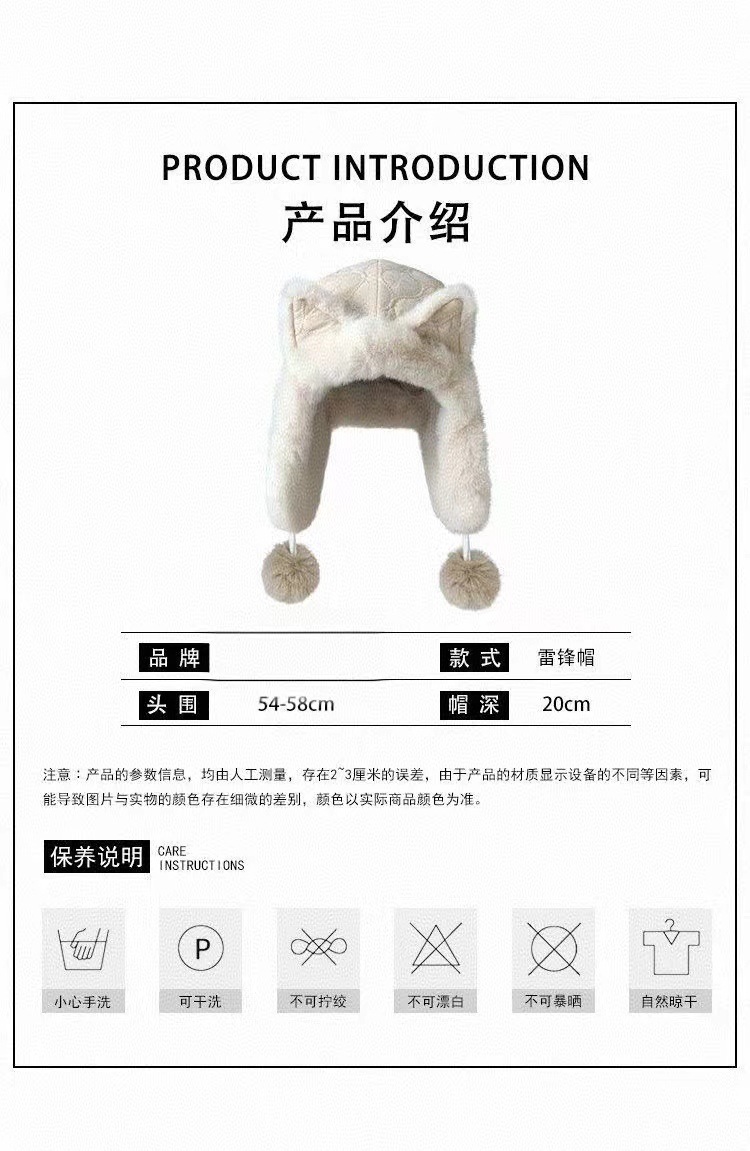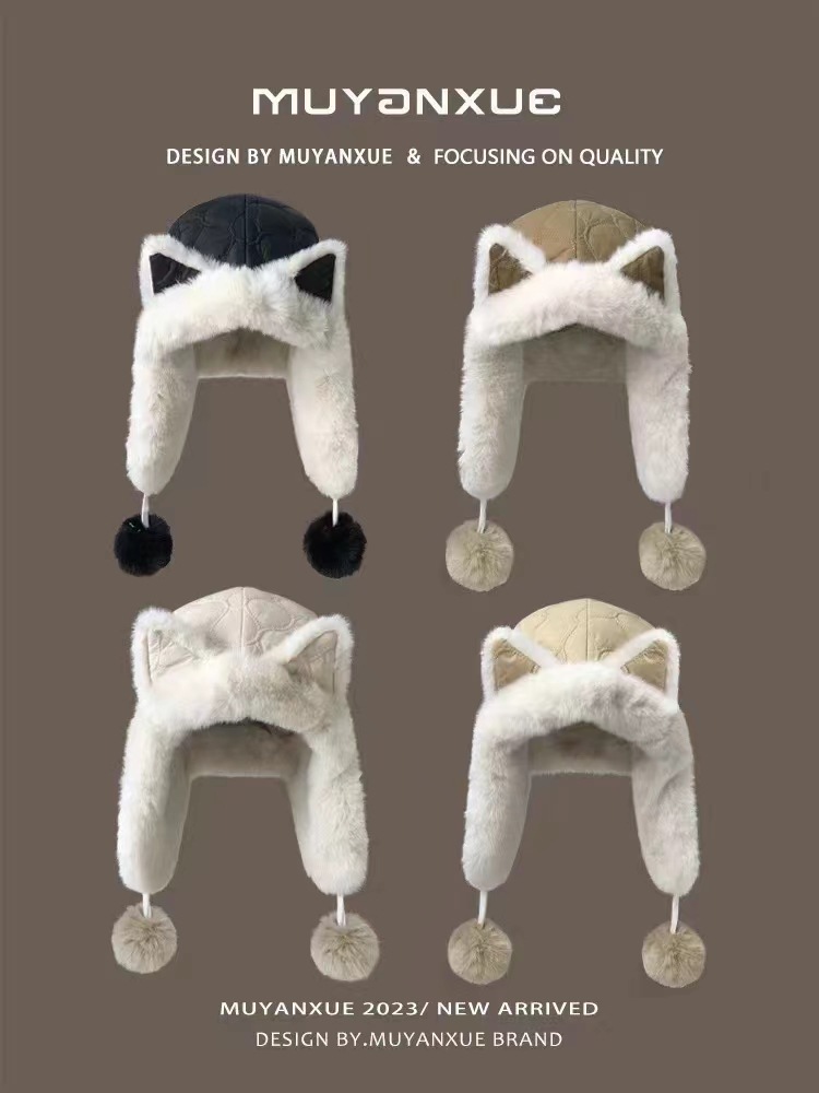 冬季毛绒帽子可爱狐狸耳朵女加厚加绒保暖骑车防寒东北护耳雷锋帽