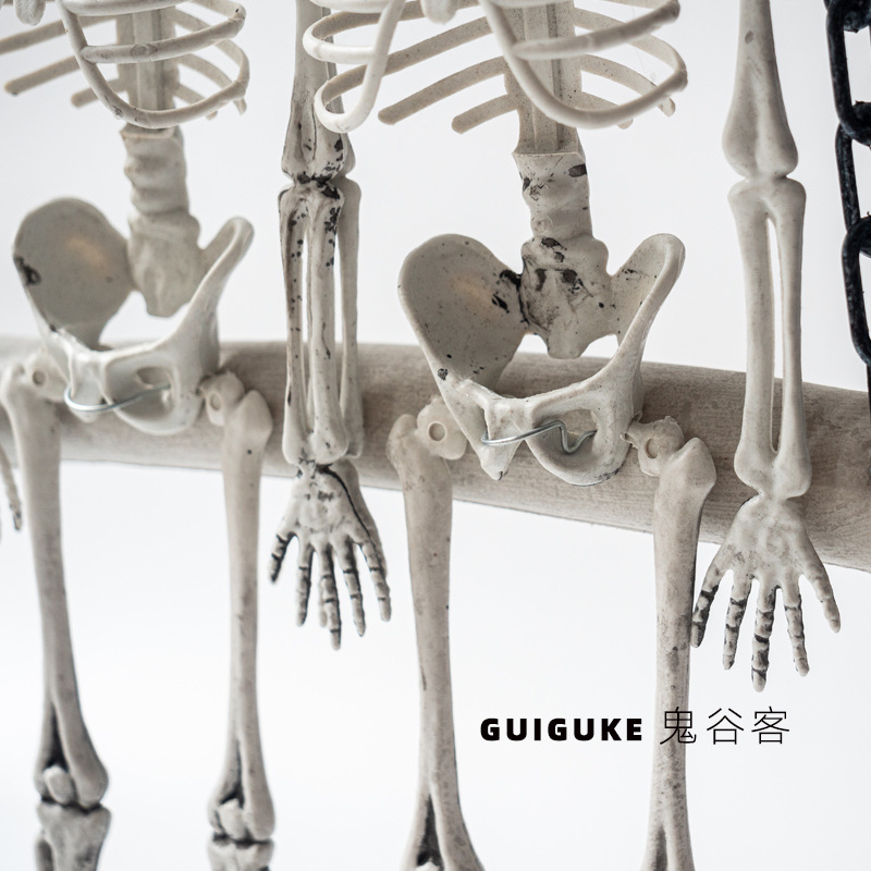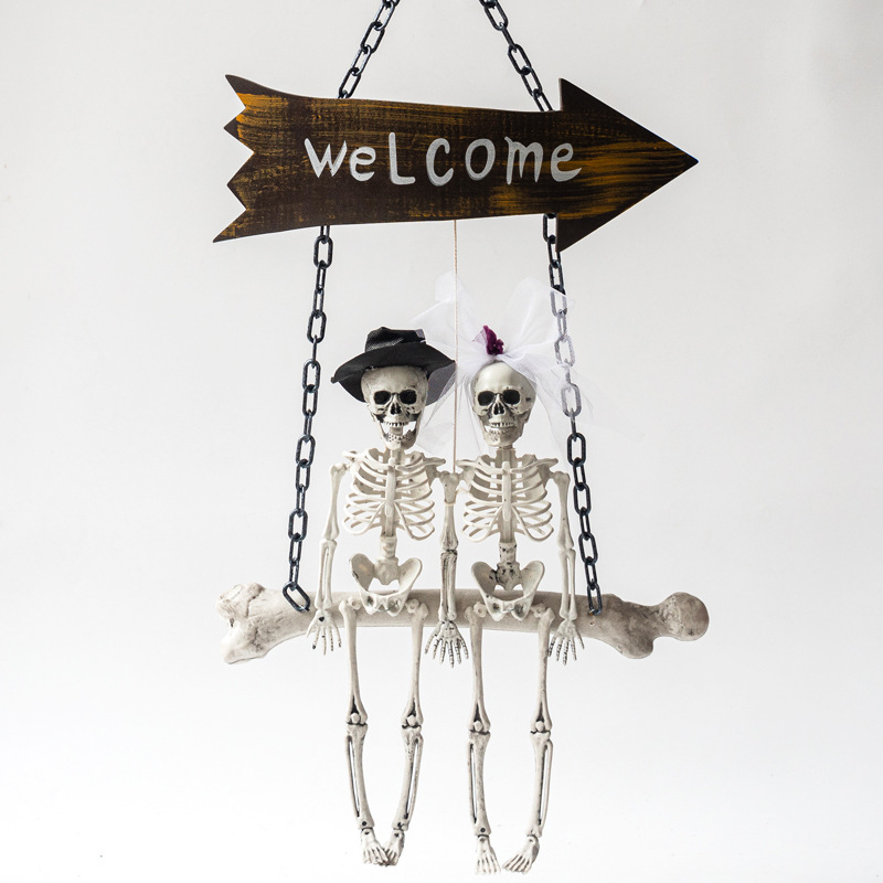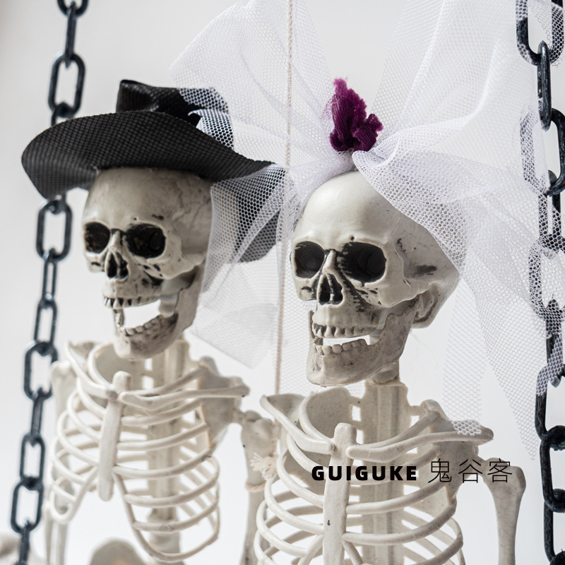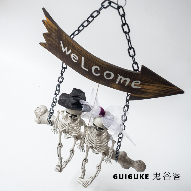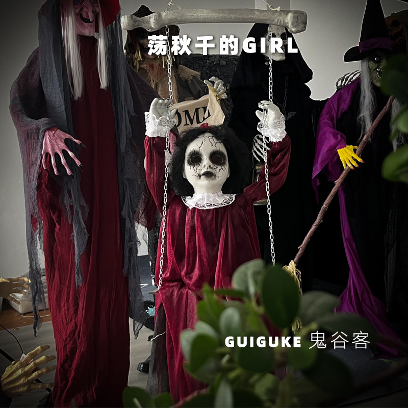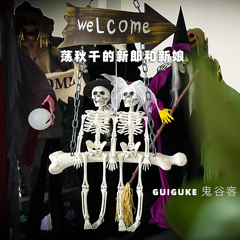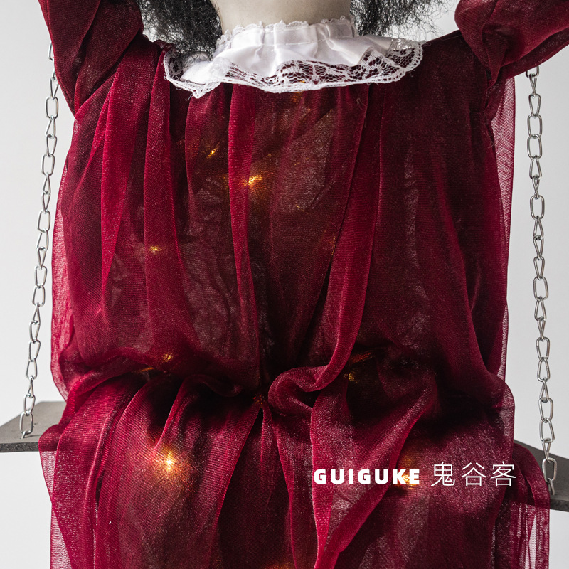 跨境新款万圣节吊秋千锁链挂鬼声控发光骷髅鬼屋恐怖装饰挂件道具
