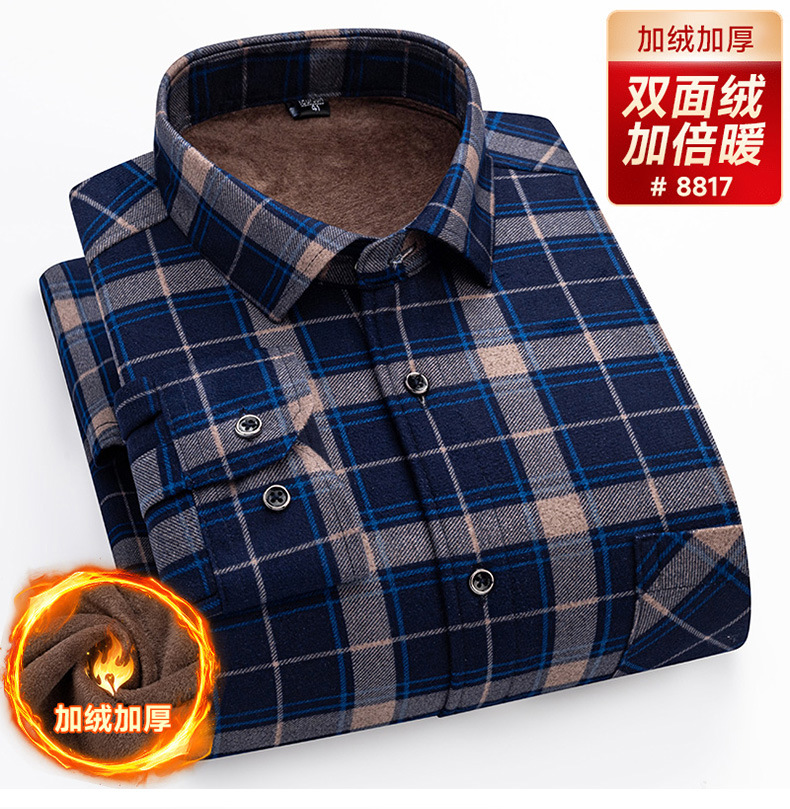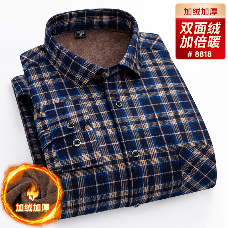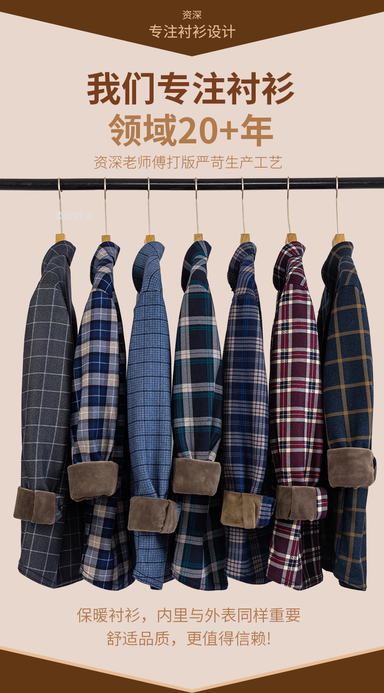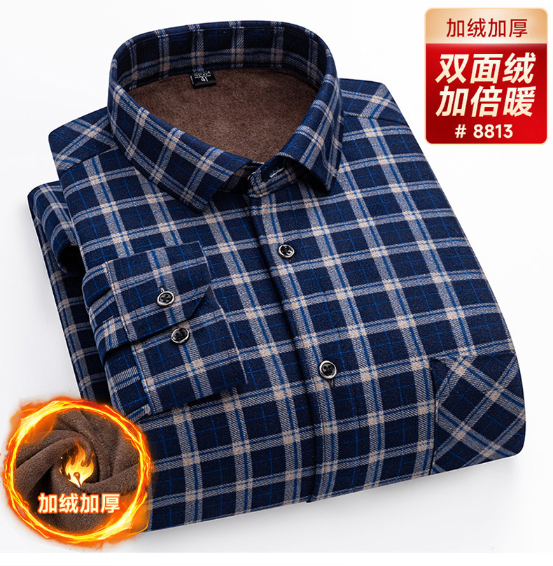 24秋冬季新款 双面绒衬衫加绒加厚保暖衬衫 经典外穿格子衬衫防寒