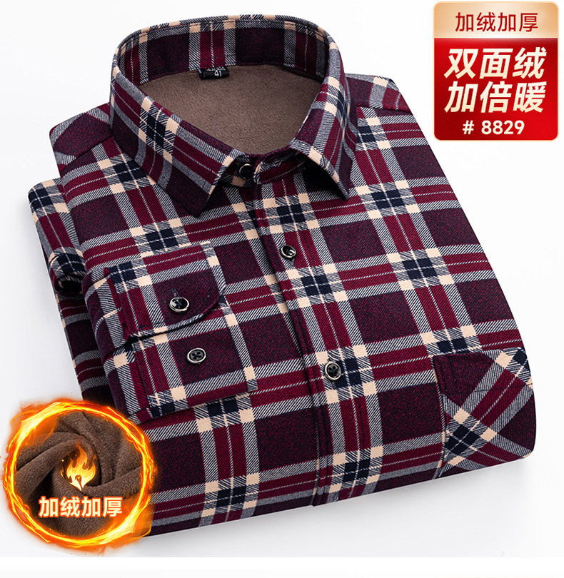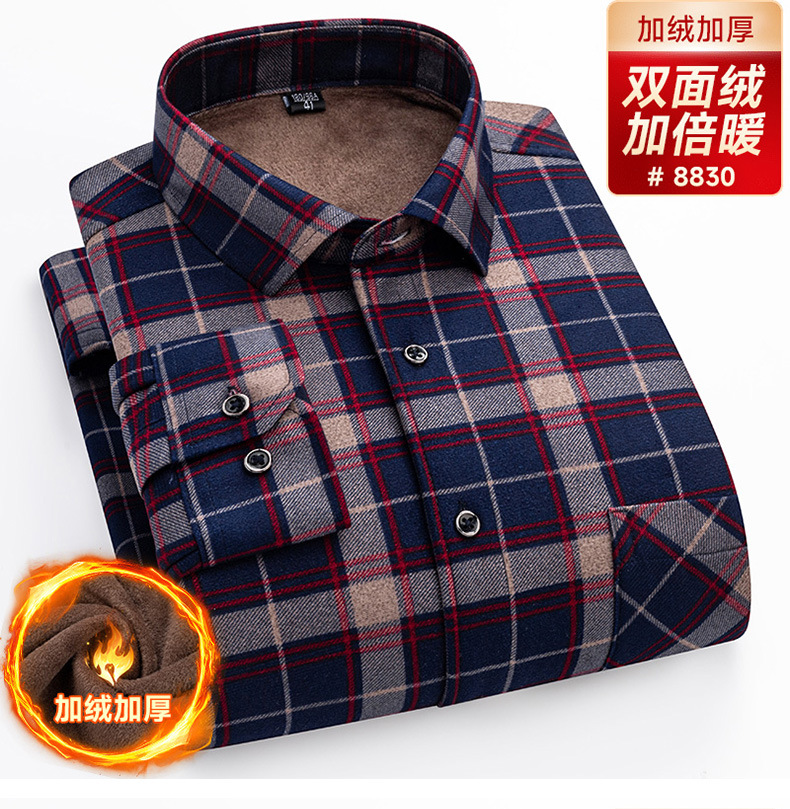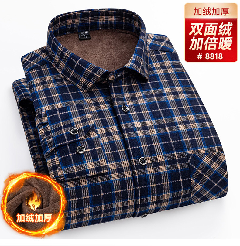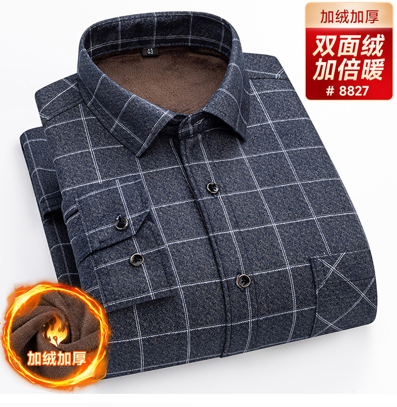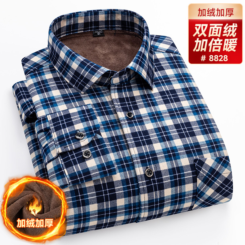 24秋冬季新款 双面绒衬衫加绒加厚保暖衬衫 经典外穿格子衬衫防寒