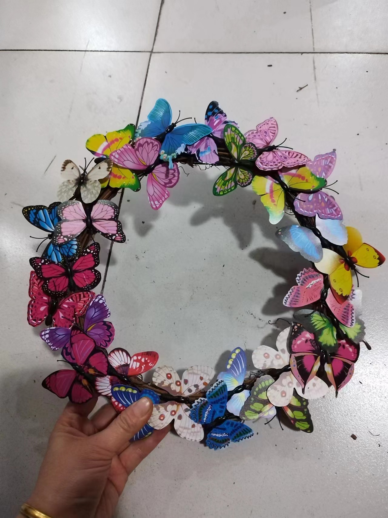 产品详情里有实物图,产品价格不含税,产品蝴蝶大小和颜色都是随机,蝴蝶数量根据藤圈大小来制作的。
