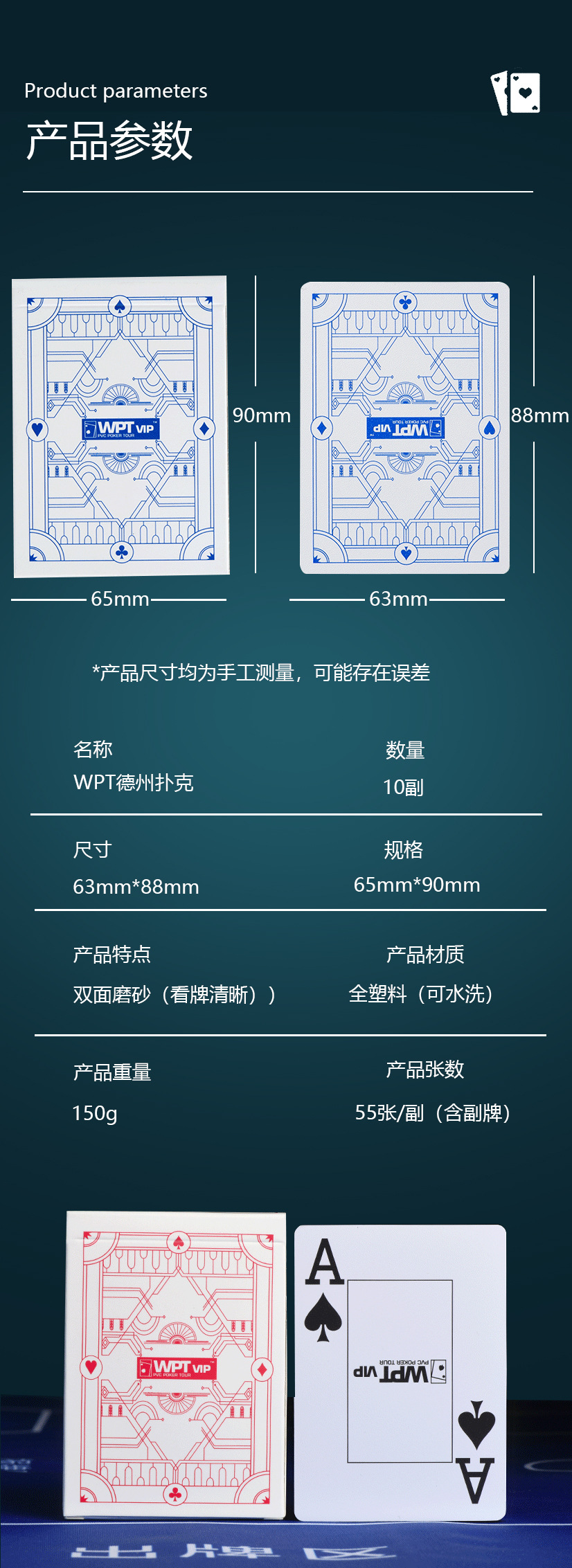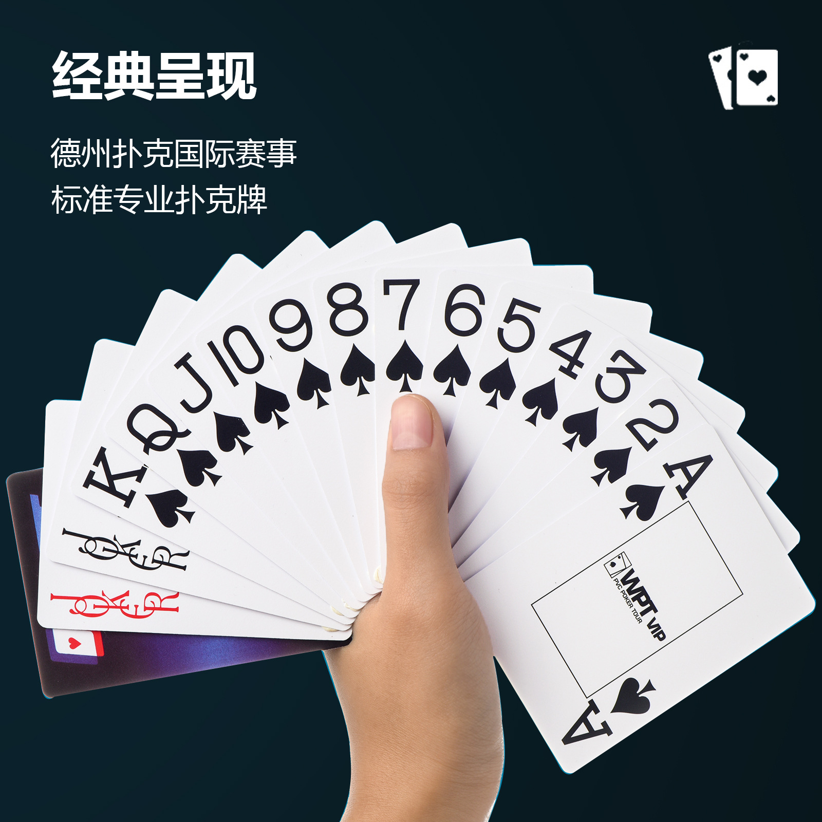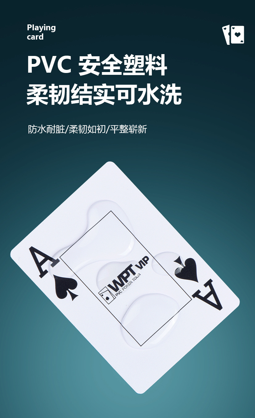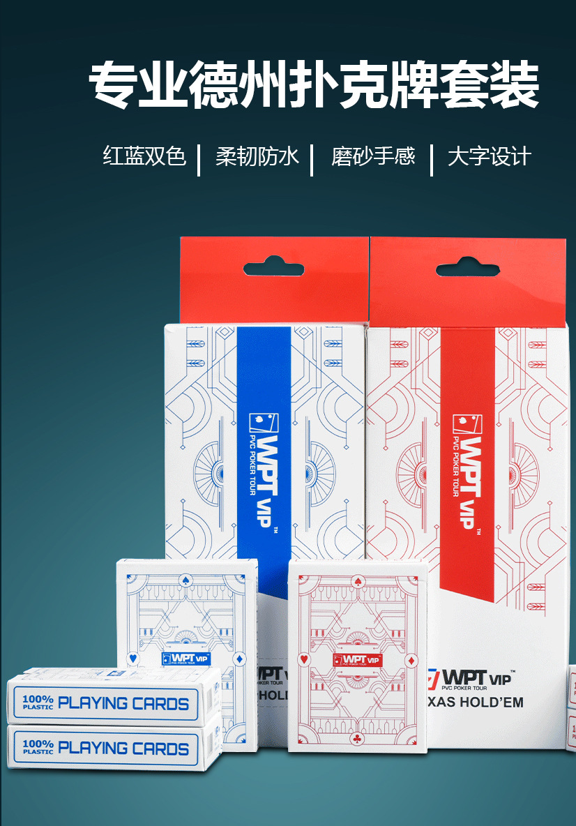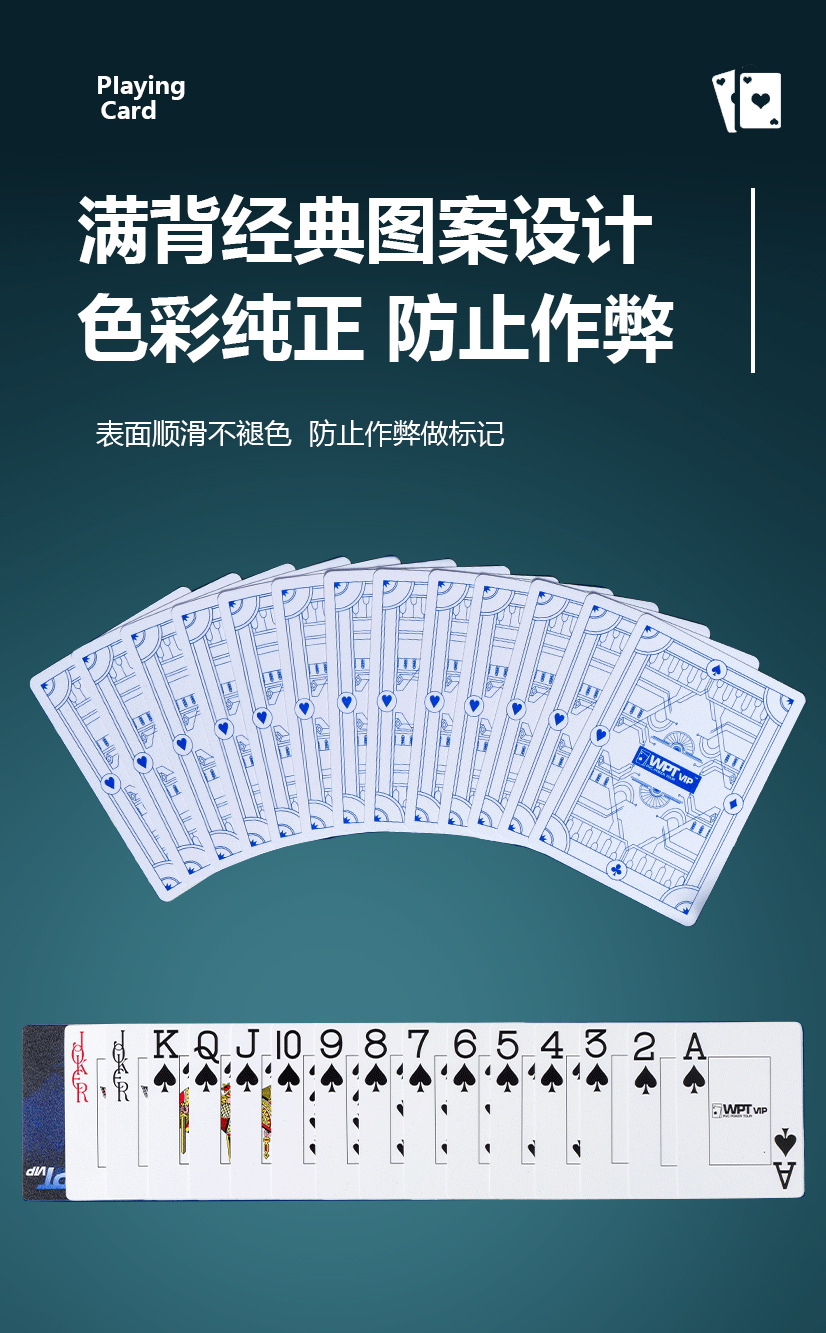 WPTVIP德州赛事专用扑克牌扇形大字体全新PVC32丝细砂防水塑料牌