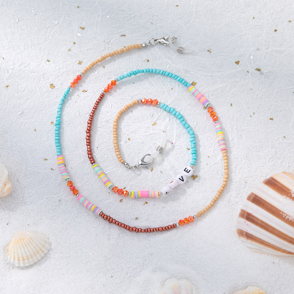 新款软陶LOVE眼镜链森系多款式玻璃米珠混色口罩链眼镜链批发