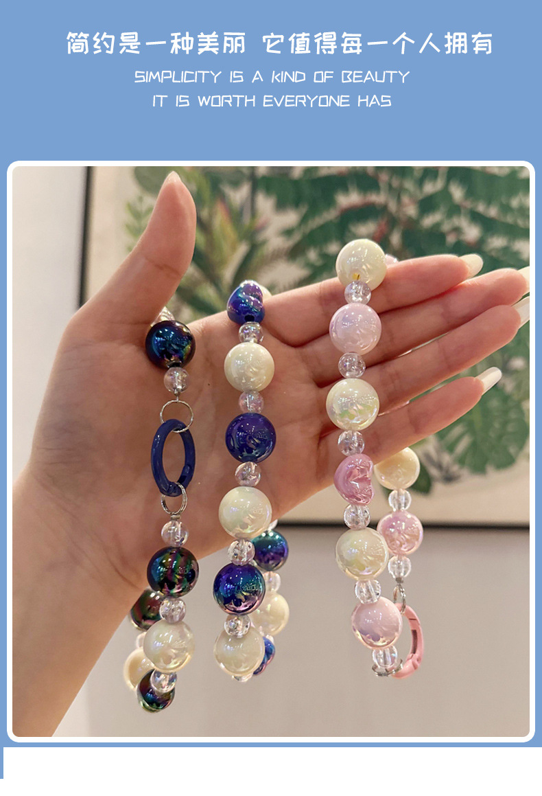 创意彩色亚克力串珠手链钥匙扣配件 精美女士手机链学生书包挂件