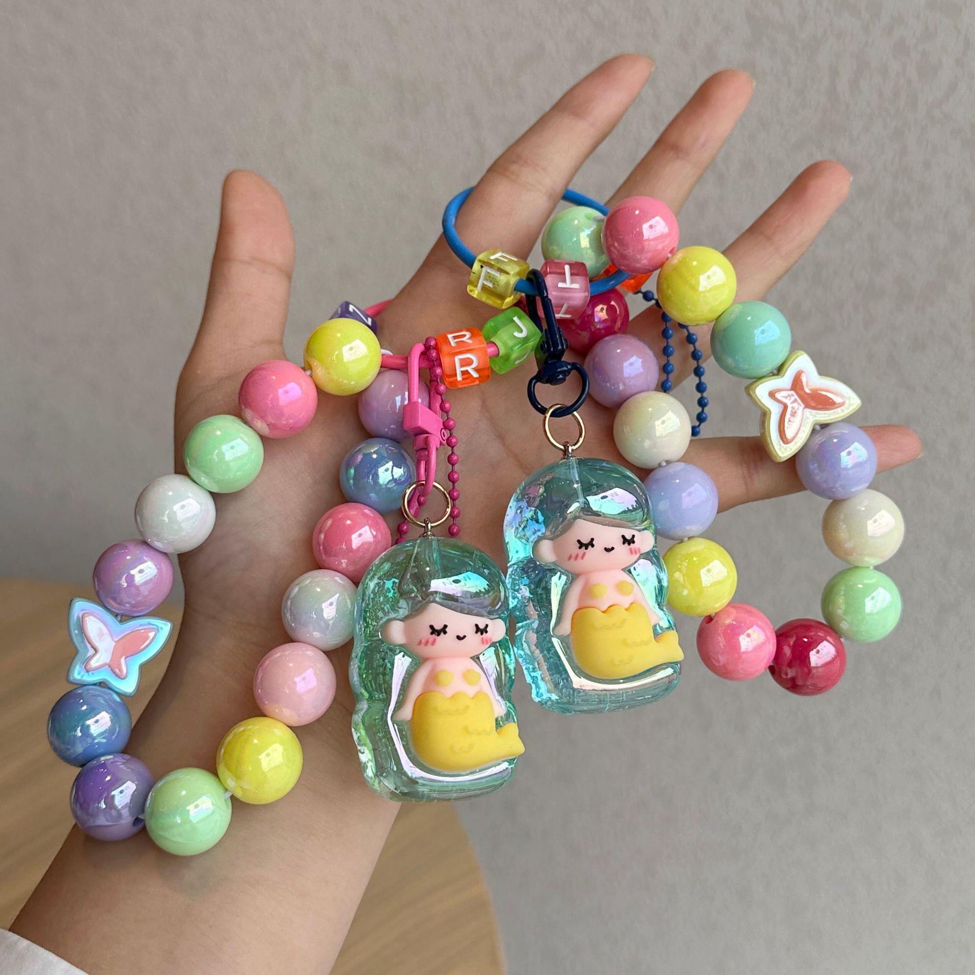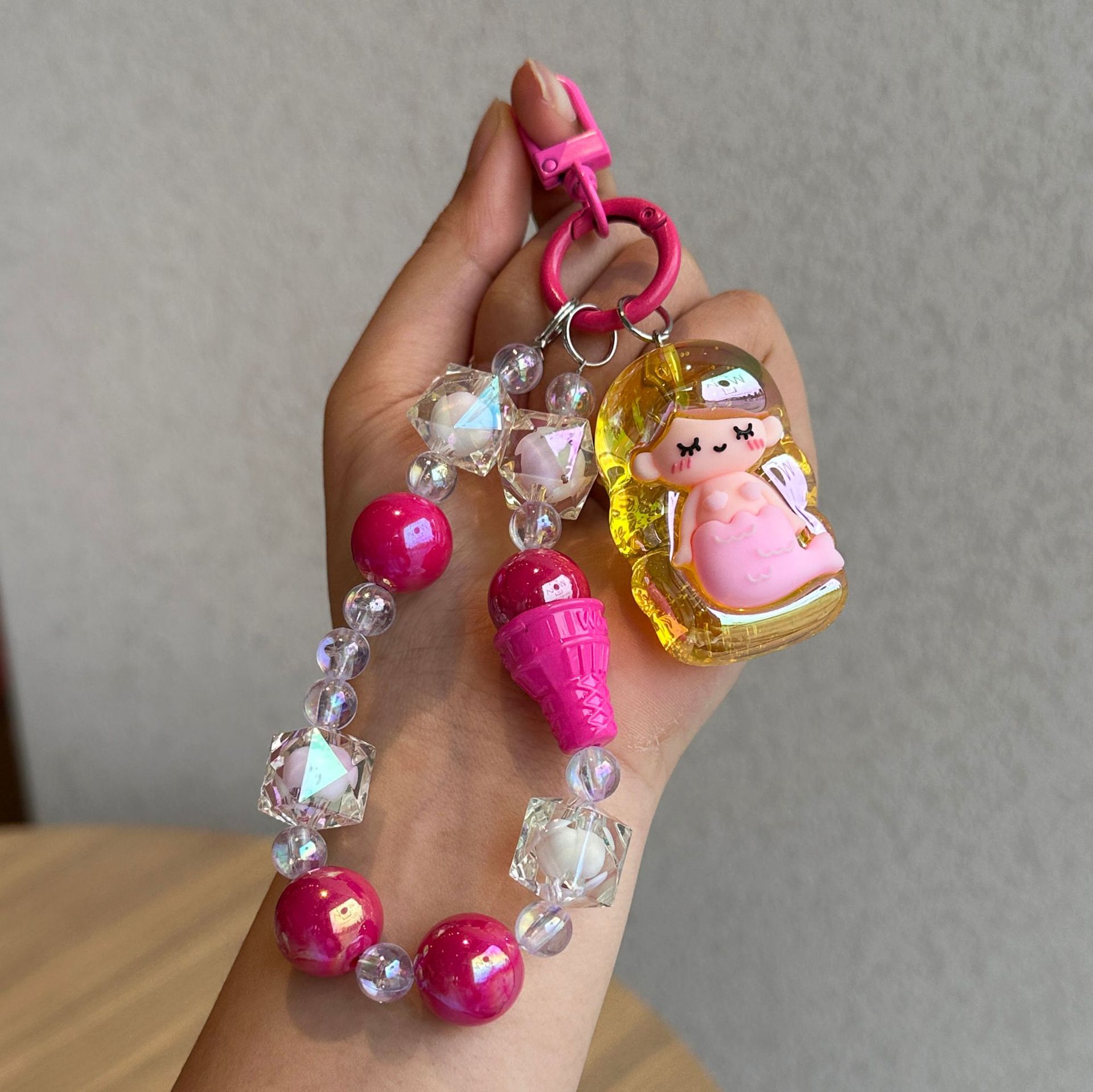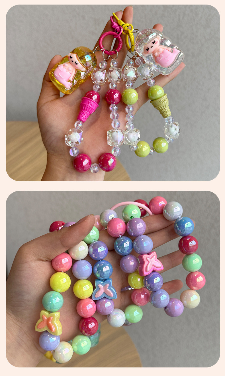 小红书热卖手工串珠夹娃娃机钥匙链亚克力卡通女学生书包挂件配件