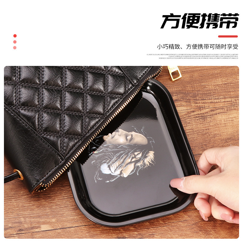 跨境热卖烟丝醒草盘马口铁手卷烟小号烟具收纳盘创意图案现货供应