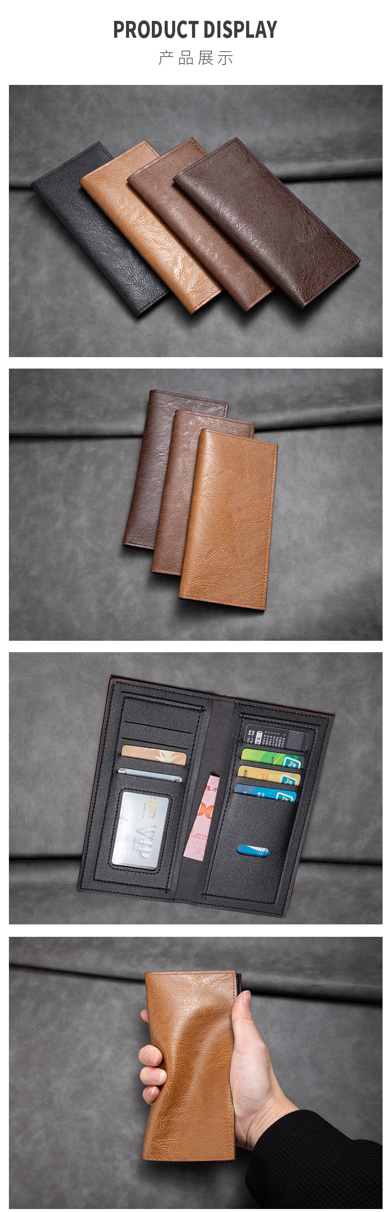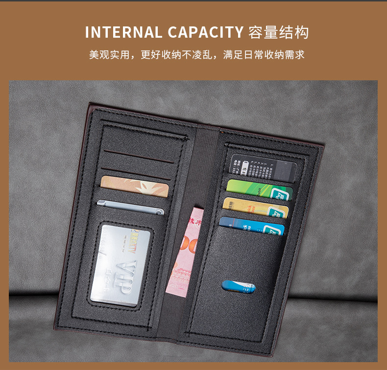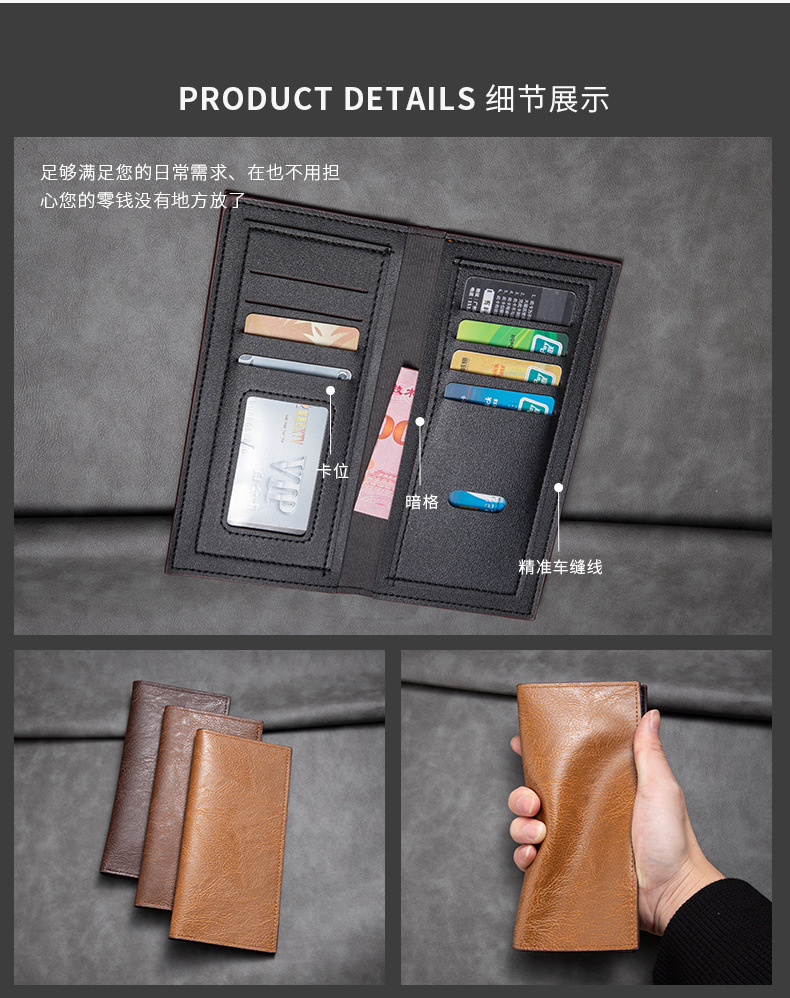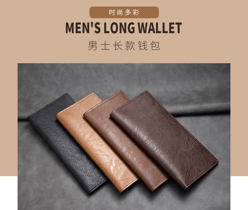 跨境热销男士长款钱包 超薄多卡位商务皮夹卡包欧美复古钱夹批发