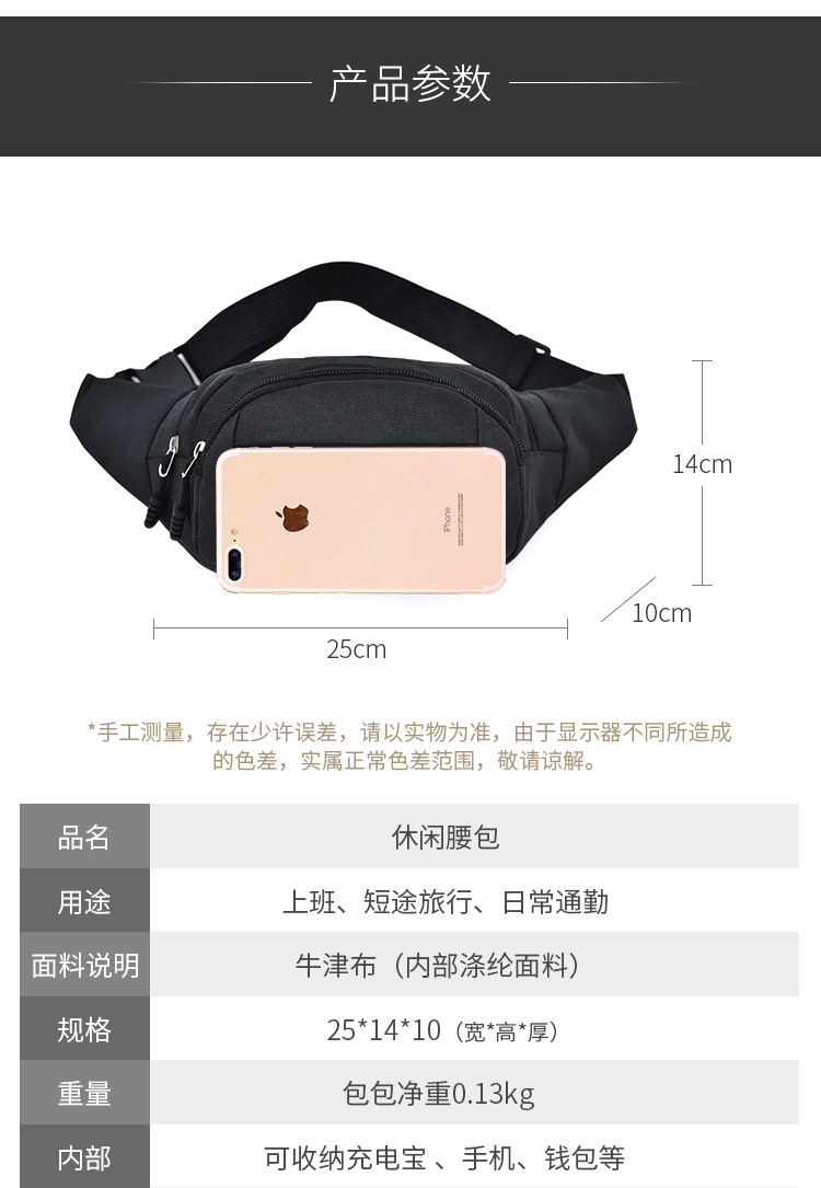 腰包男女通用新款休闲运动单肩包轻便牛津布胸前包时尚百搭斜挎包