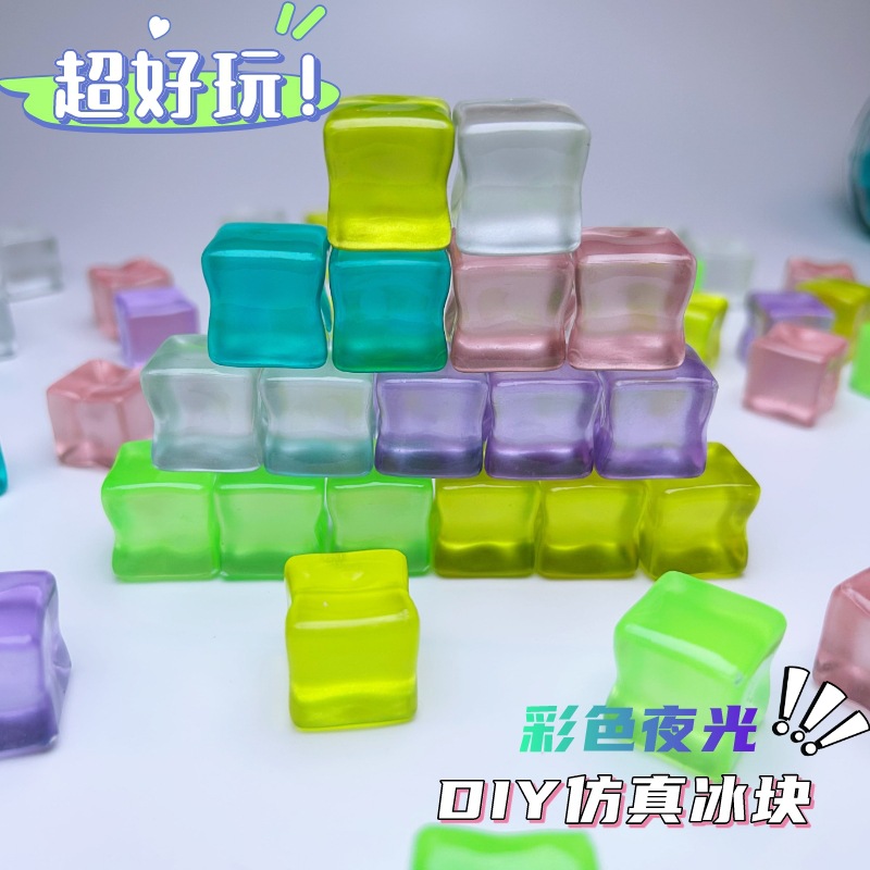 亚克力夜光DIY仿真冰块透明方形发光冰块盲盒材料拍摄道具果冻色