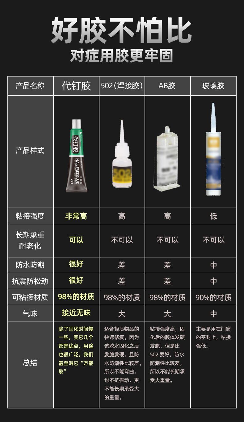 家用万能代钉胶通用免钉胶墙面瓷砖强力胶粘牢防水防潮玻璃门窗胶