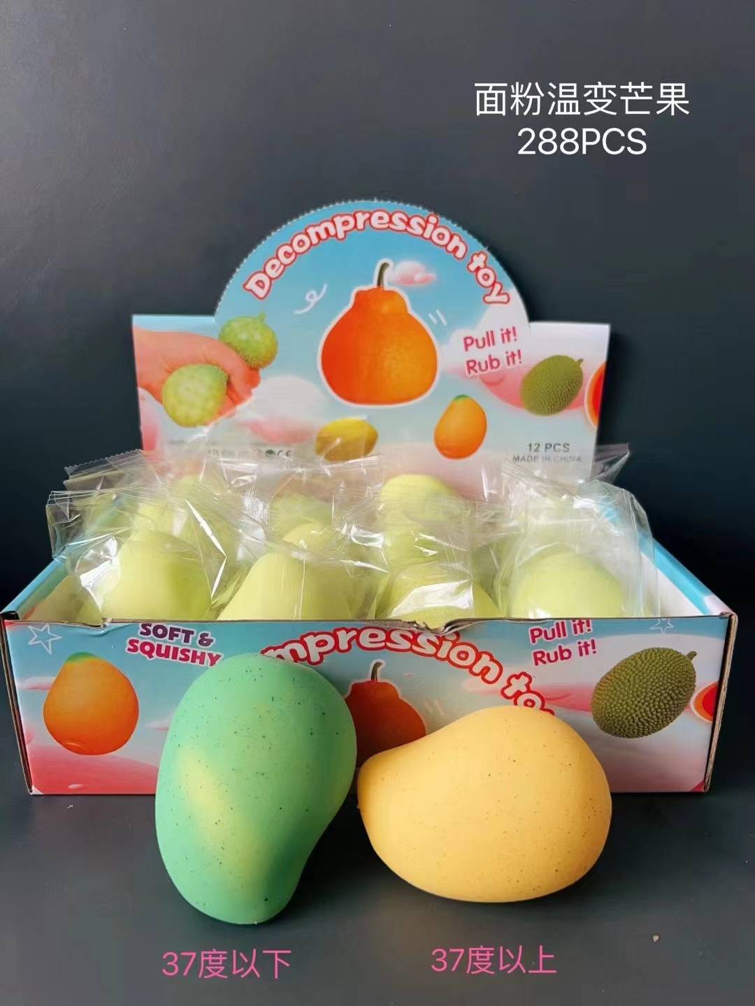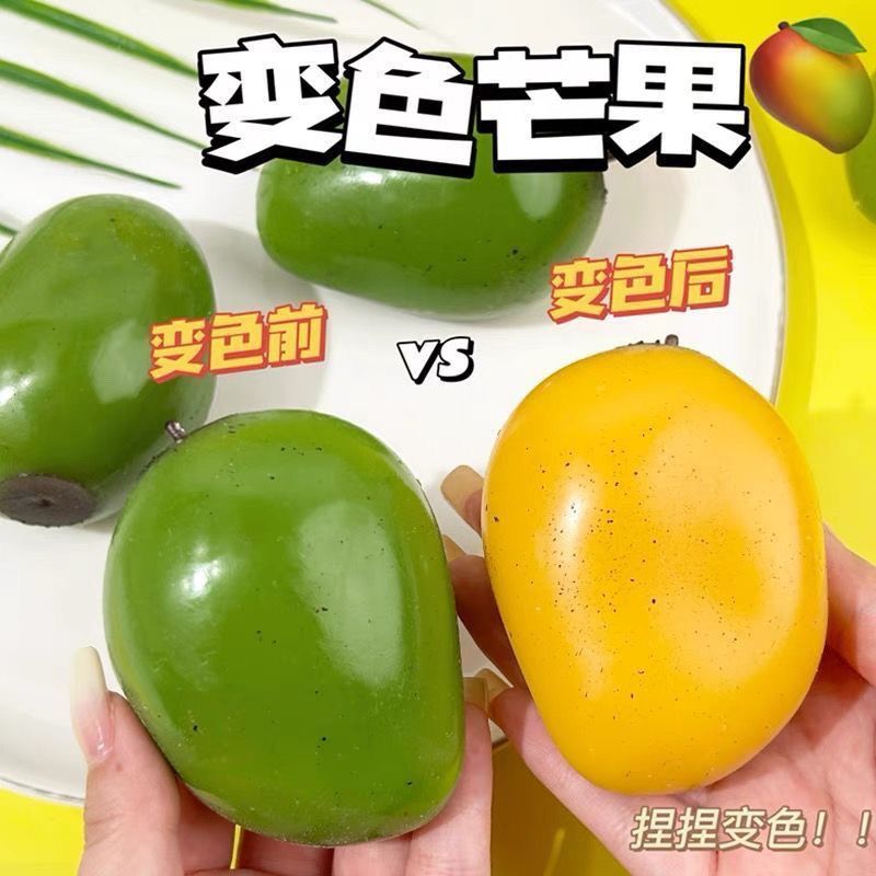 新款网红创意温感手捏变色芒果捏捏乐变色发泄玩具温度变色解压批
