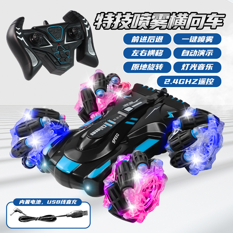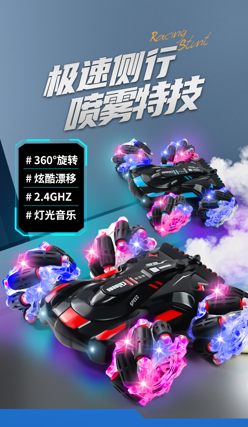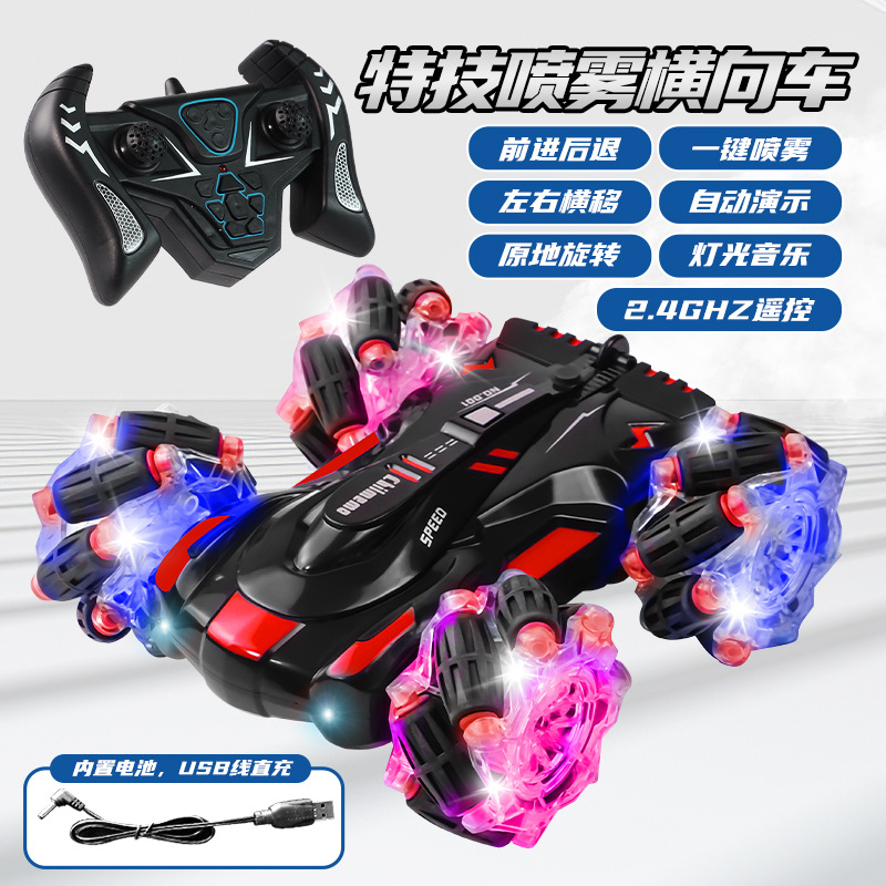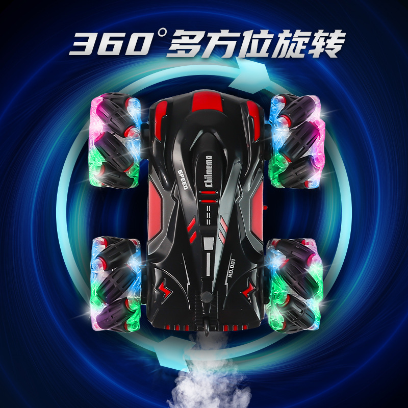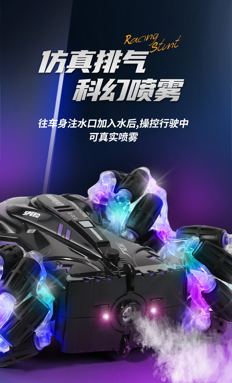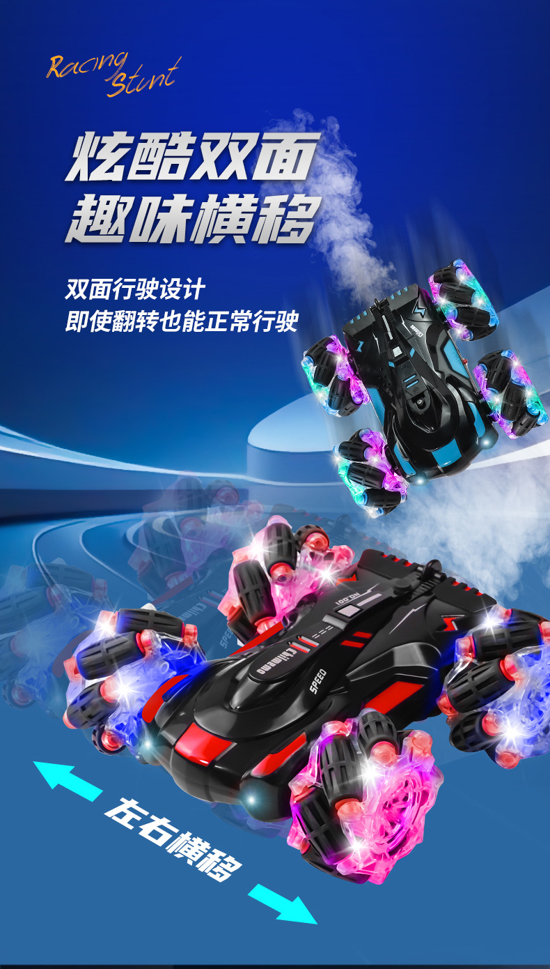 双面行驶灯光喷雾翻滚2.4G特技遥控车越野四驱儿童玩具车厂家批发