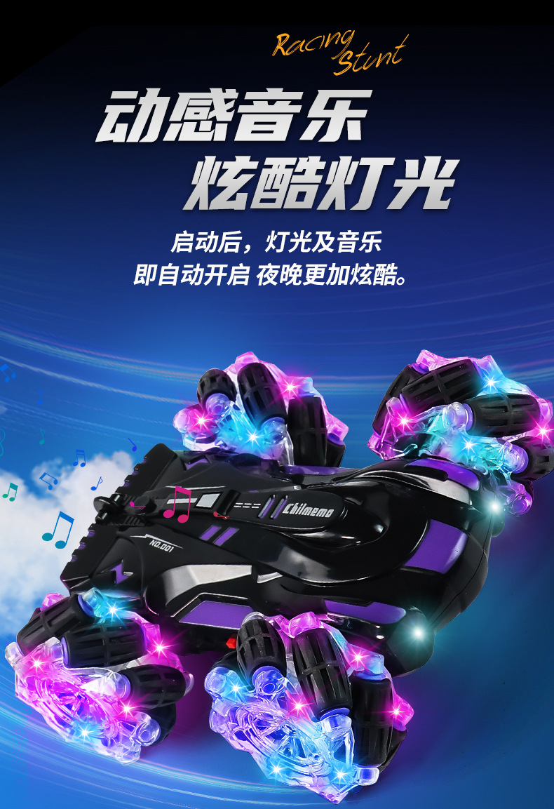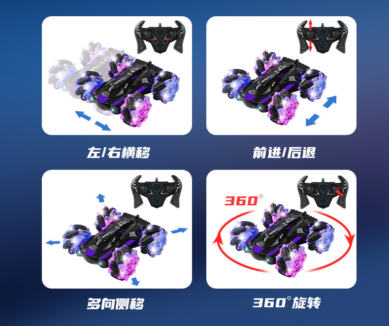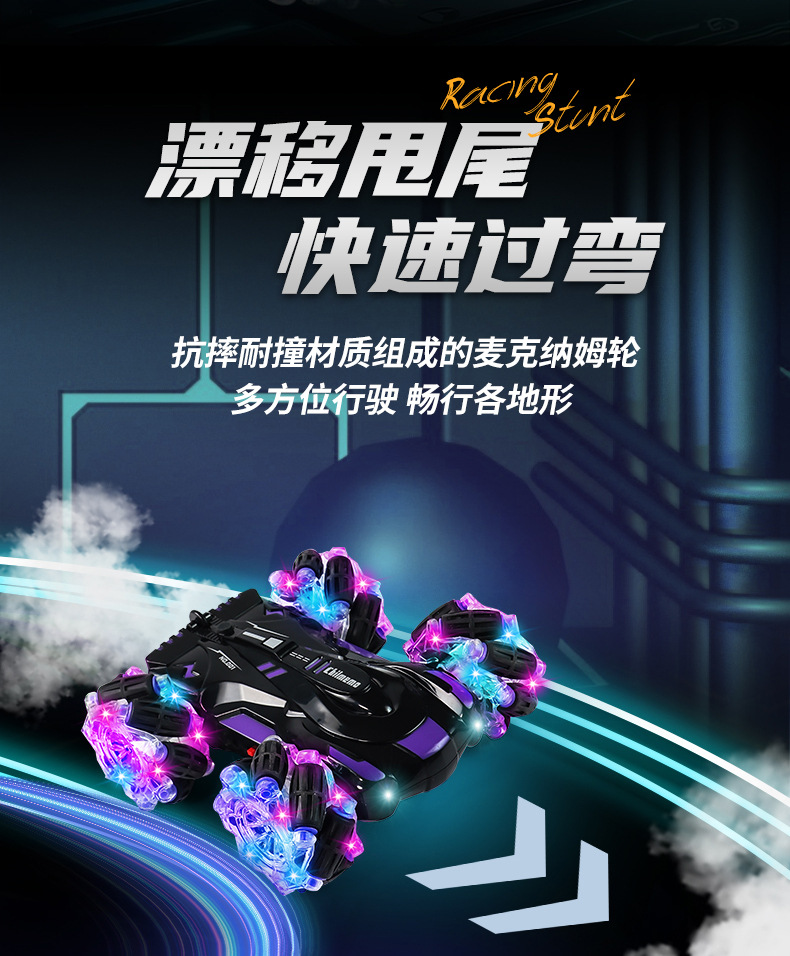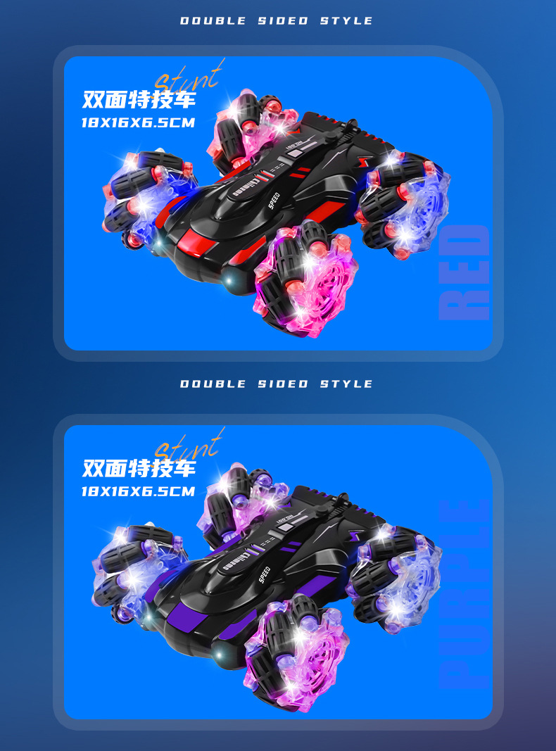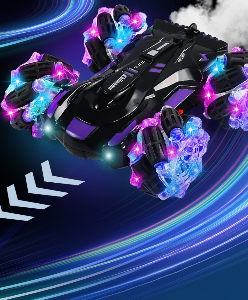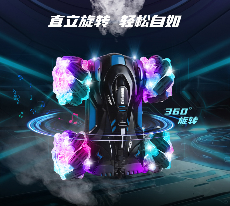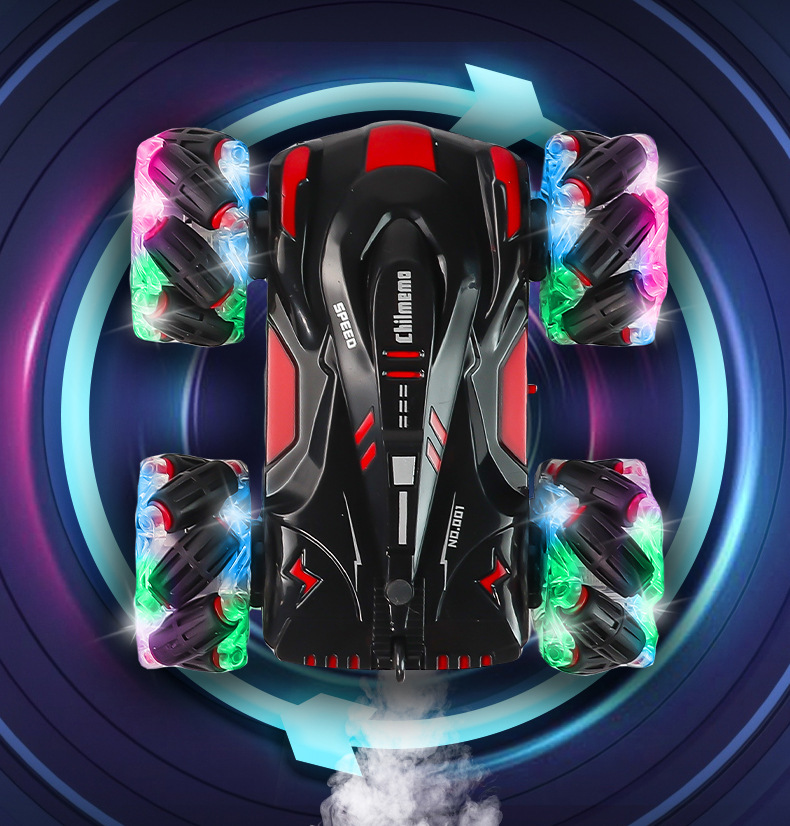 双面行驶灯光喷雾翻滚2.4G特技遥控车越野四驱儿童玩具车厂家批发