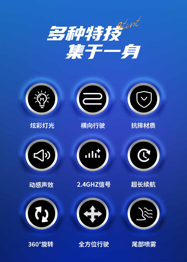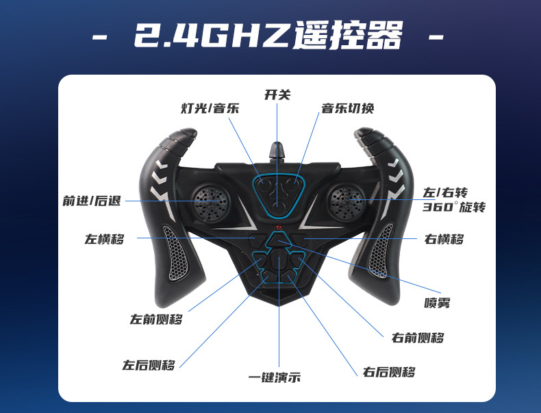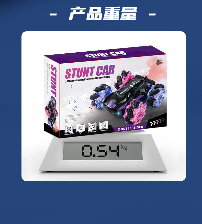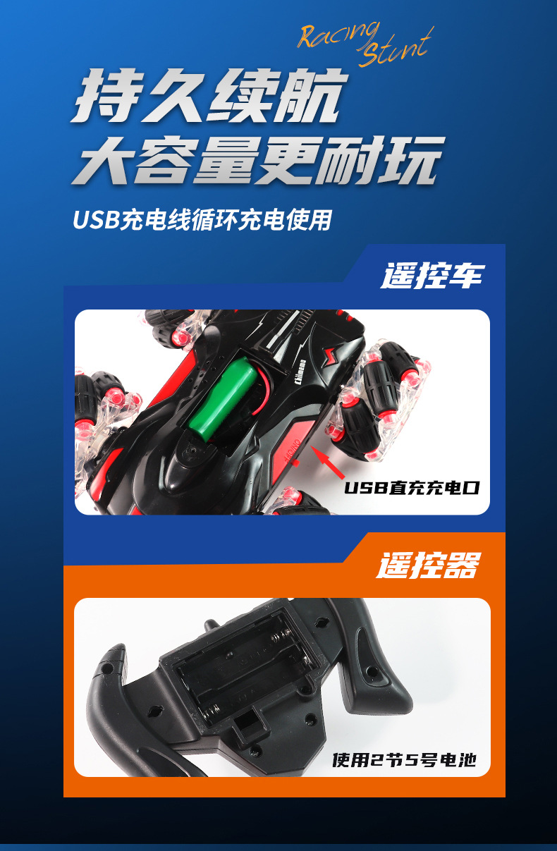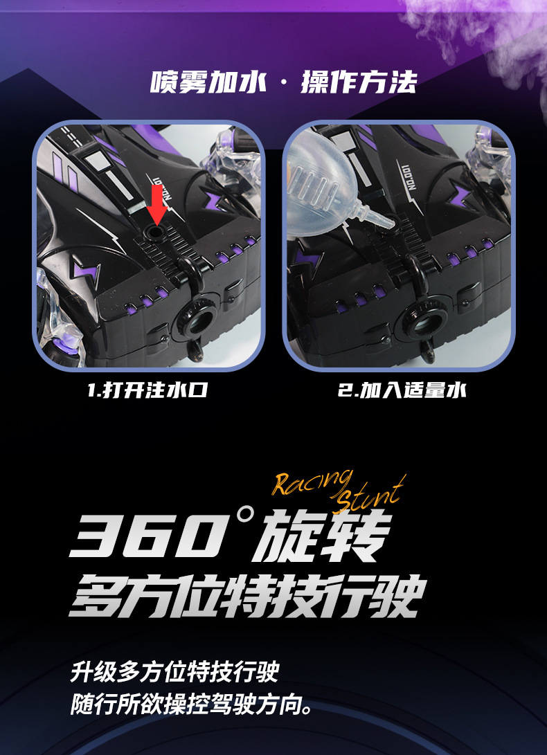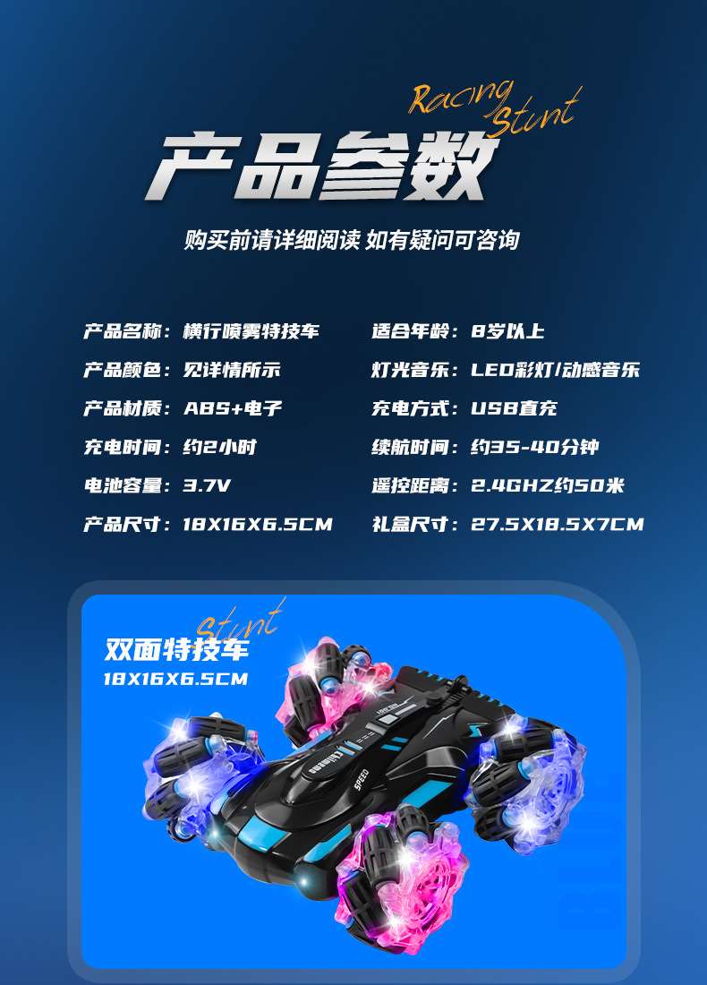 双面行驶灯光喷雾翻滚2.4G特技遥控车越野四驱儿童玩具车厂家批发