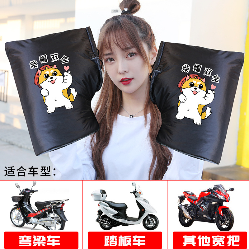 电动车手套冬季保暖加绒加厚印刷LOGO广告图案摩托车加大口把套