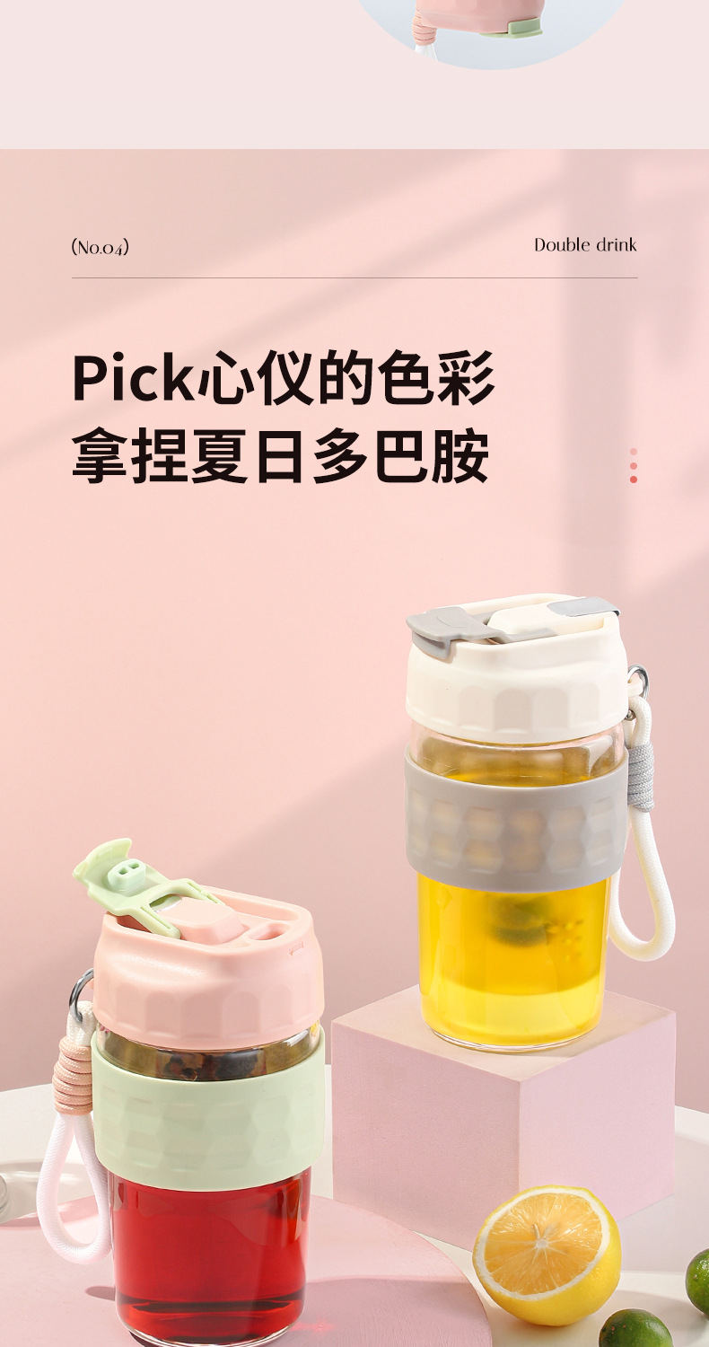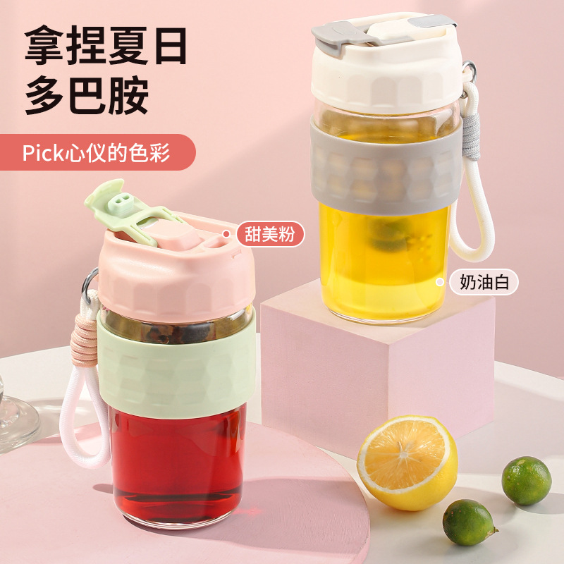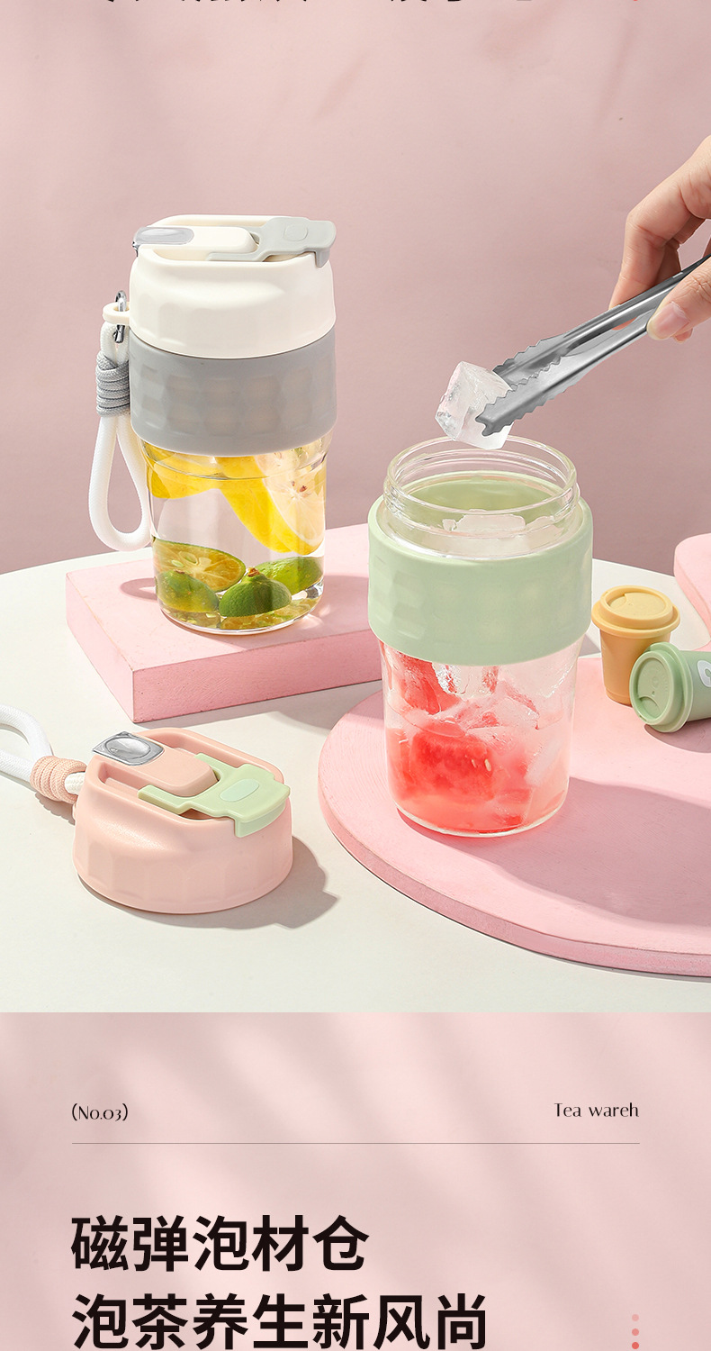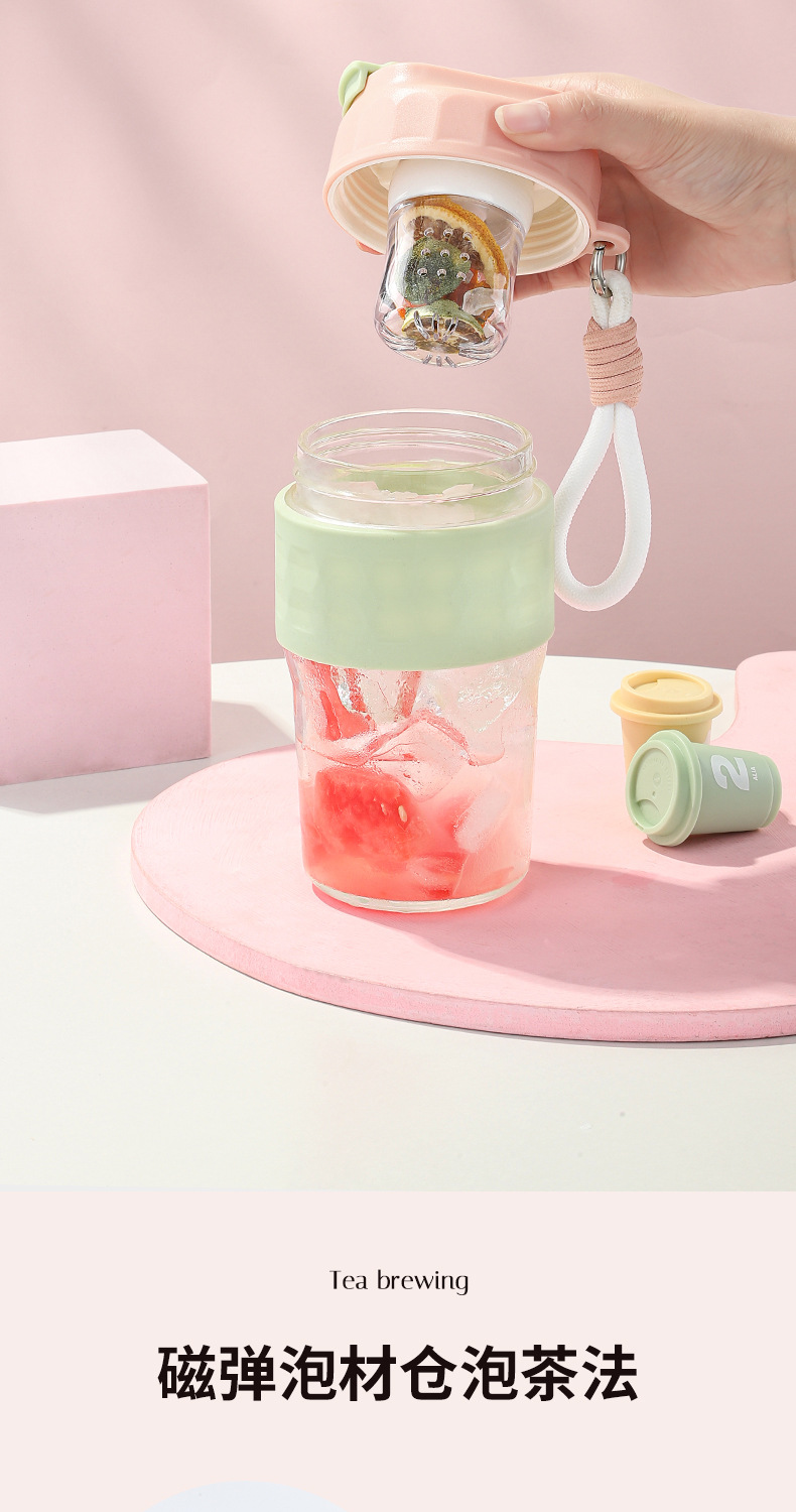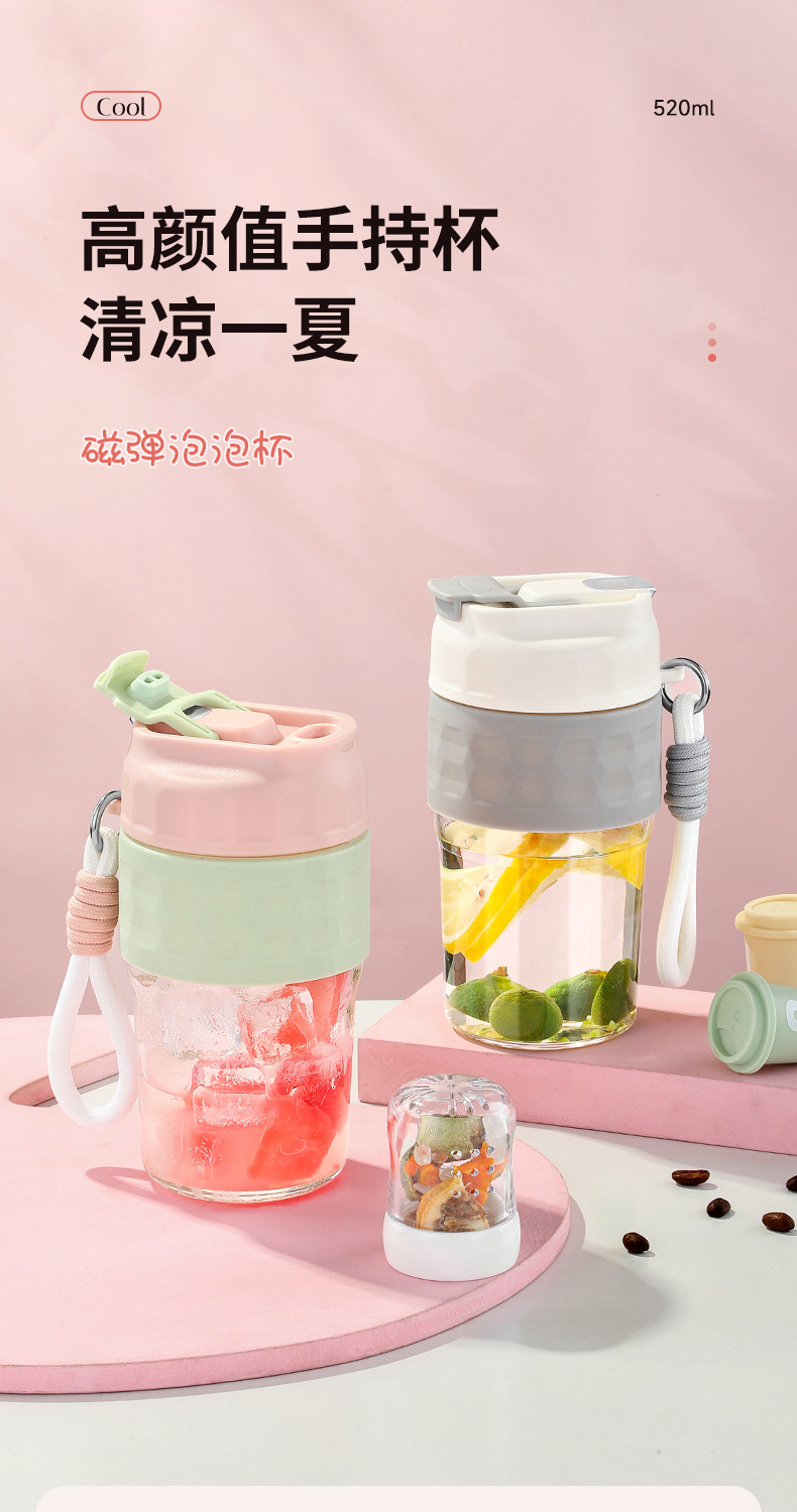 新款磁弹泡泡杯随手杯简约便携水杯高颜值泡茶杯子带提绳男女学生