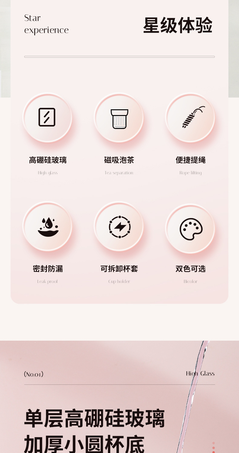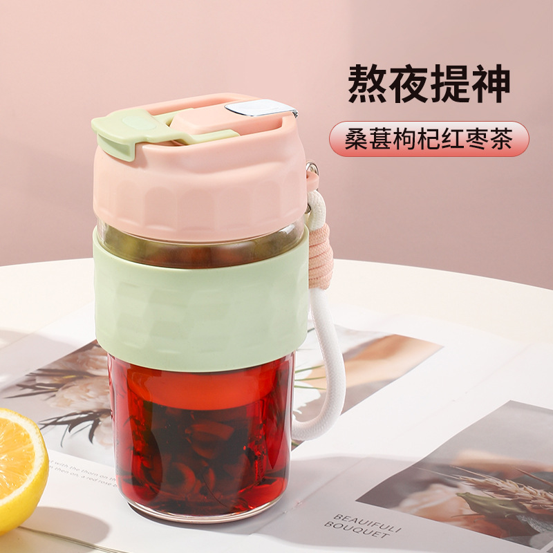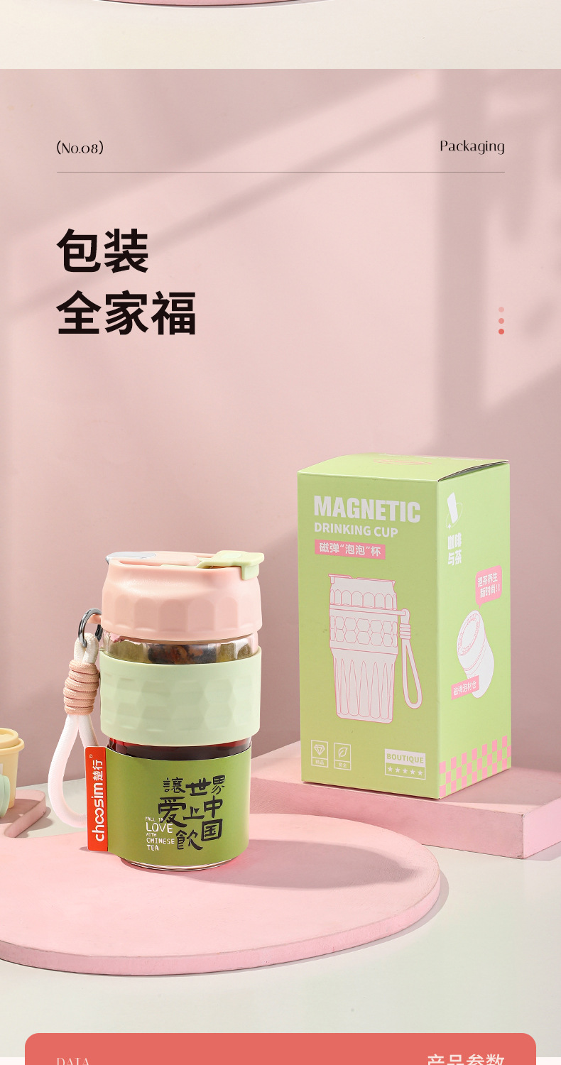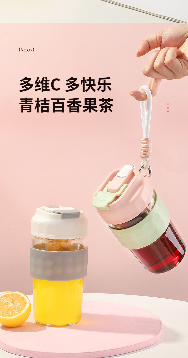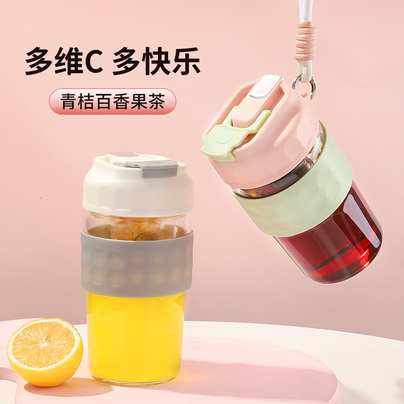 新款磁弹泡泡杯随手杯简约便携水杯高颜值泡茶杯子带提绳男女学生