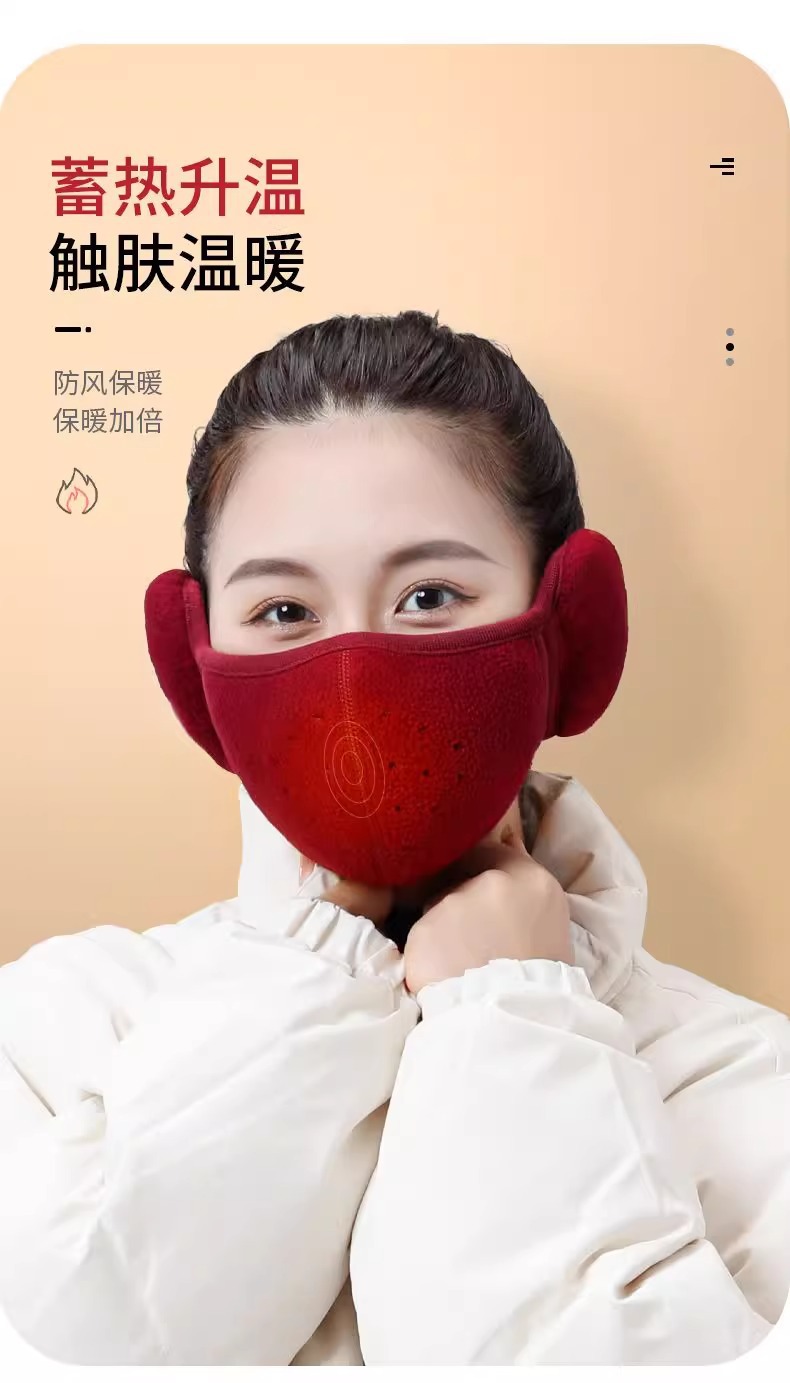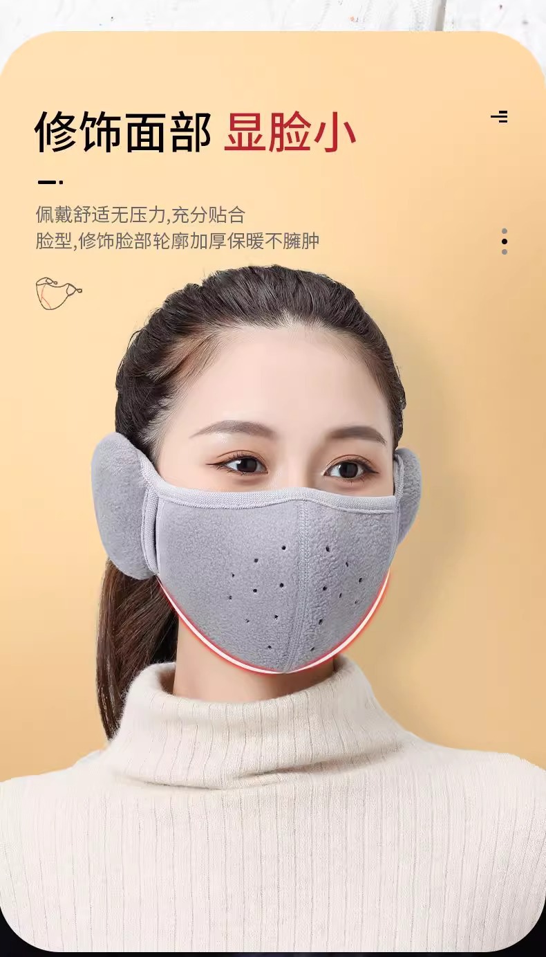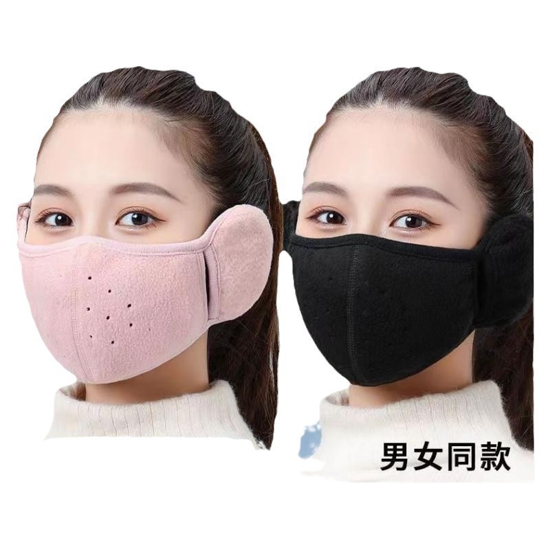 秋冬立体二合一保暖口罩加绒季护耳摇粒绒男女骑行防风防寒冷透气