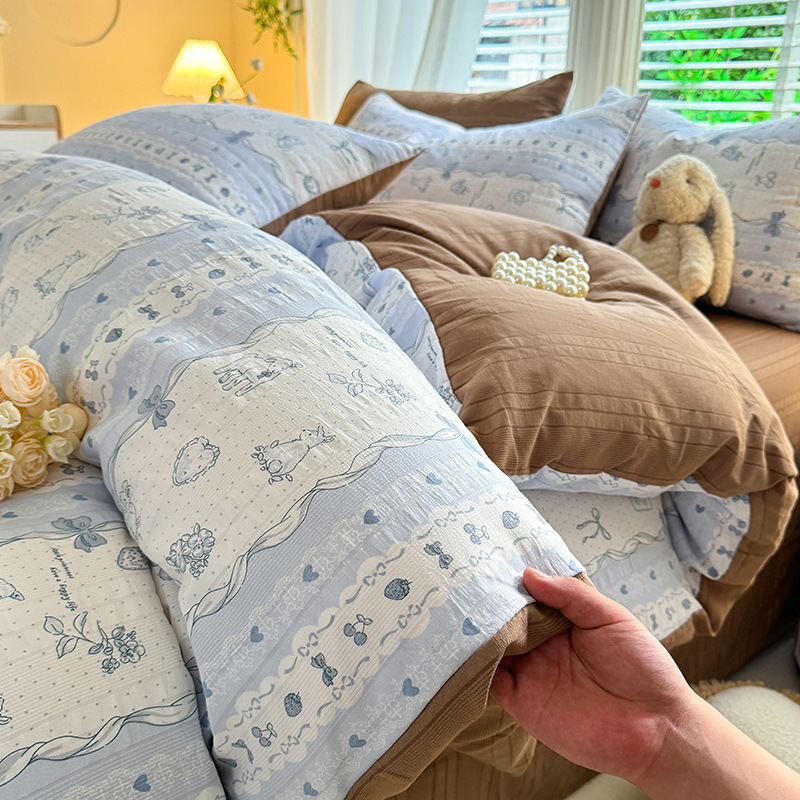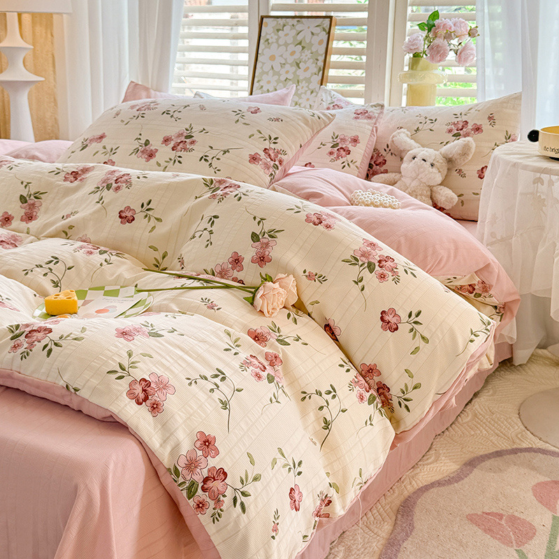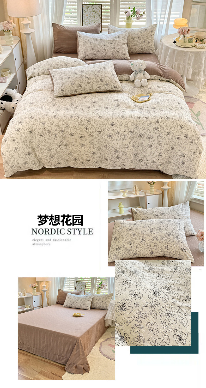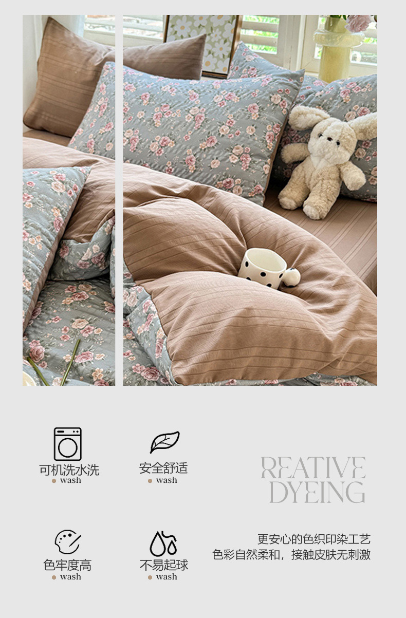 ins新款A类亲肤云纱棉四件套床单被套学生宿舍三件套床上用品床笠