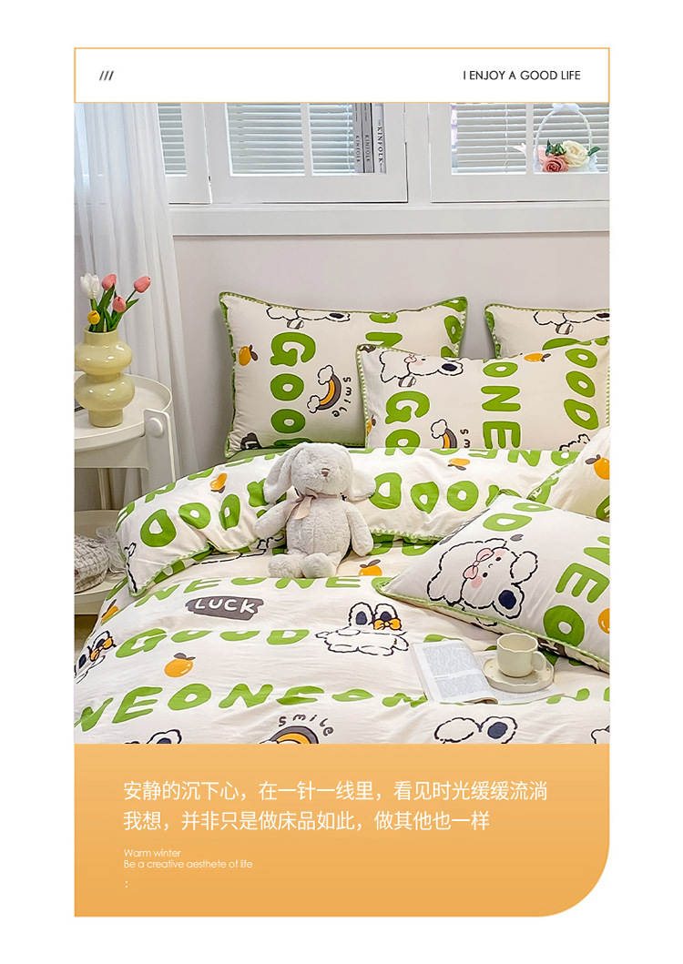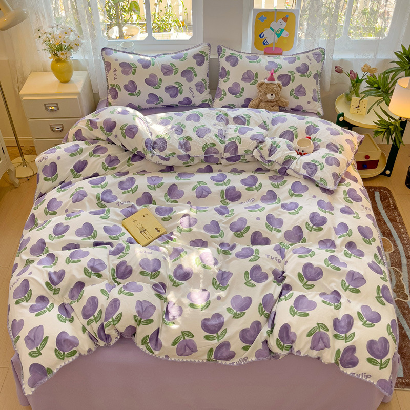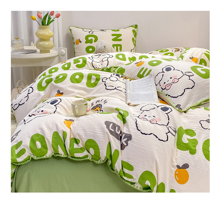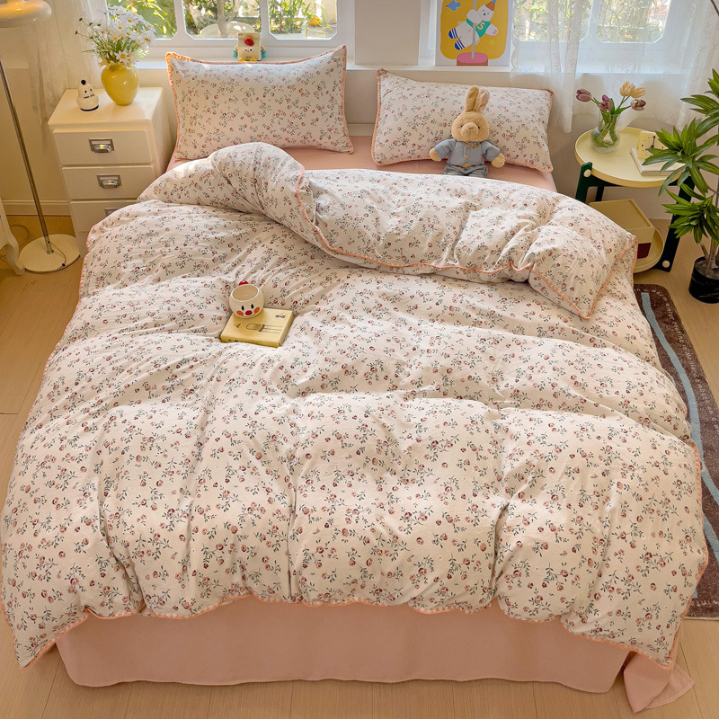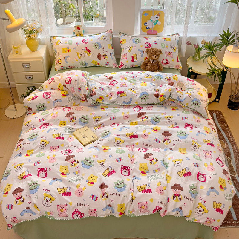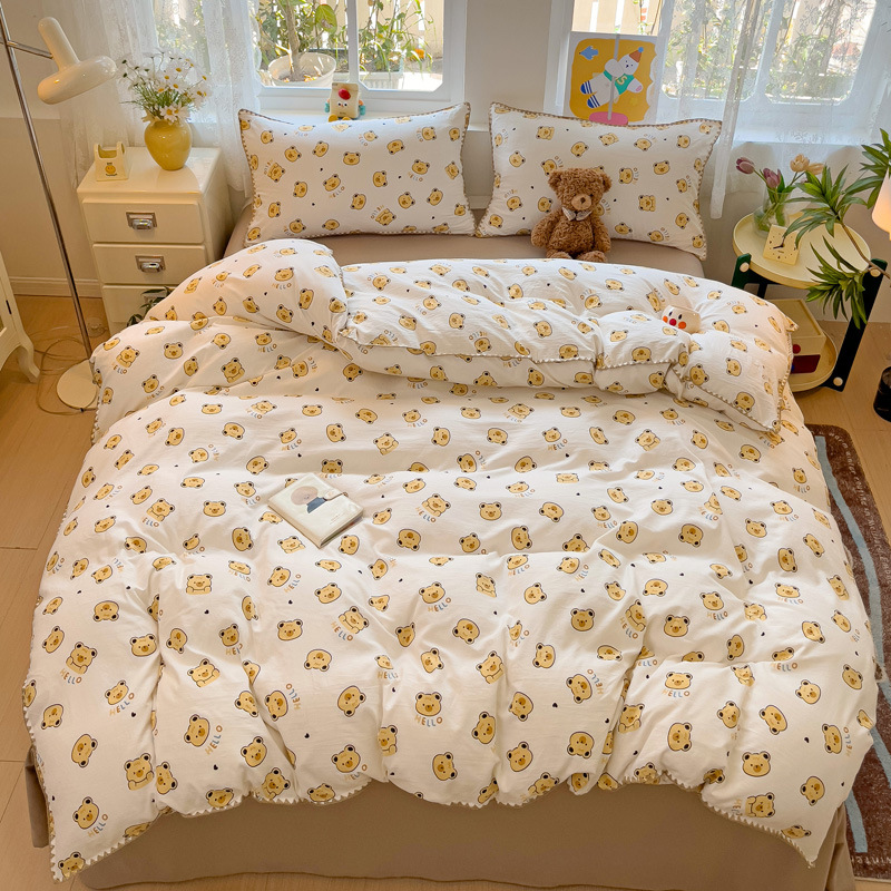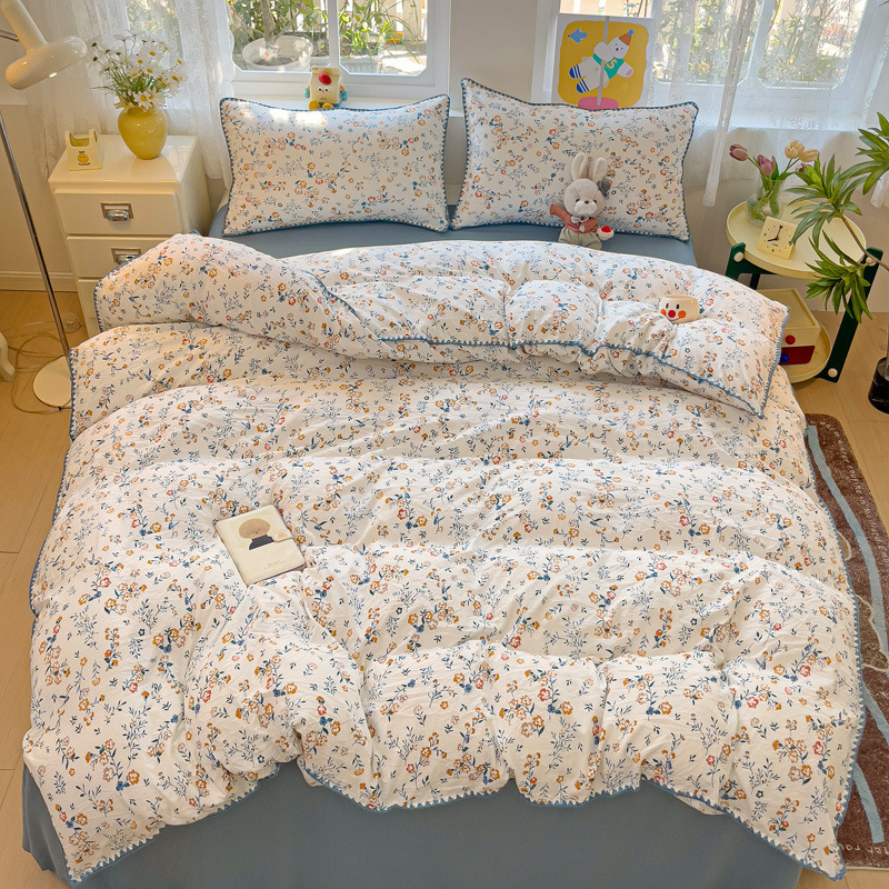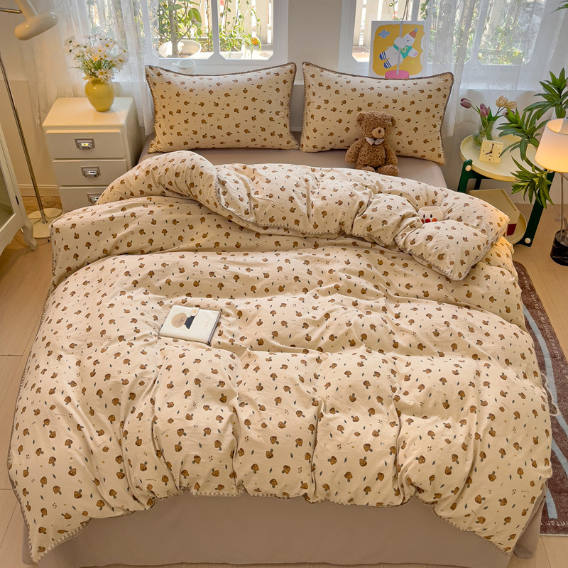 新款印花双层纱超柔水洗棉四件套床单被套学生宿舍三件套床上用品