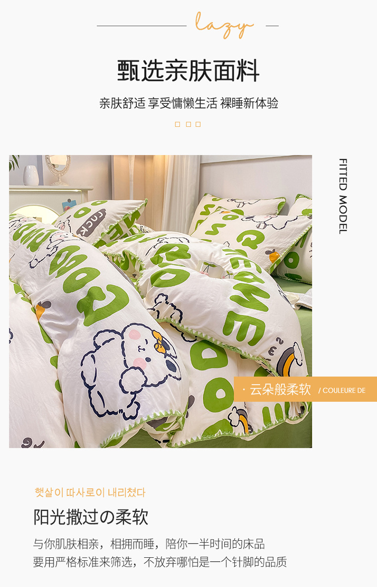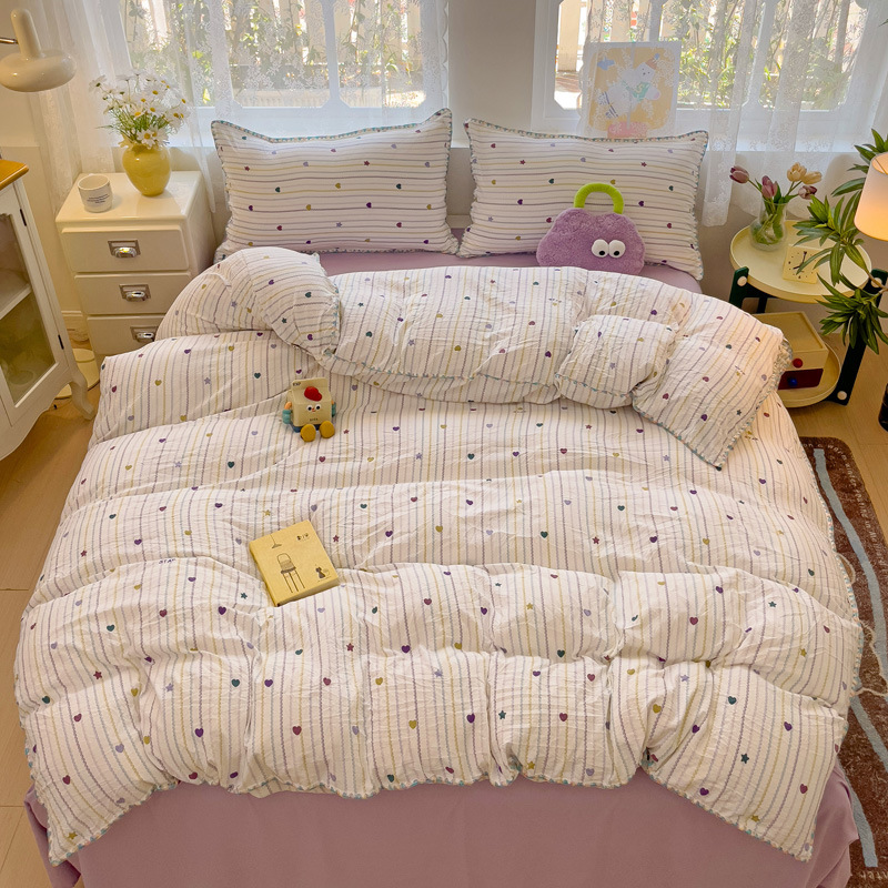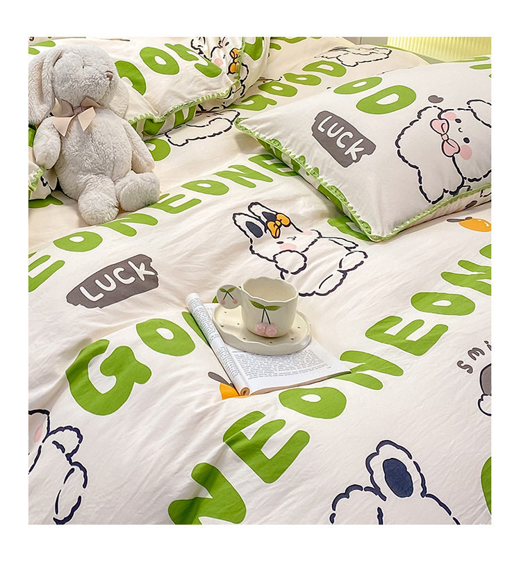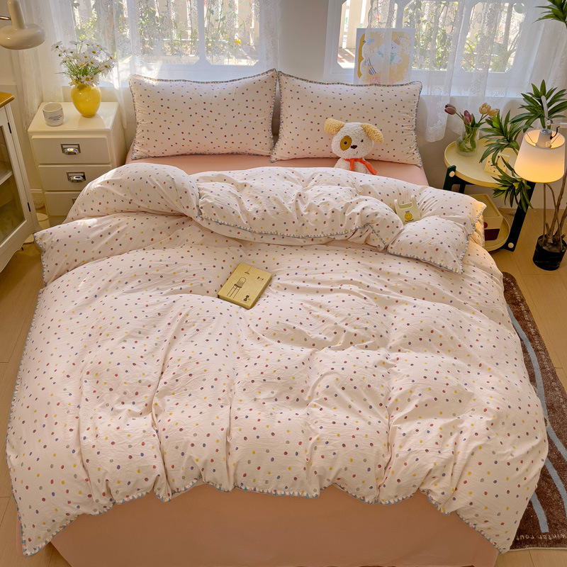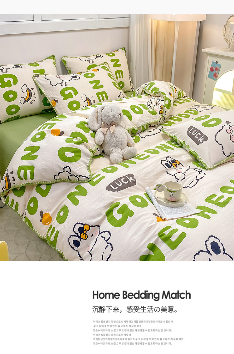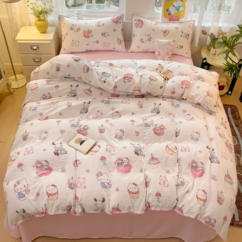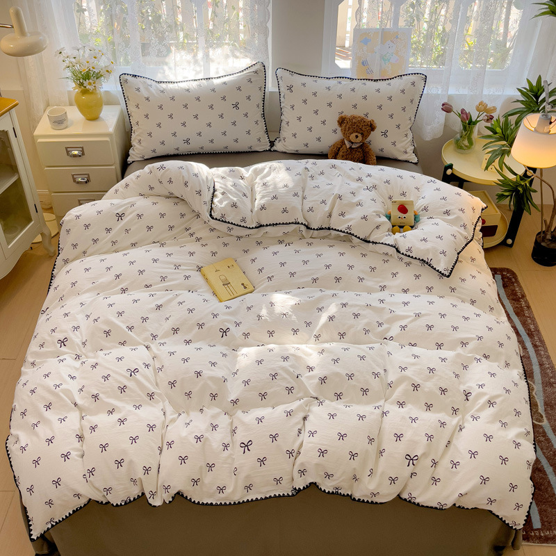 新款印花双层纱超柔水洗棉四件套床单被套学生宿舍三件套床上用品