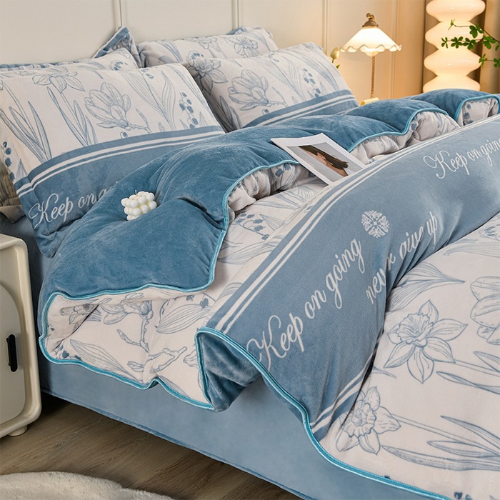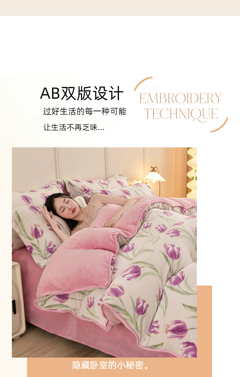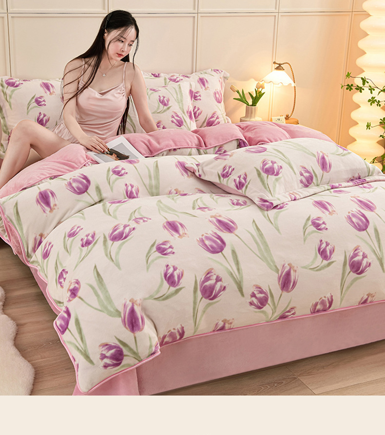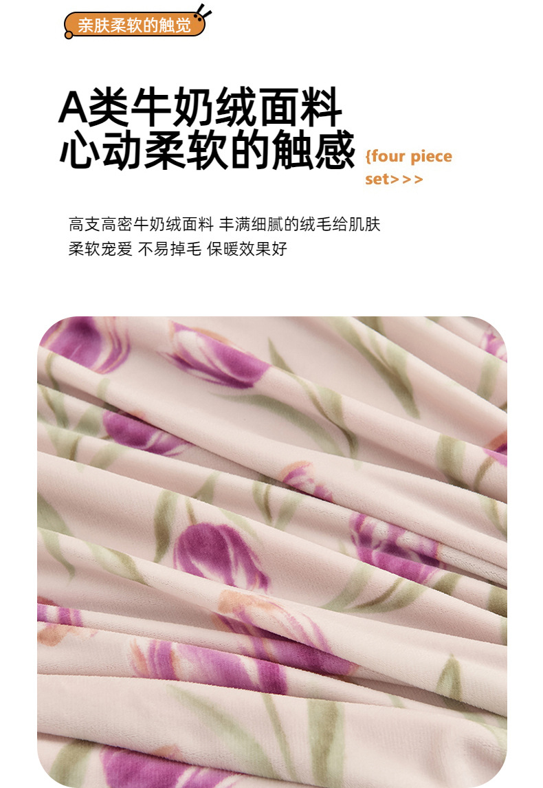 ins风冬季加厚牛奶绒四件套床单被套学生宿舍三件套床上用品床笠4