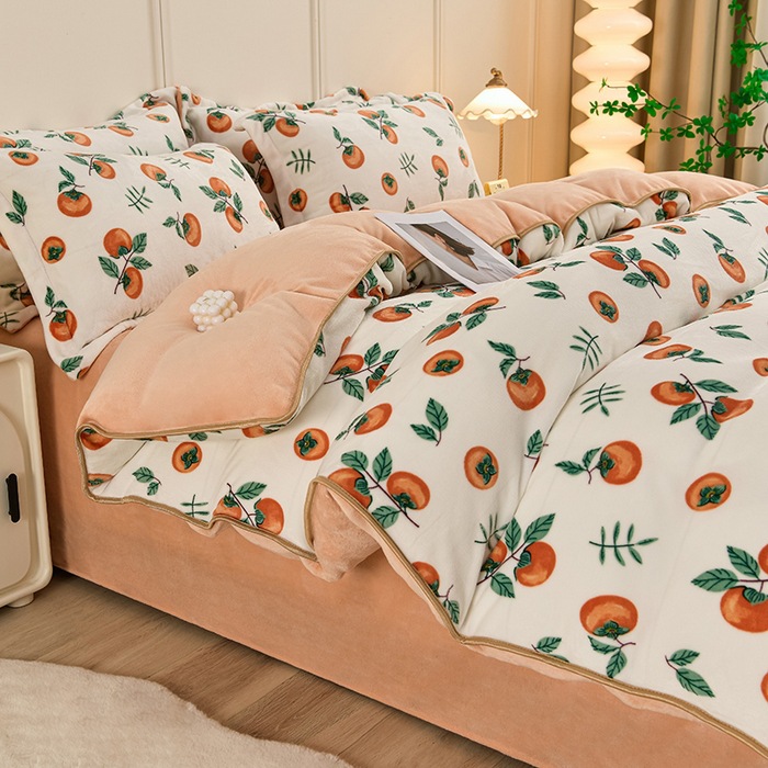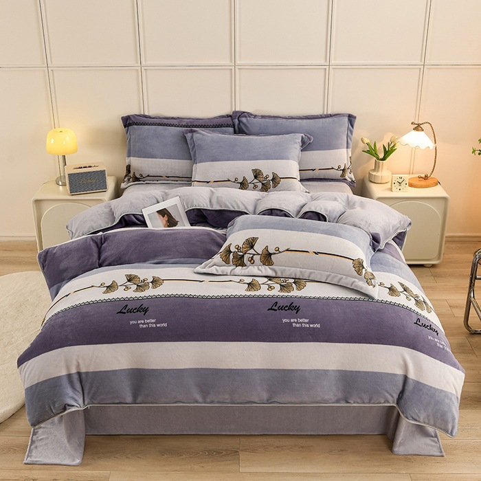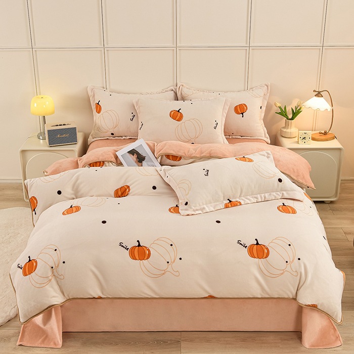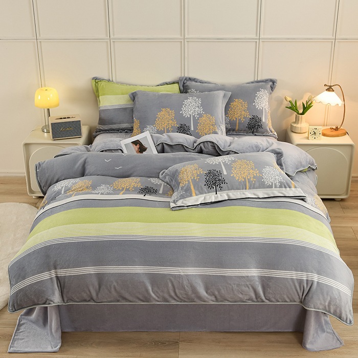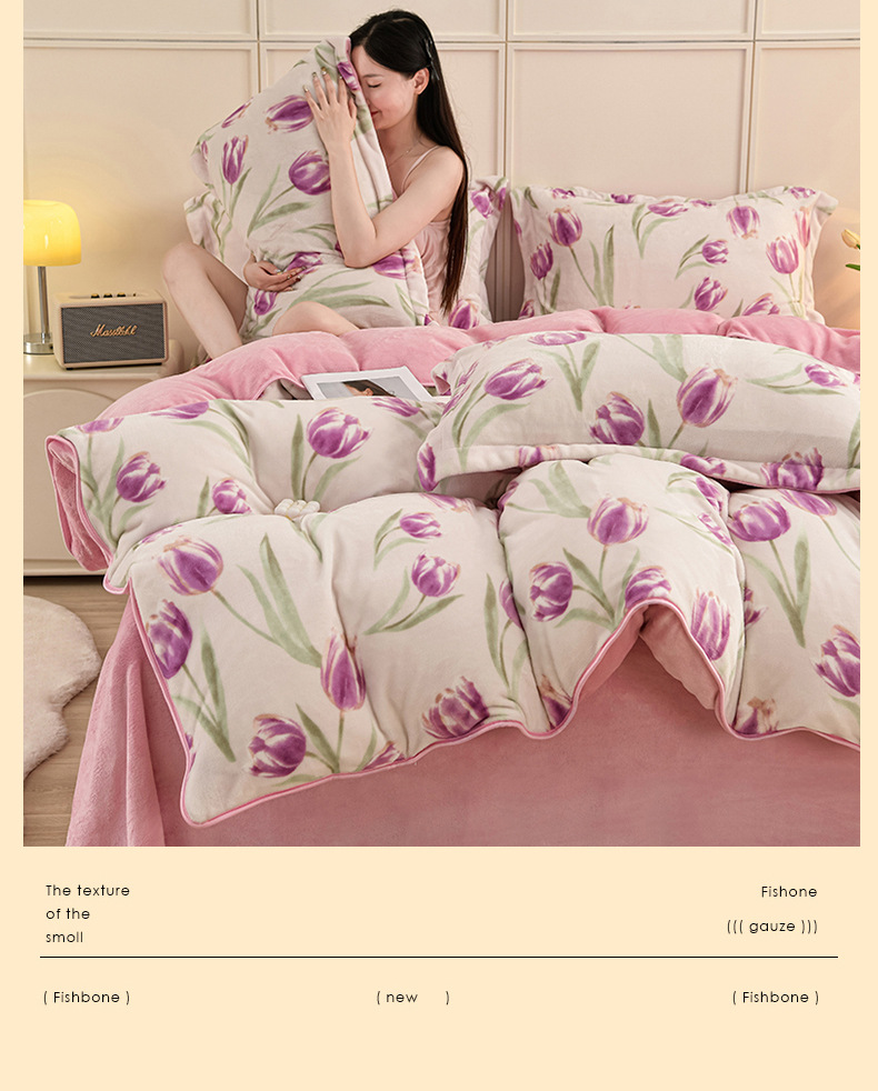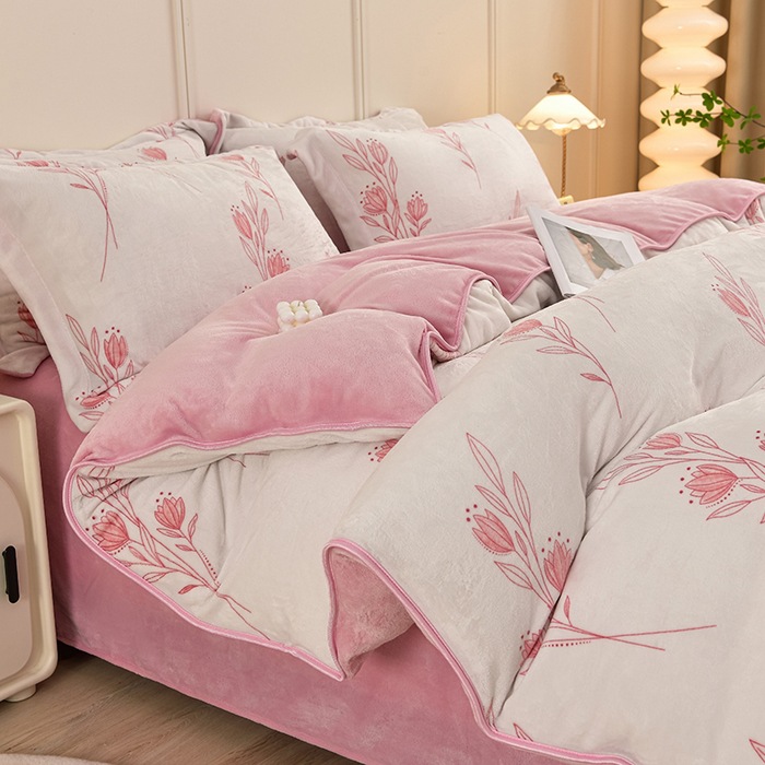 ins风冬季加厚牛奶绒四件套床单被套学生宿舍三件套床上用品床笠4