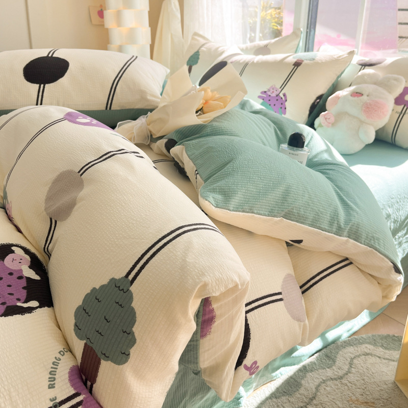 A类母婴级泡泡棉四件套新款提花宿舍加厚床上三件套被套床单批发