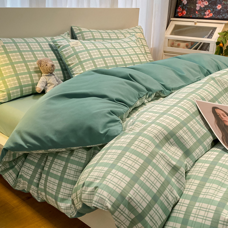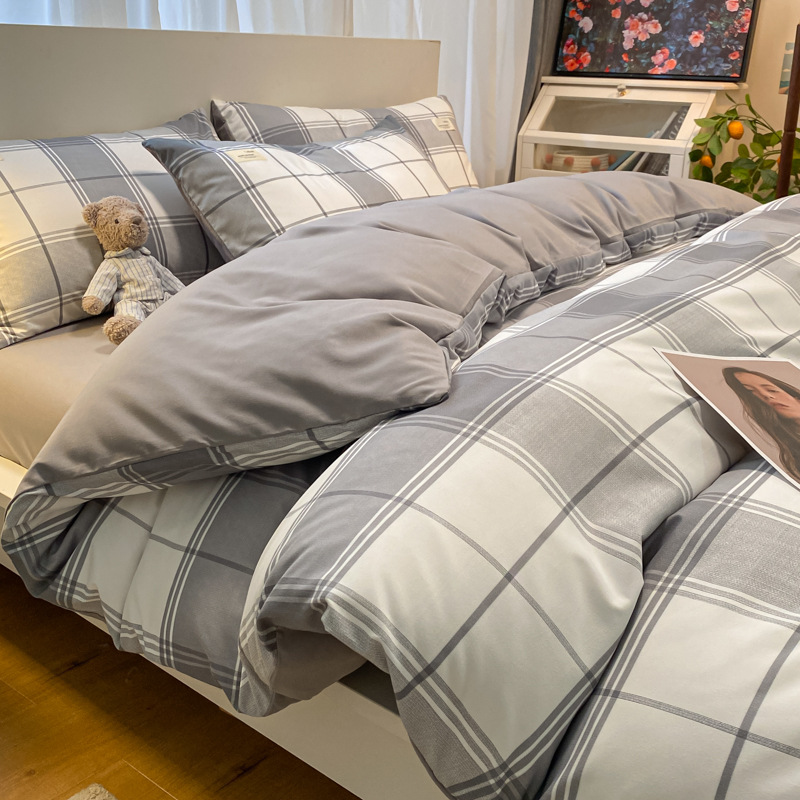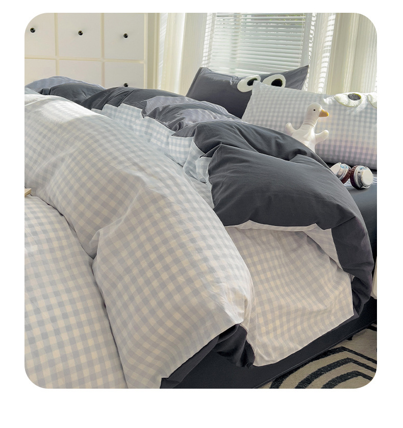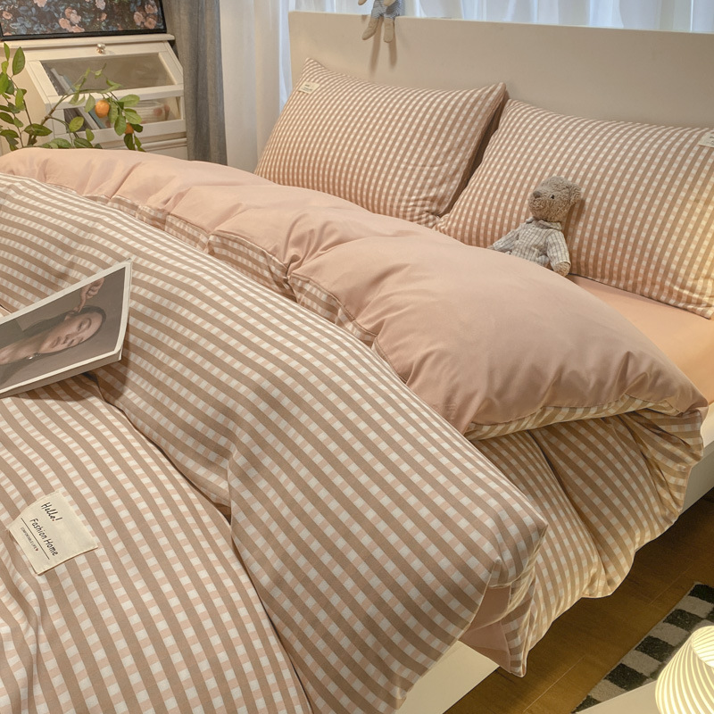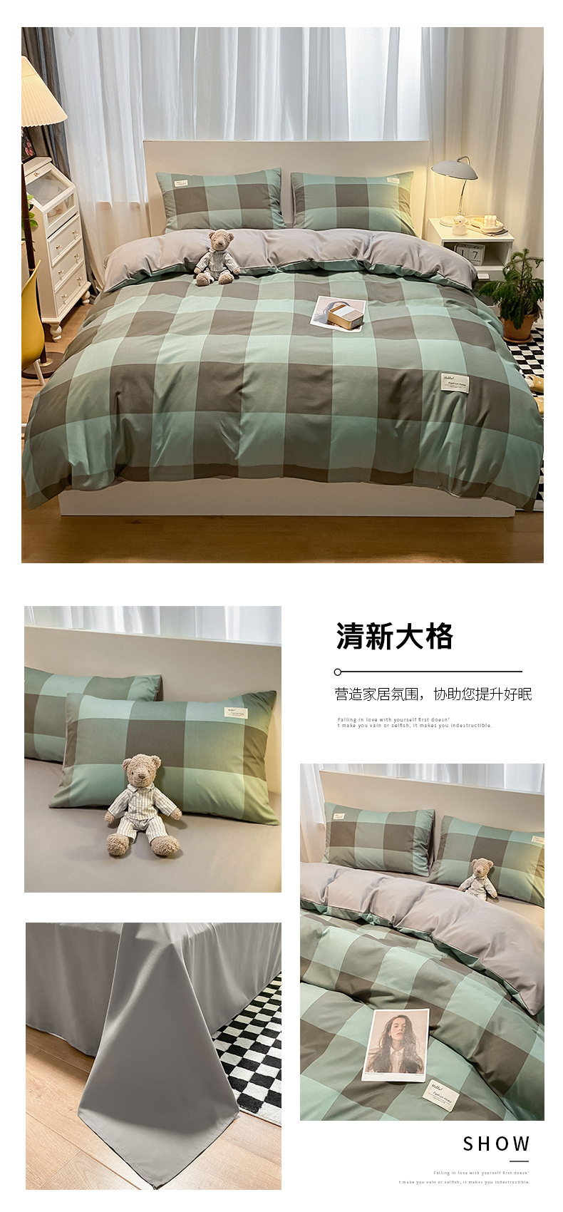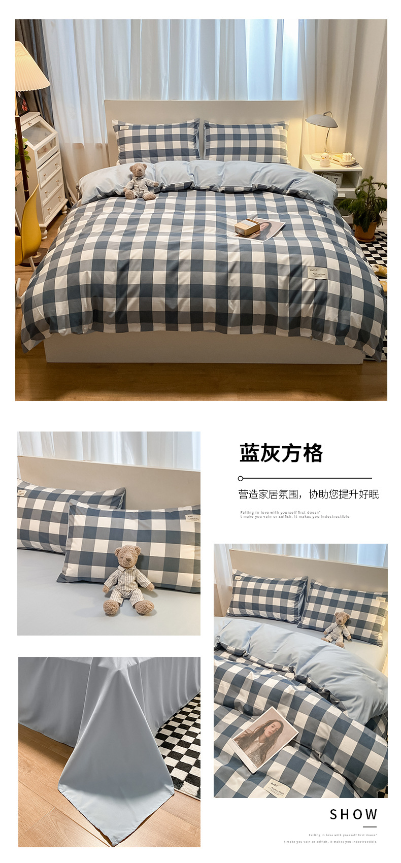 简约纯棉四件套40支日式加厚斜纹棉三件套格子床宿舍被套礼品批发