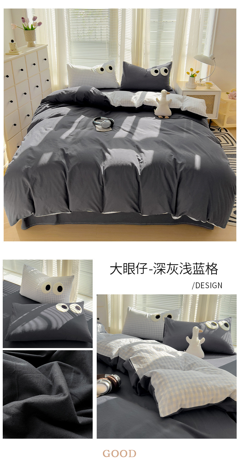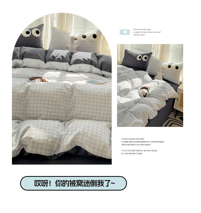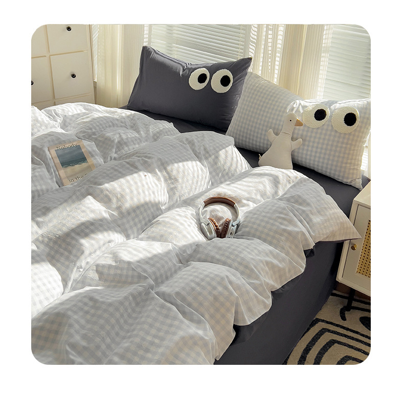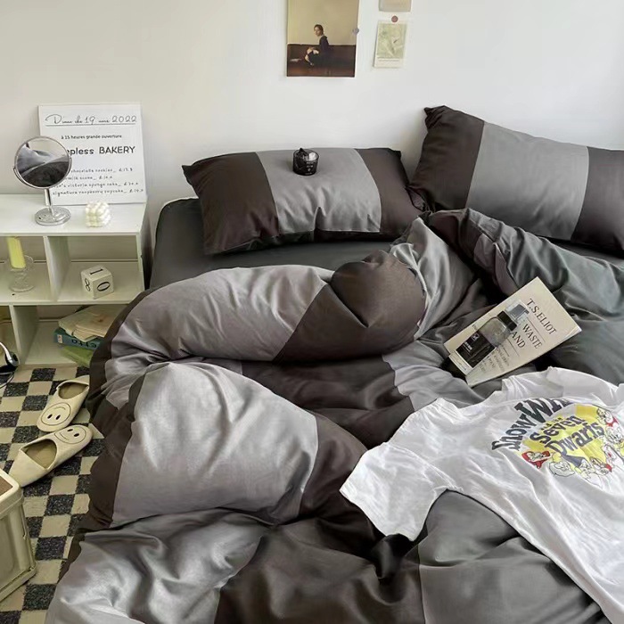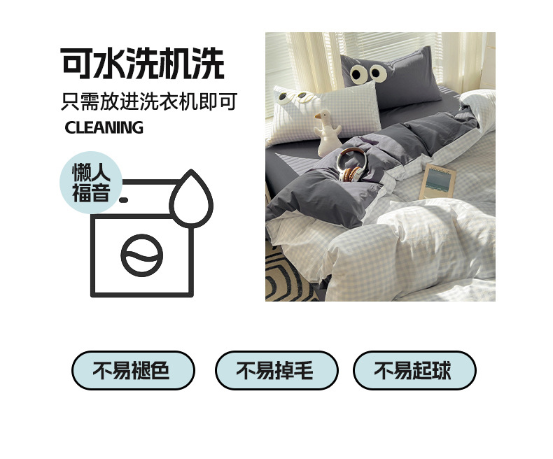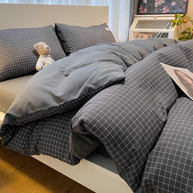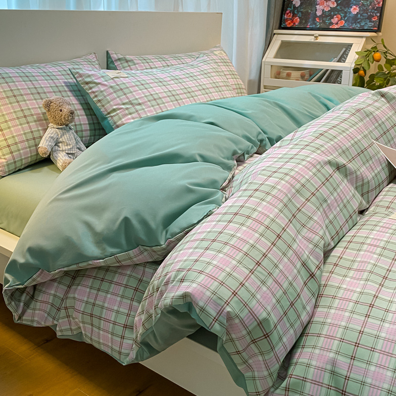简约纯棉四件套40支日式加厚斜纹棉三件套格子床宿舍被套礼品批发