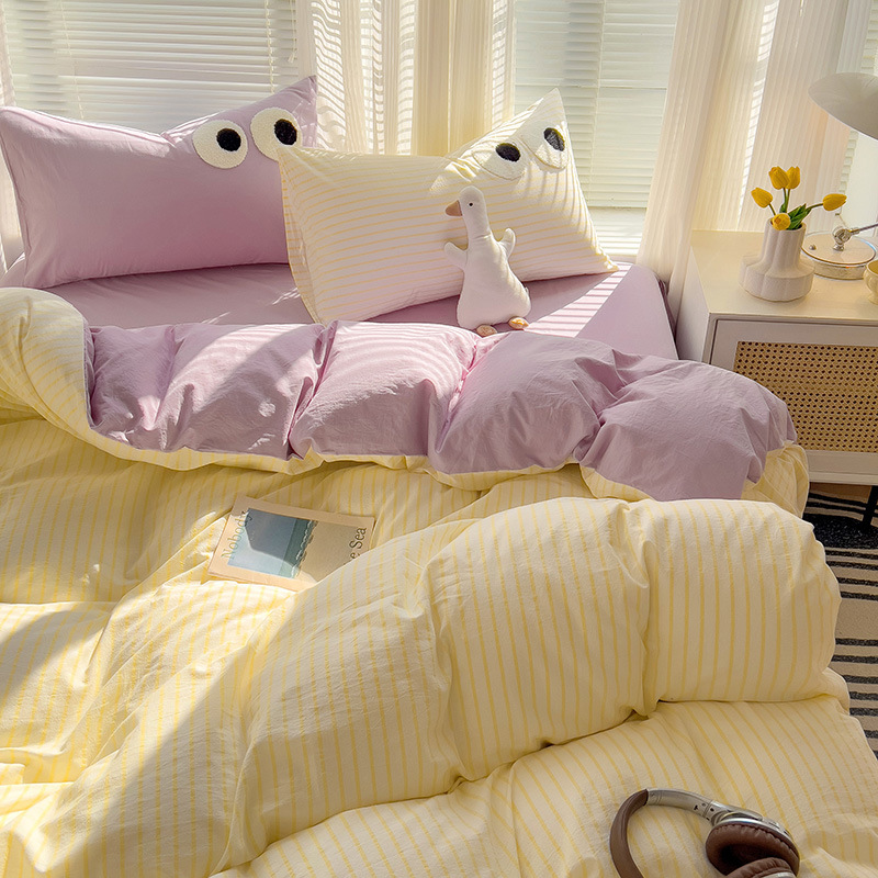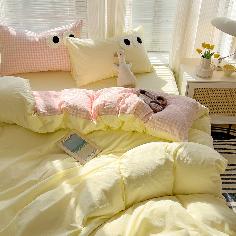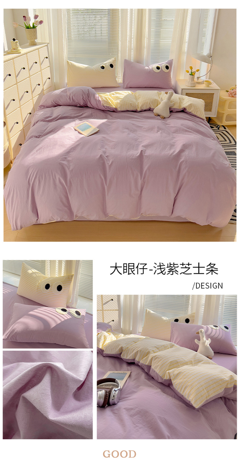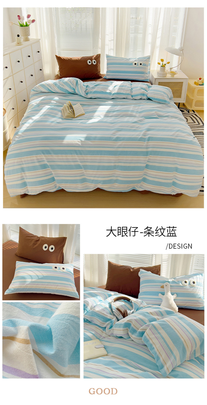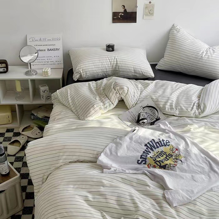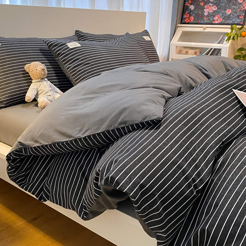 简约纯棉四件套40支日式加厚斜纹棉三件套格子床宿舍被套礼品批发