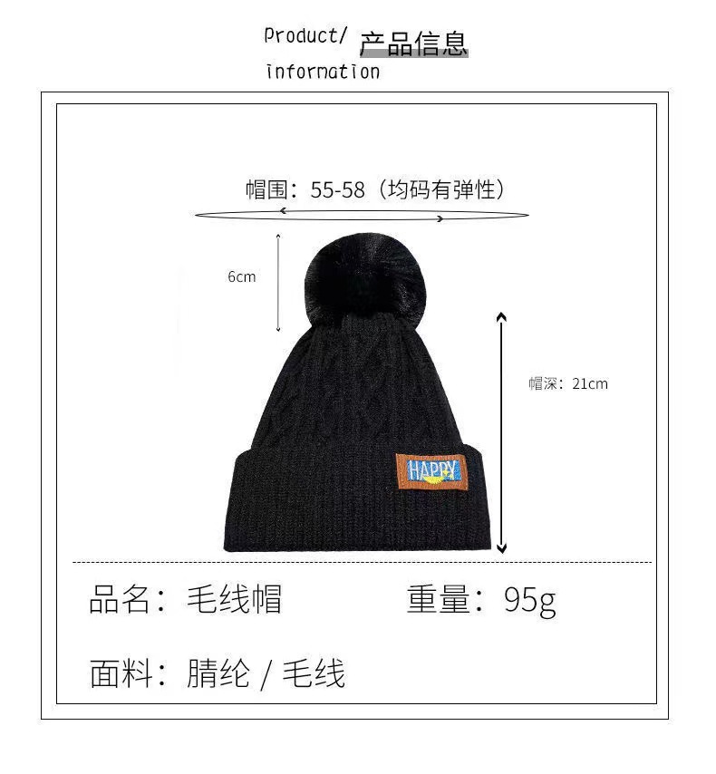 2023冬季加绒保暖毛线帽韩版冷帽时尚简约显脸小大头围针织女帽子
