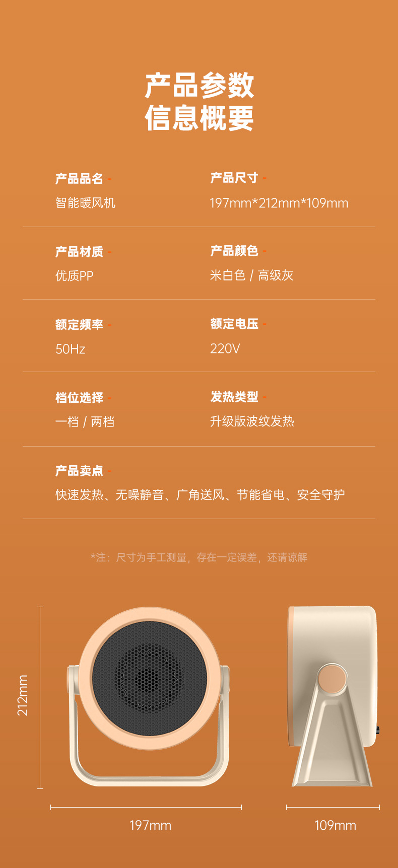 新款跨境桌面迷你暖风机家用办公室桌面母婴速热小型便携式取暖器