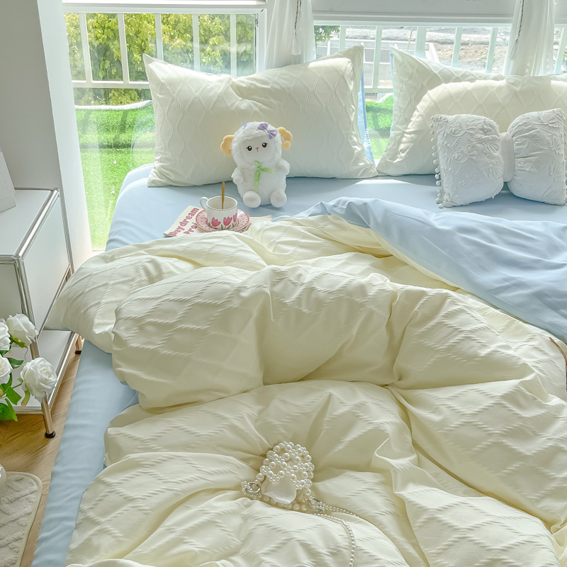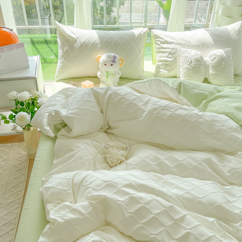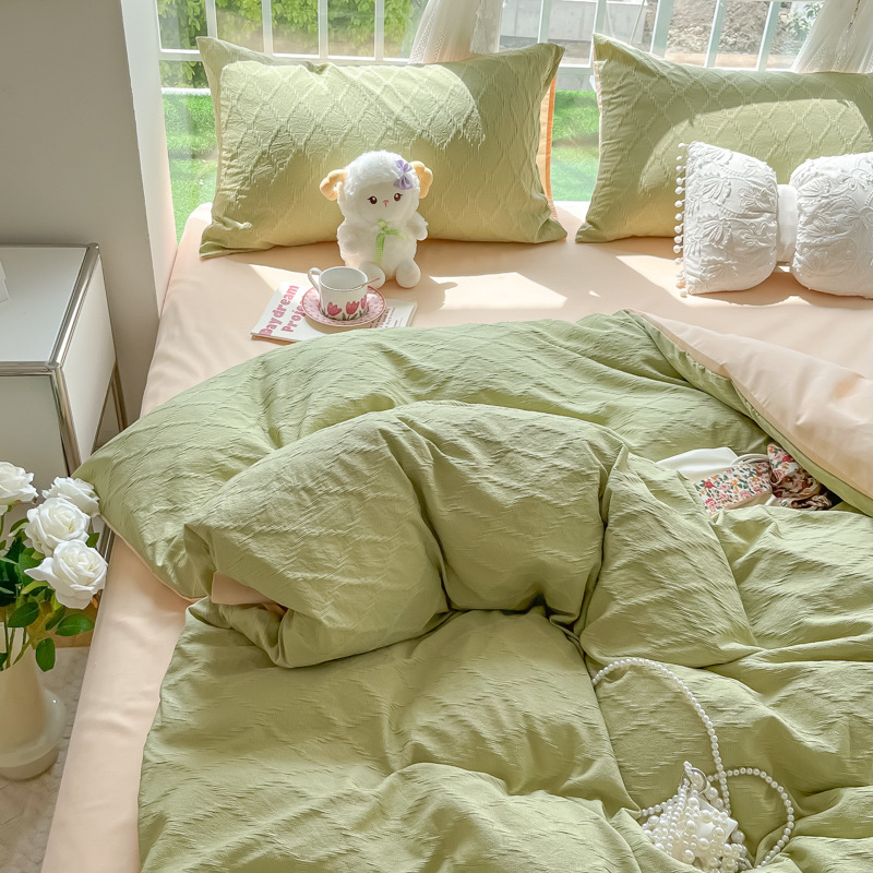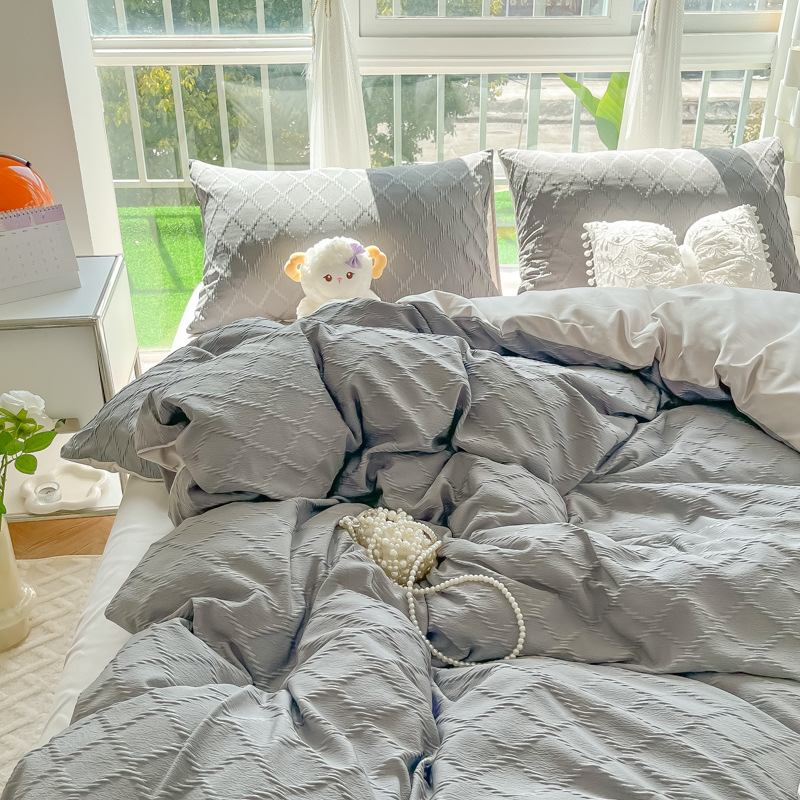 2024新款四件套加厚针织水洗棉床上三件套简约纯色宿舍被套床单批