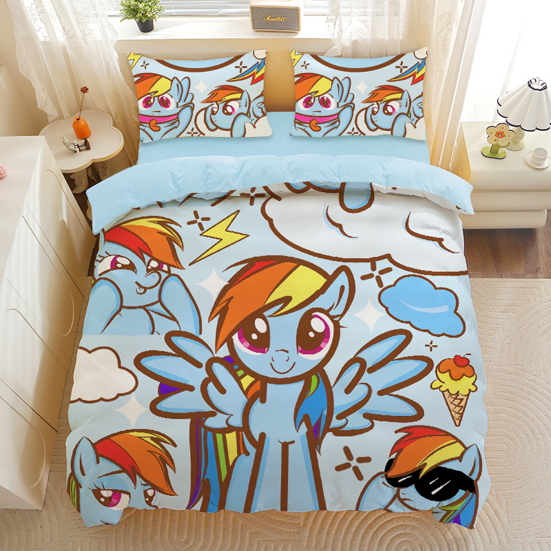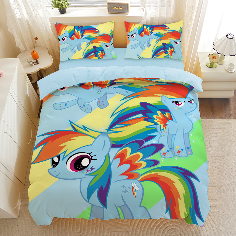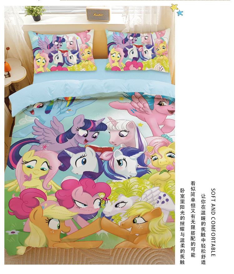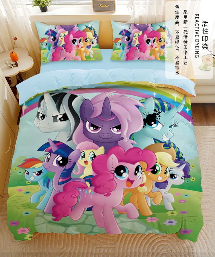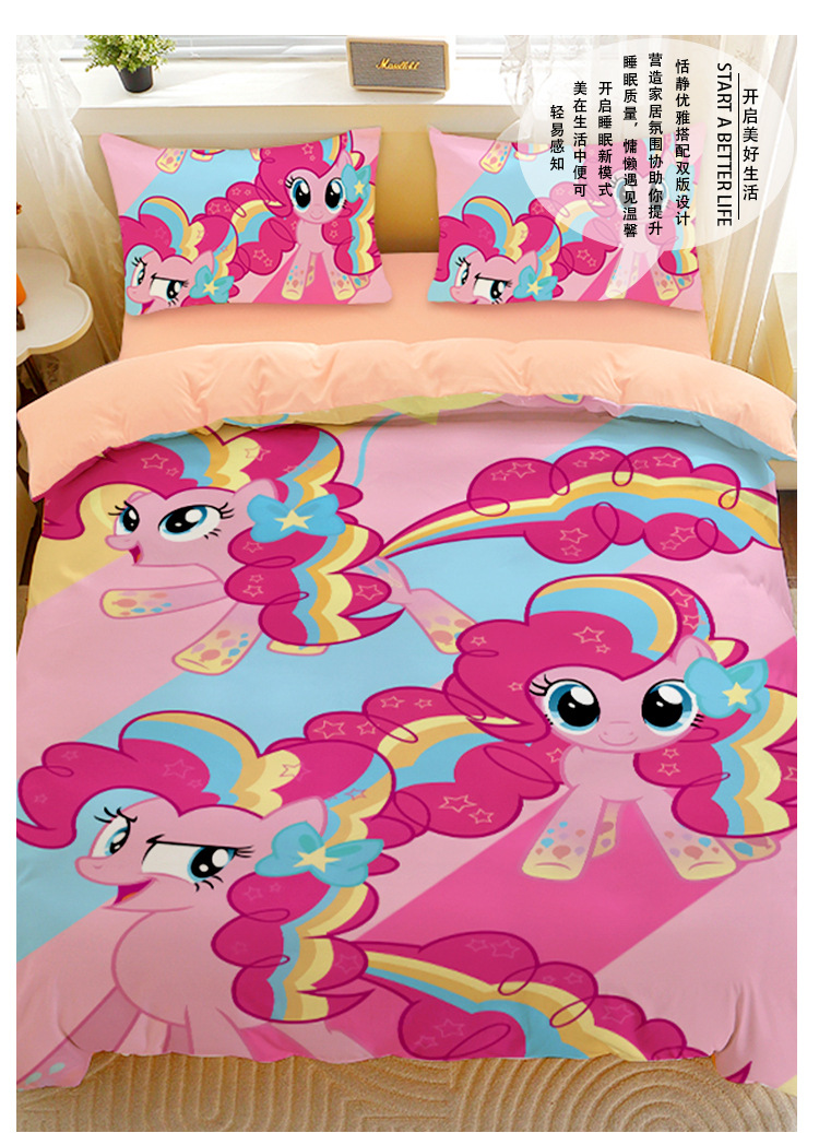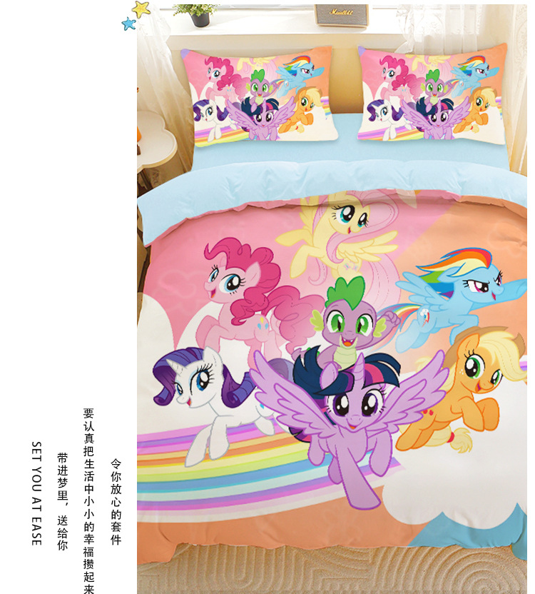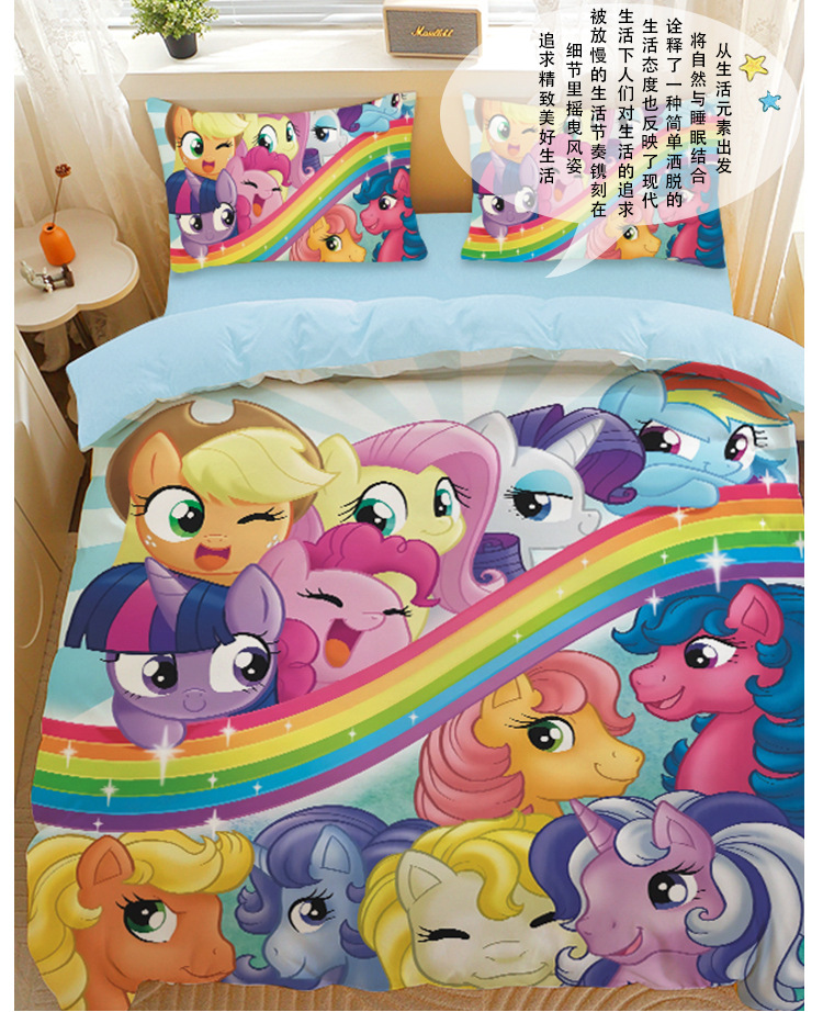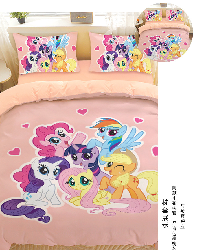 小马宝莉四件套卡通彩虹小马三件套磨毛女孩宿舍四季被套床单床笠