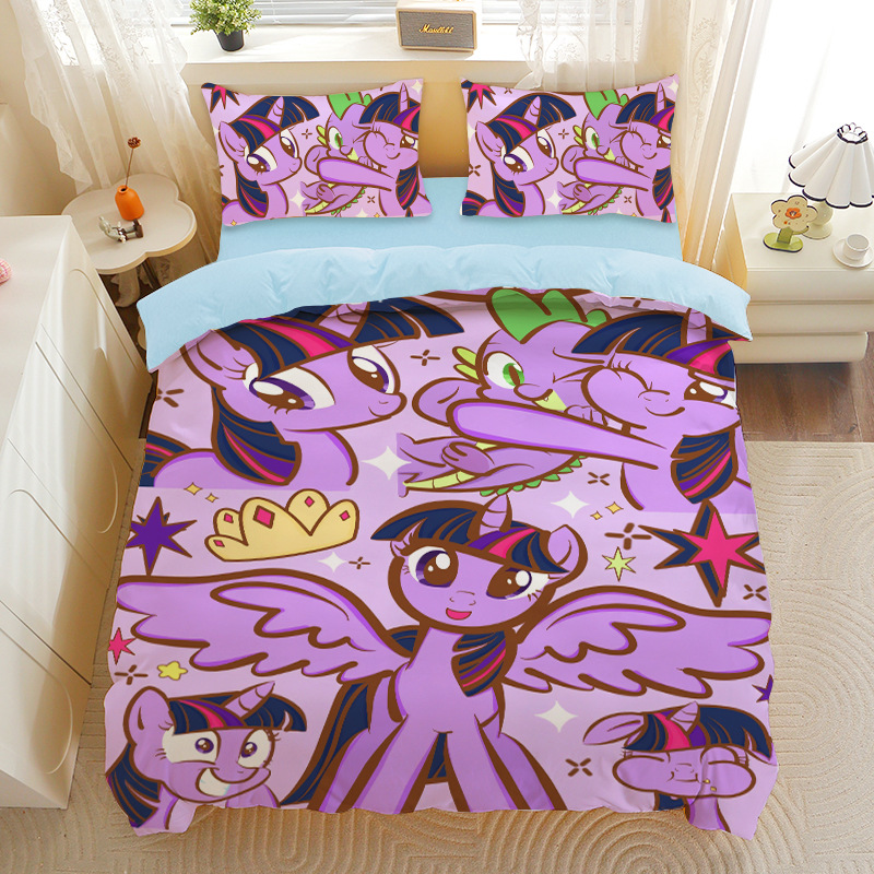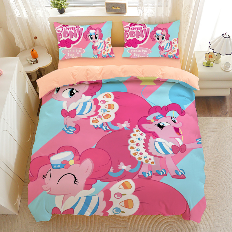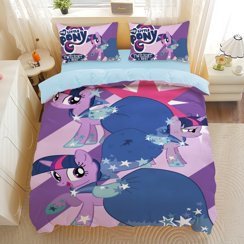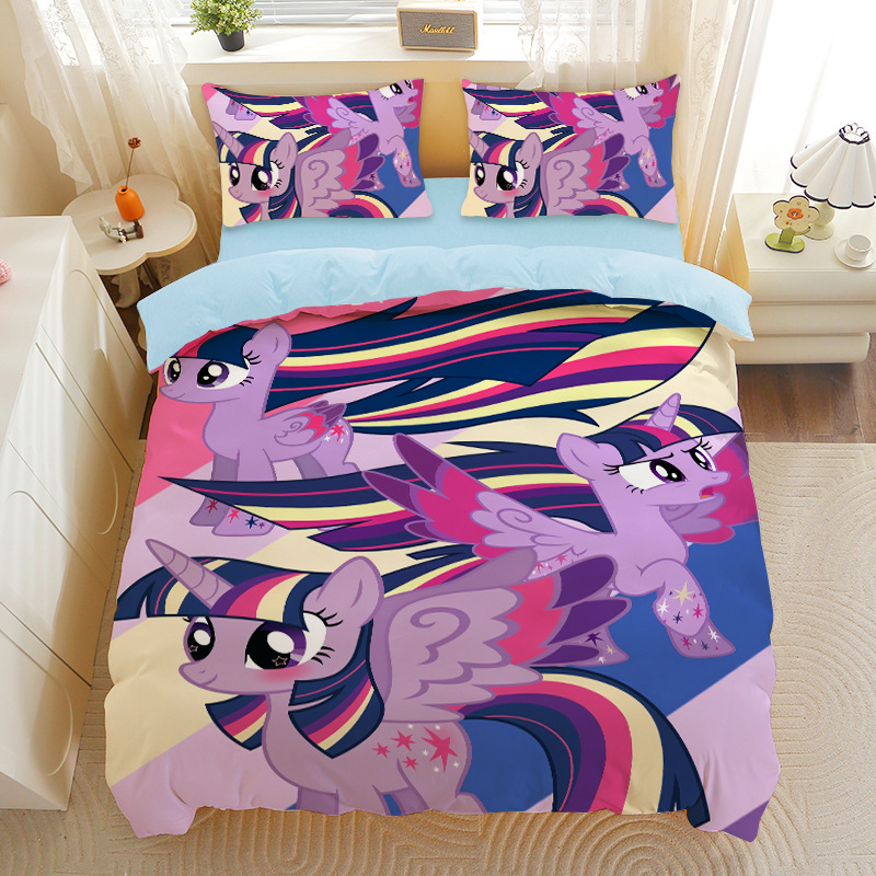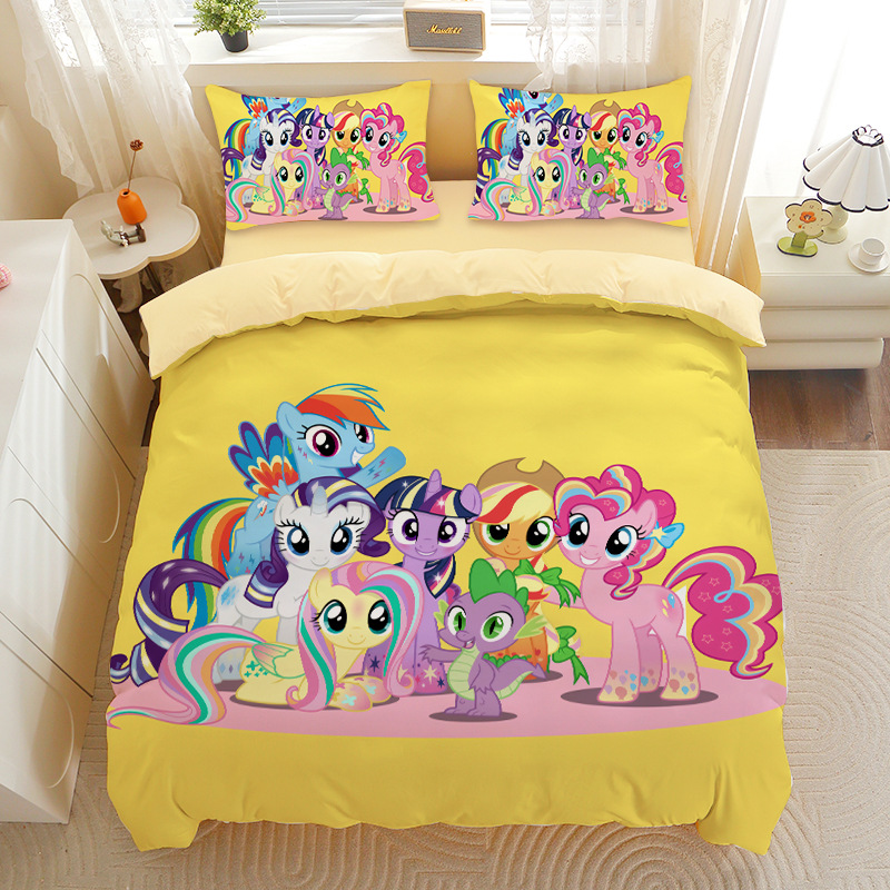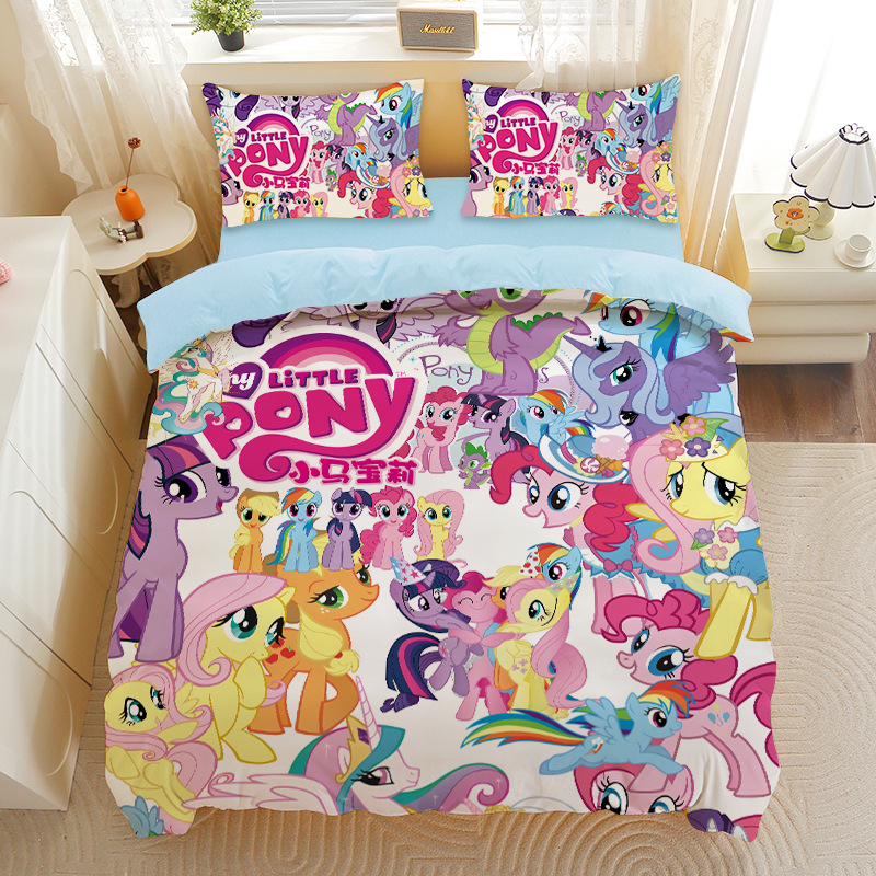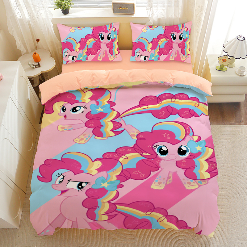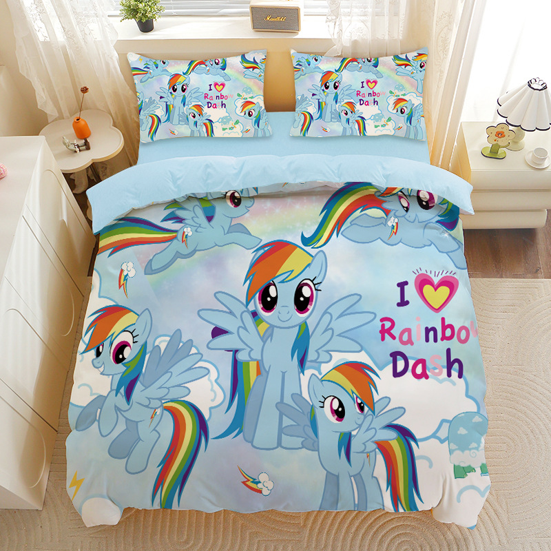 小马宝莉四件套卡通彩虹小马三件套磨毛女孩宿舍四季被套床单床笠