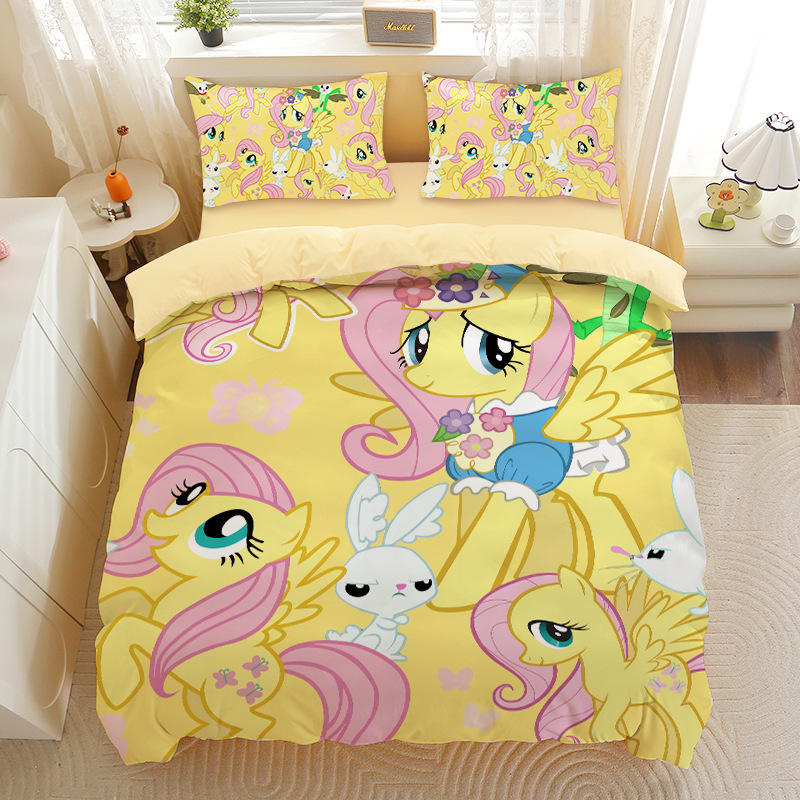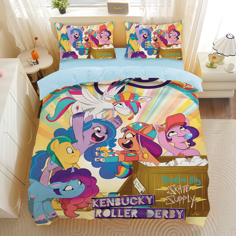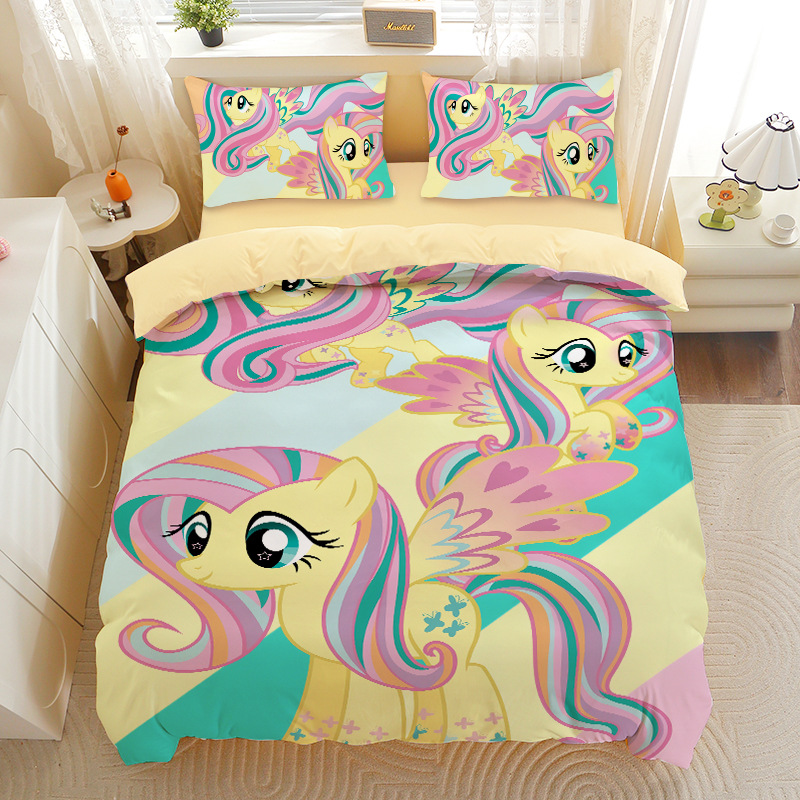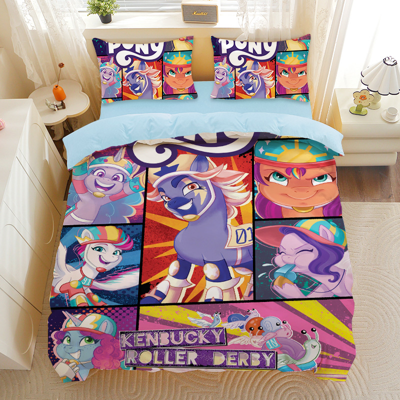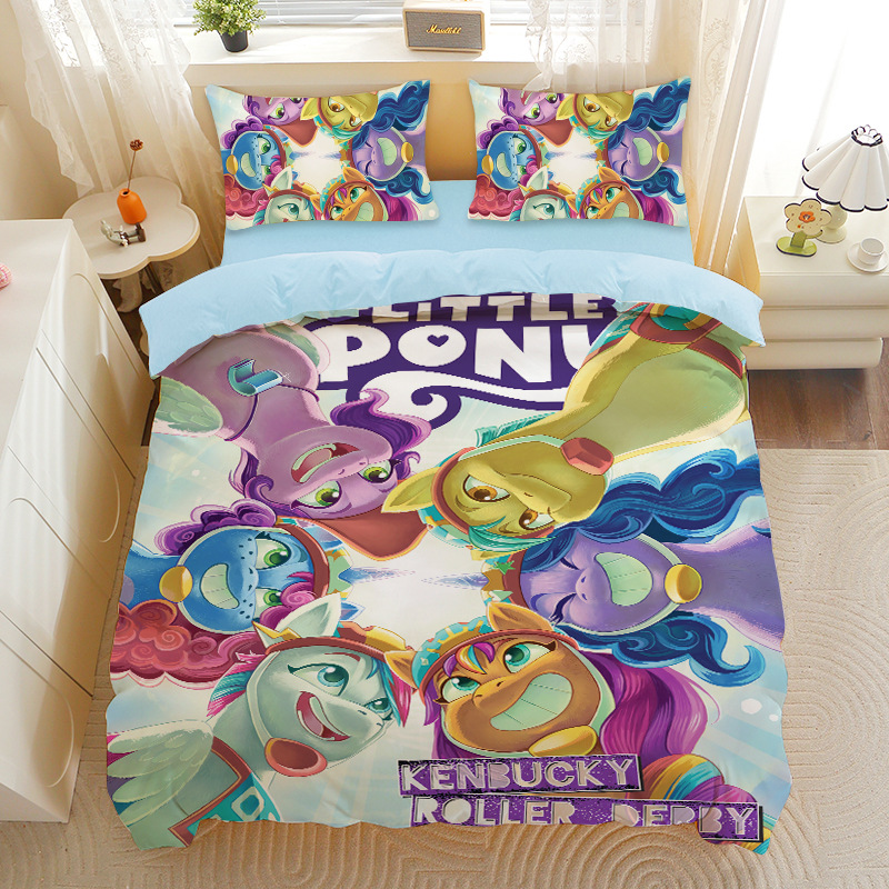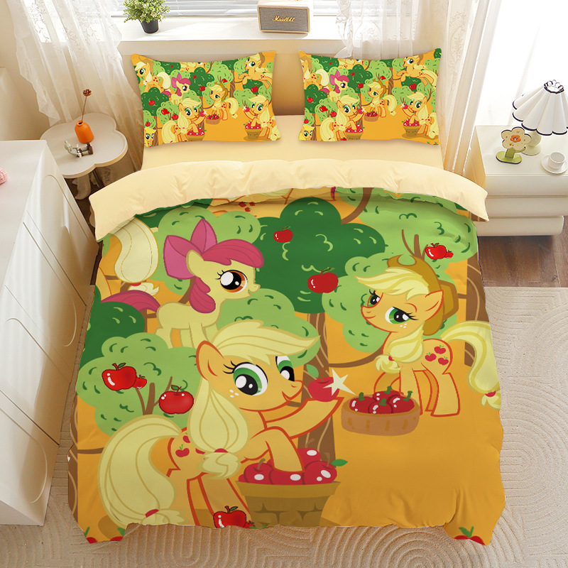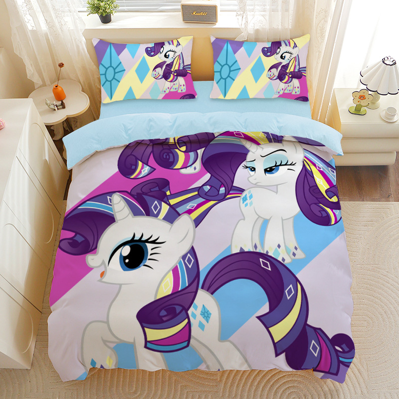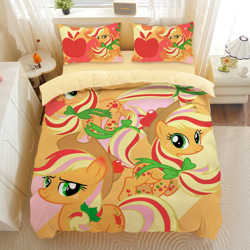 小马宝莉四件套卡通彩虹小马三件套磨毛女孩宿舍四季被套床单床笠