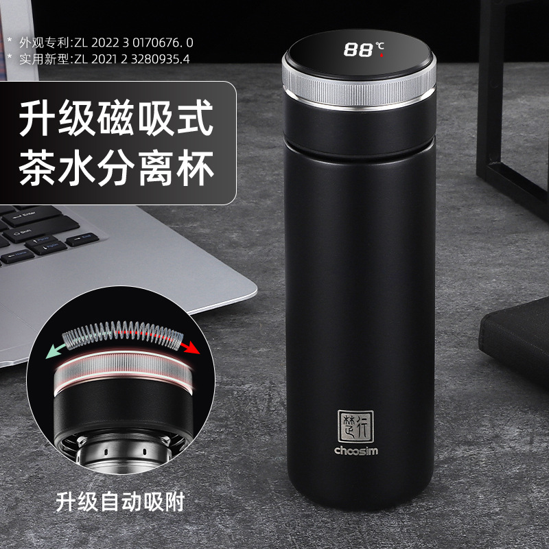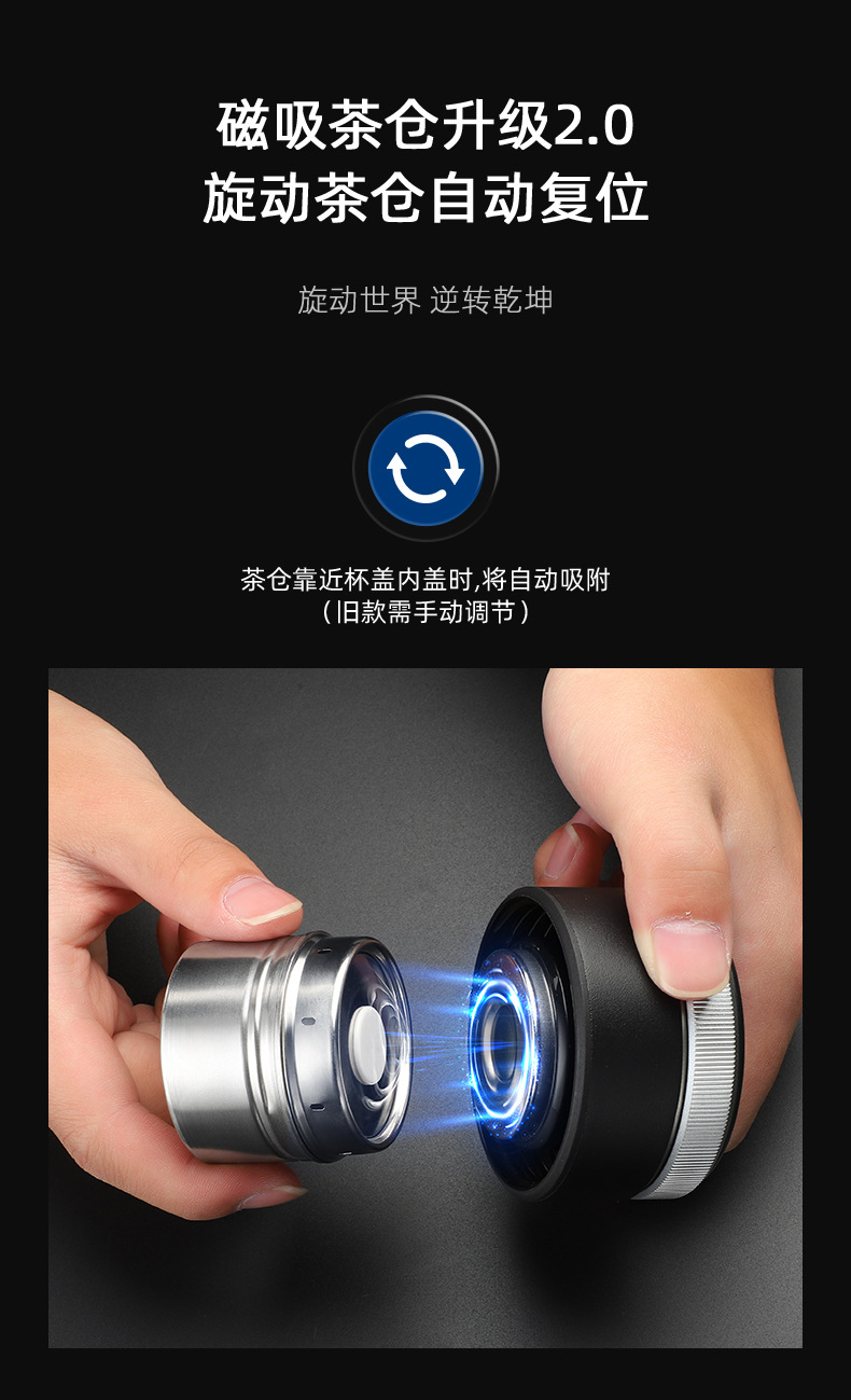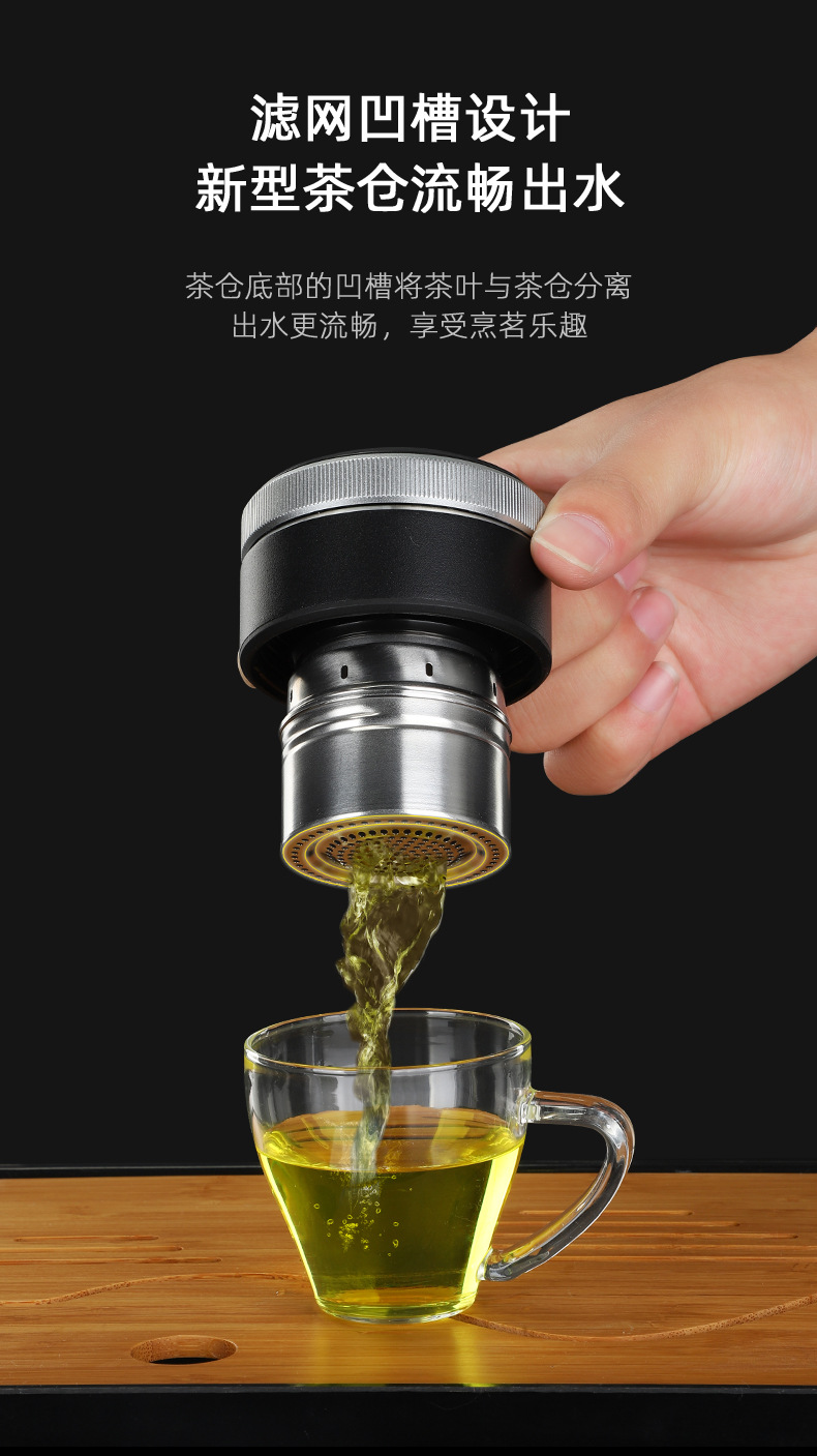 磁吸泡茶杯茶仓自动复位智能商务茶水分离保温杯制定LOGO礼品杯子