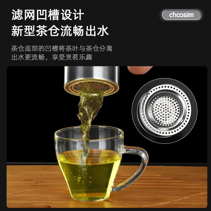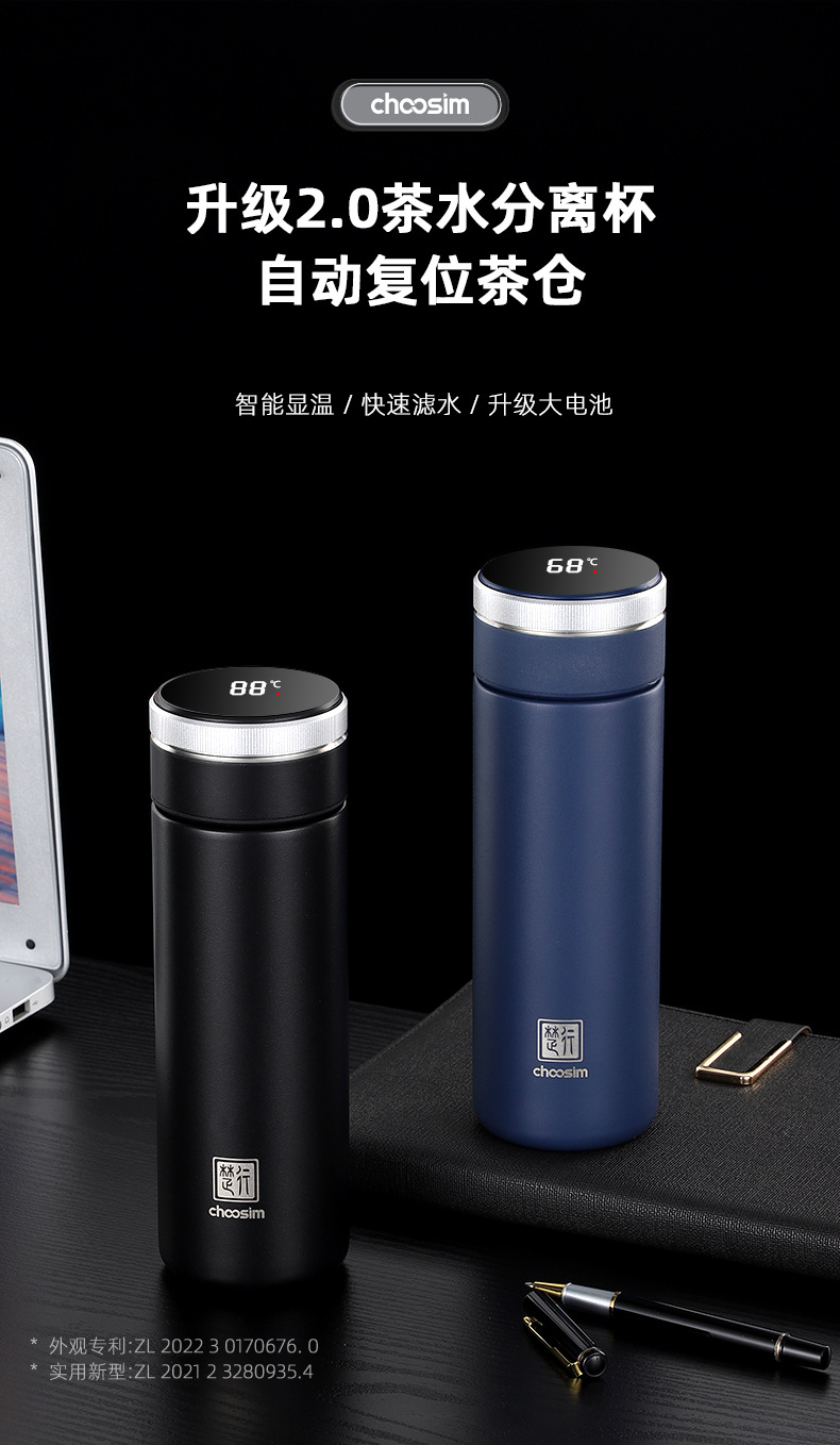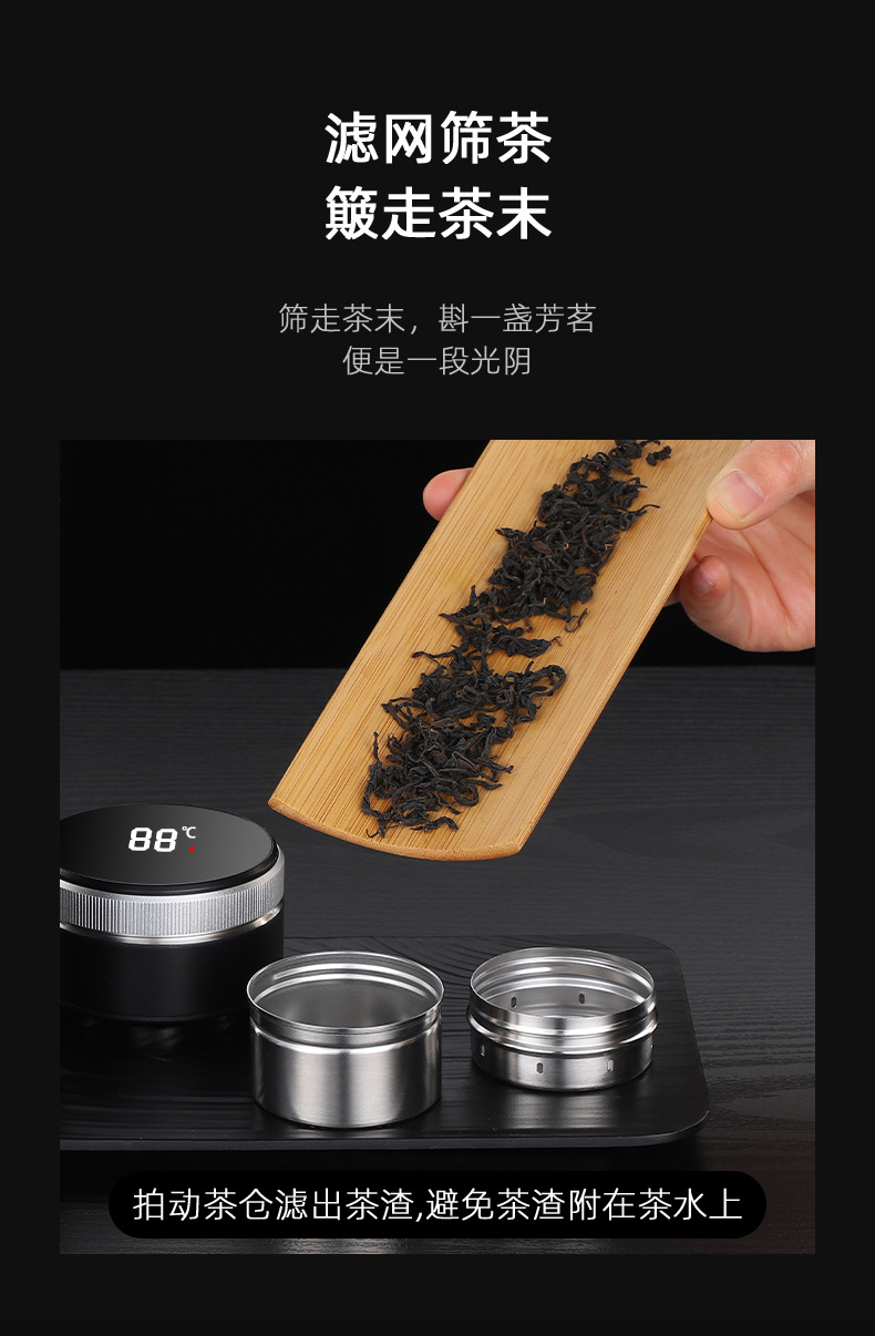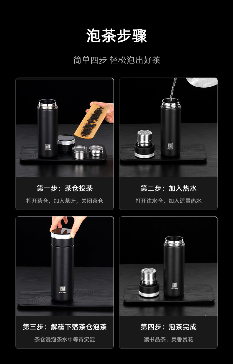 磁吸泡茶杯茶仓自动复位智能商务茶水分离保温杯制定LOGO礼品杯子