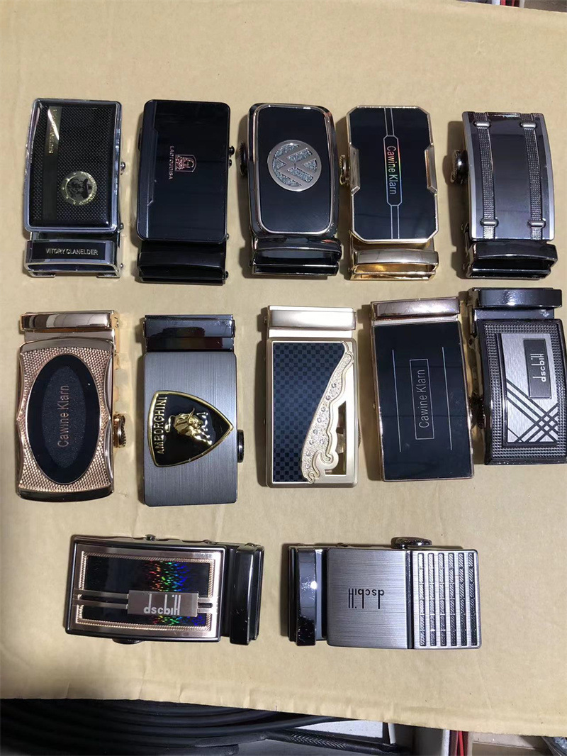 处理男款4公分锌合金自动扣头数量1万个量大的来找我..没有任何瑕疵重量100克左右此款扣头可以搭配内径3.5以内的皮带.有需要的朋友可以下单.欢迎自助下单.款式随机发如果需要选择花色可以联系客服确认..挑选花色只针对一次数量100个以上的顾客.少量拿货花色随机发.