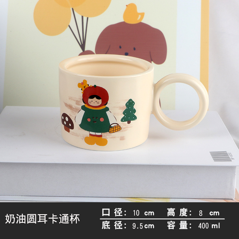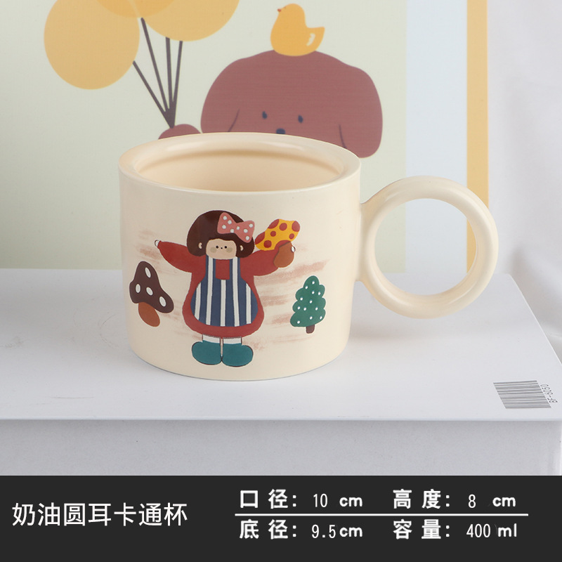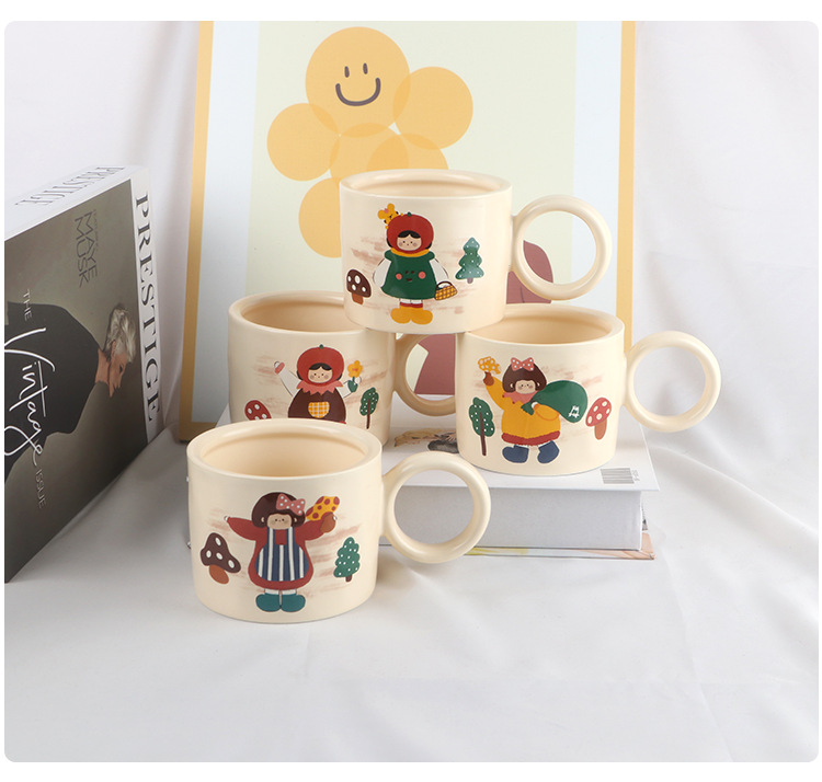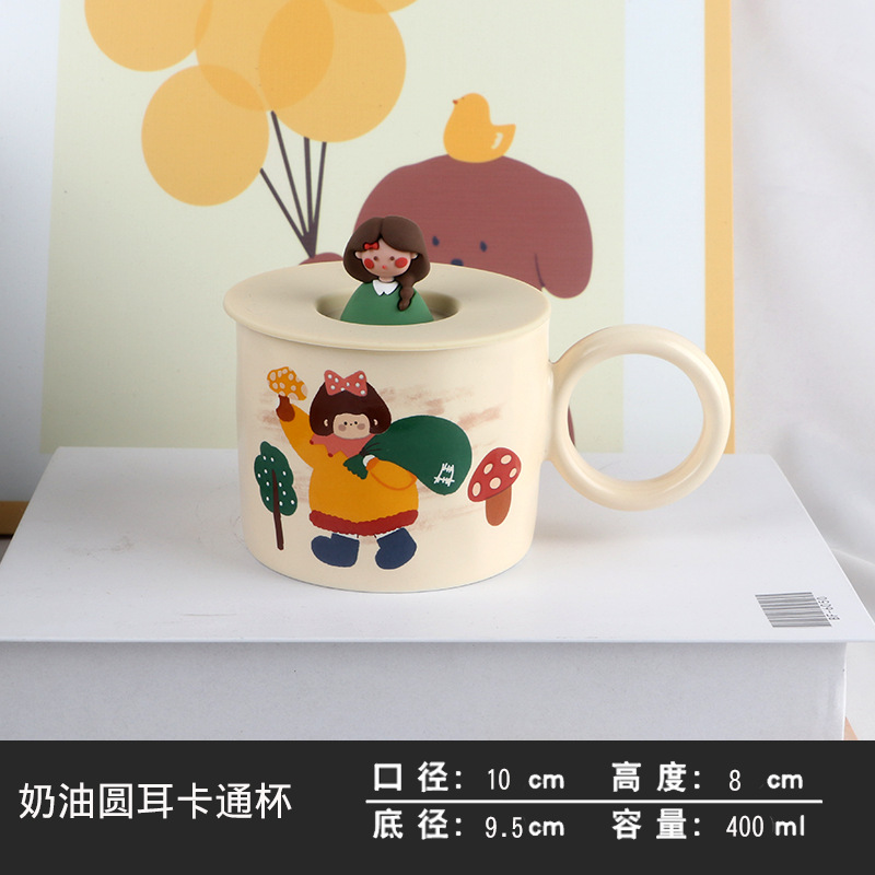 可爱杯子带盖小女孩插画马克杯陶瓷杯个性情侣水杯早餐杯咖啡杯